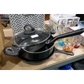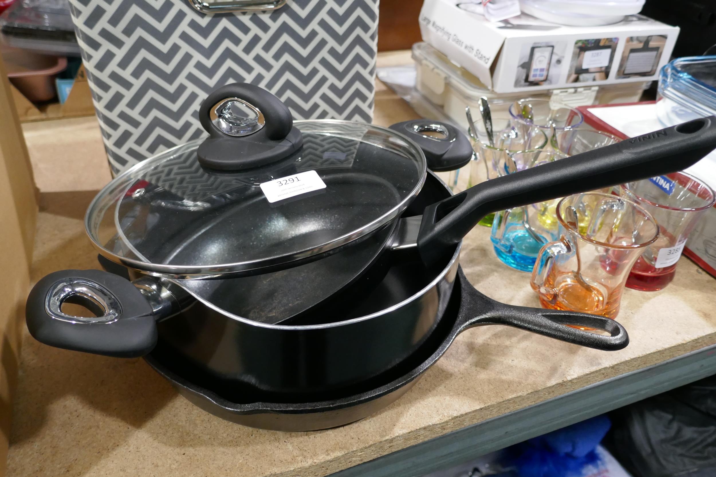Assorted pans, sauce & frying, incl one cast iron *This lot is subject to vat