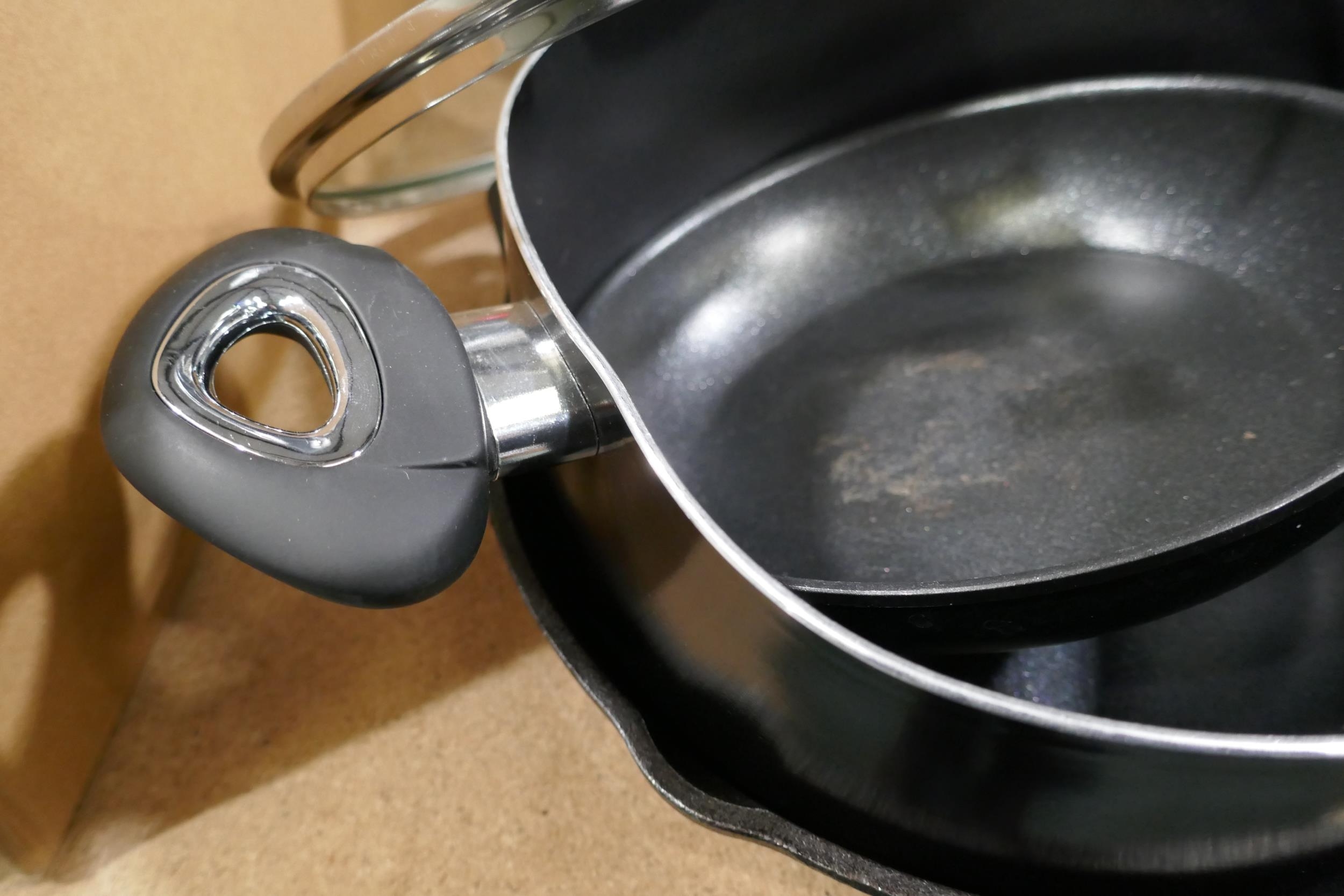 Assorted pans, sauce & frying, incl one cast iron *This lot ...
