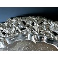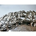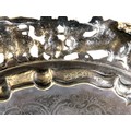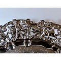Elaborately decorated with classical scenes intertwined with stylised leaf and foliate design. Engraved central well.