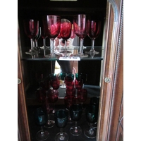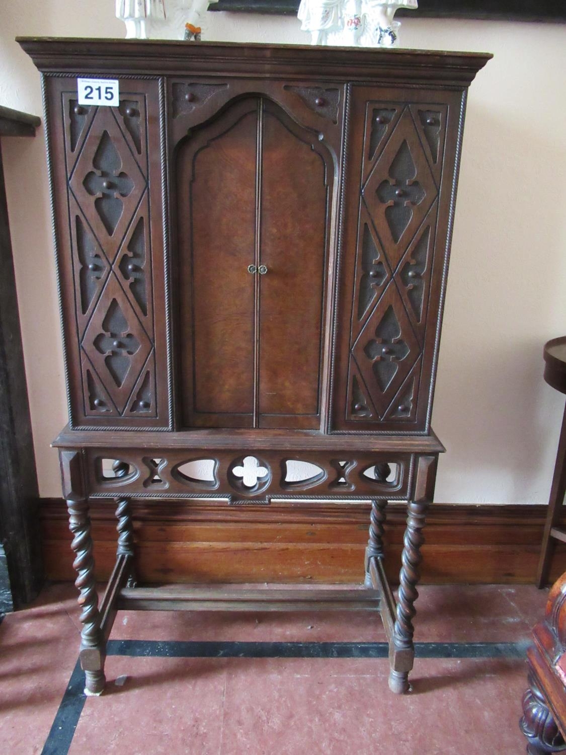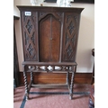 Oak drinks cabinet on barley twist supports with 2 sliding doors. H:130cm, W:74cm, D:40cm.