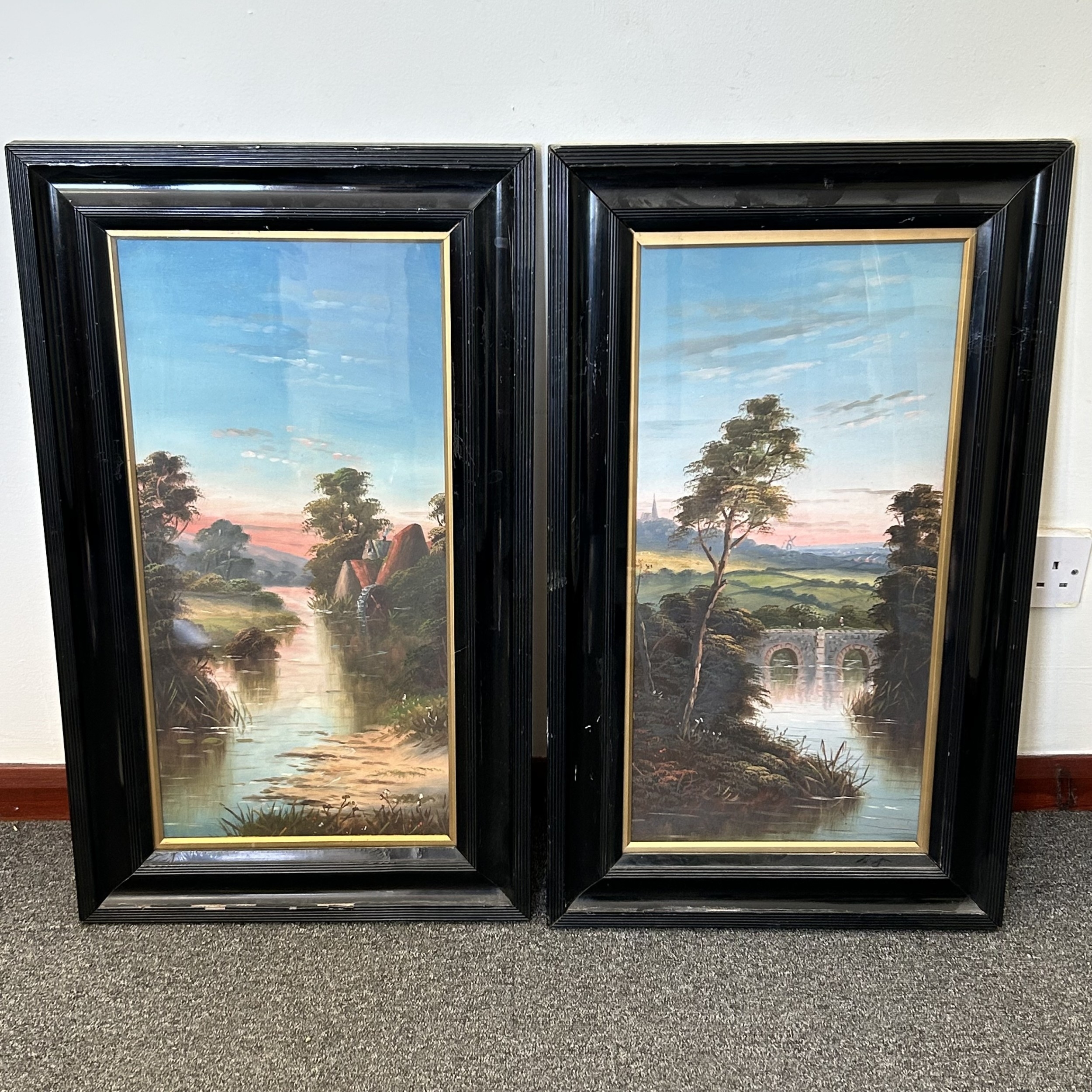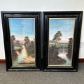 A pair of Victorian framed and glazed gouache paintings of river scenes, no obvious signatures, 10 1/2" x 22 1/2"