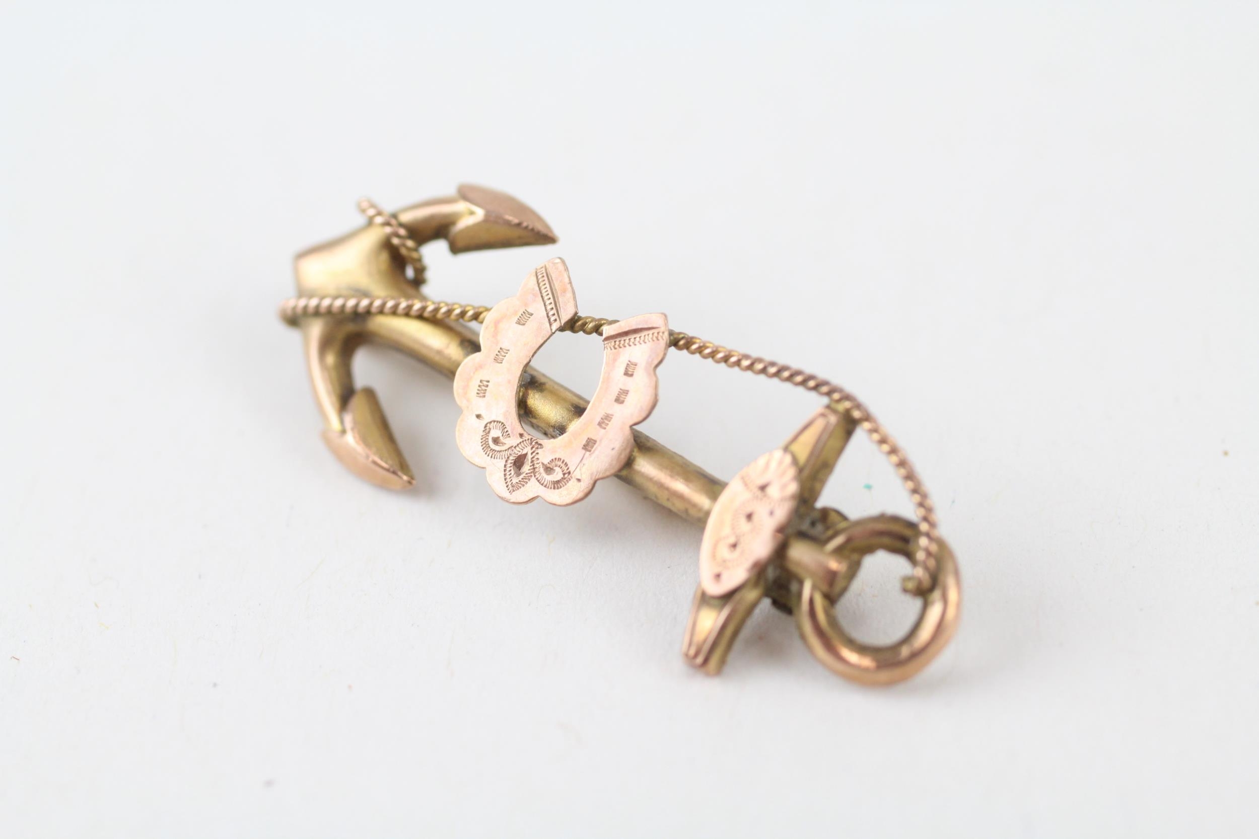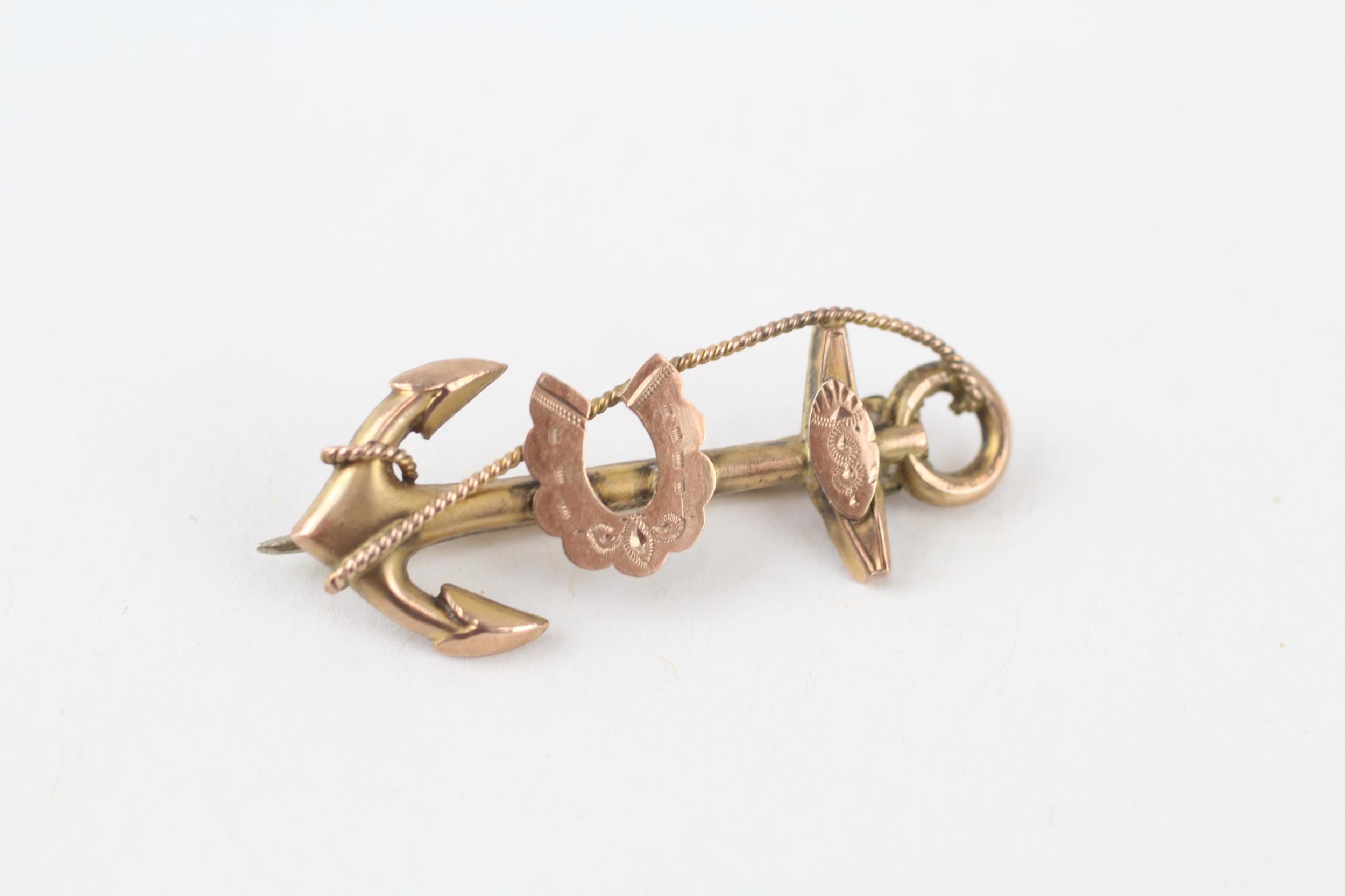 9ct gold vintage anchor & horseshoe brooch (1.3g)
