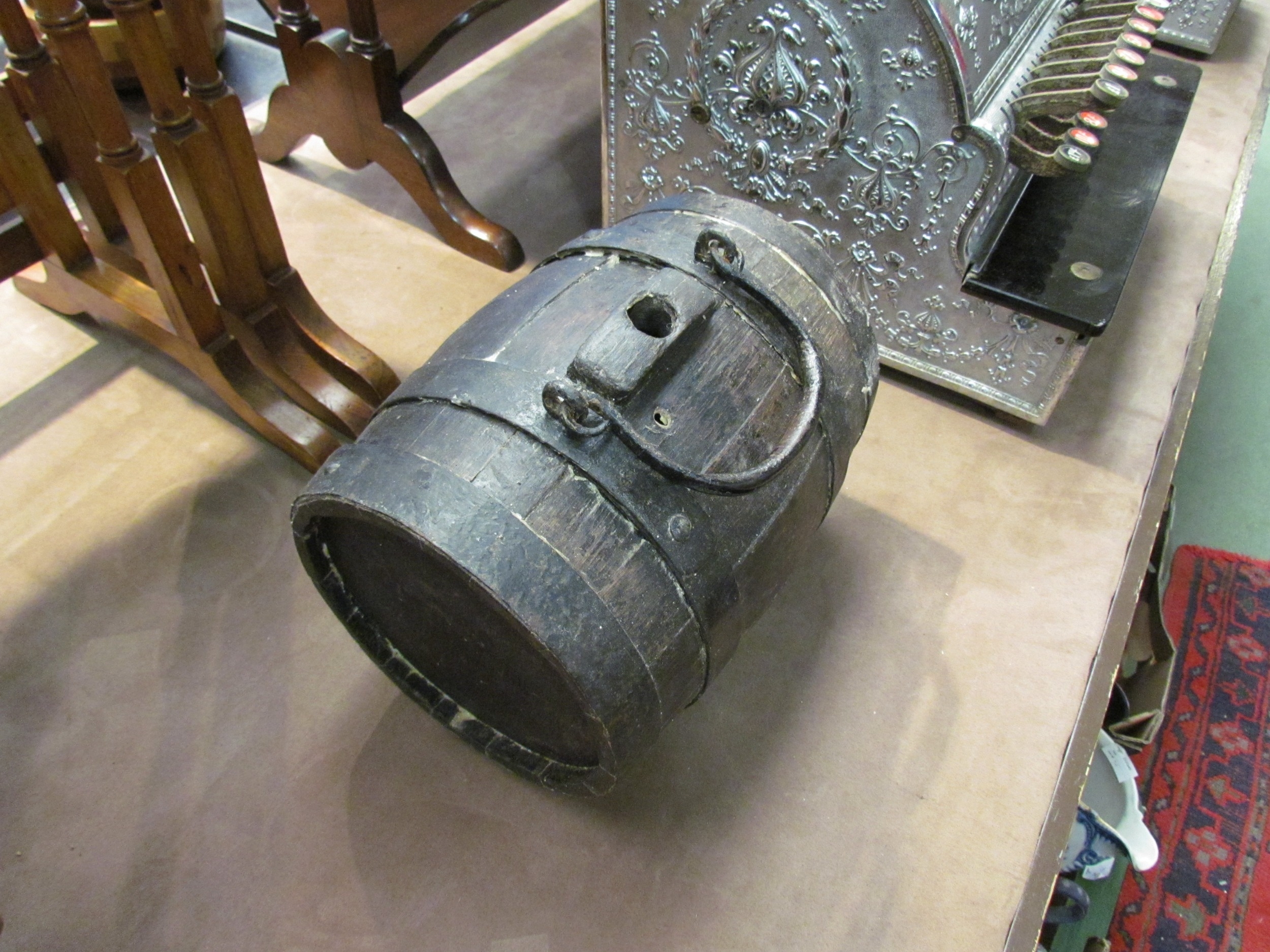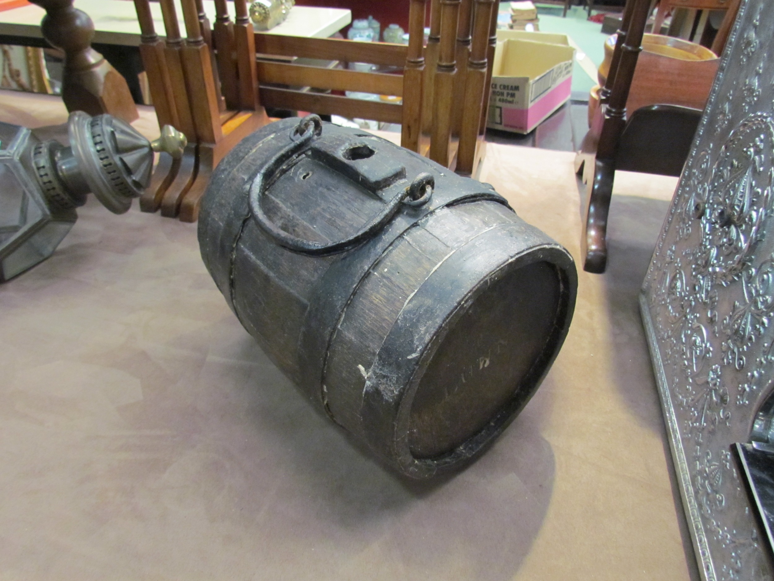 A wooden costrel, 28cm long x 20cm diameter