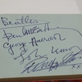 The Beatles: an autograph book containing autographs of John Lennon (likely by George Harrison), Paul McCartney, George Harrison and Ringo Starr of 'The Beatles'. These autographs were obtained by the vendor on the 6th July 1963 when the group attended Northwich Carnival in Verdin Park Northwich, and later performed at the Memorial Hall, the fifth of their six gigs in Northwich, where Paul McCartney crowned the Carnival Queen. (Of interest, the first page in the book is signed by Sandra Ure, she is/was a close relative of Midge Ure). UK P&P Group 2 (£24+VAT for the first lot and £5+VAT for subsequent lots)