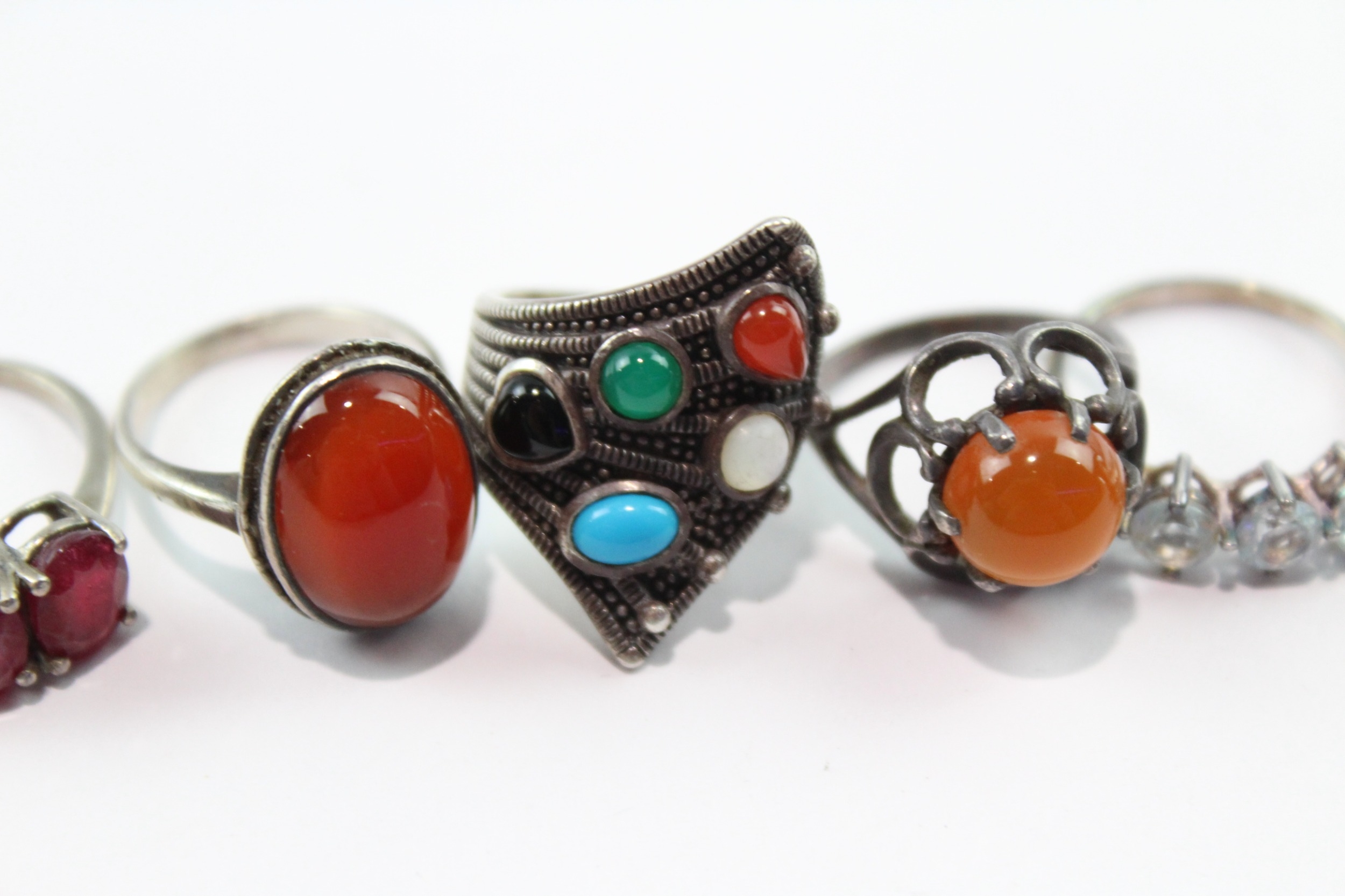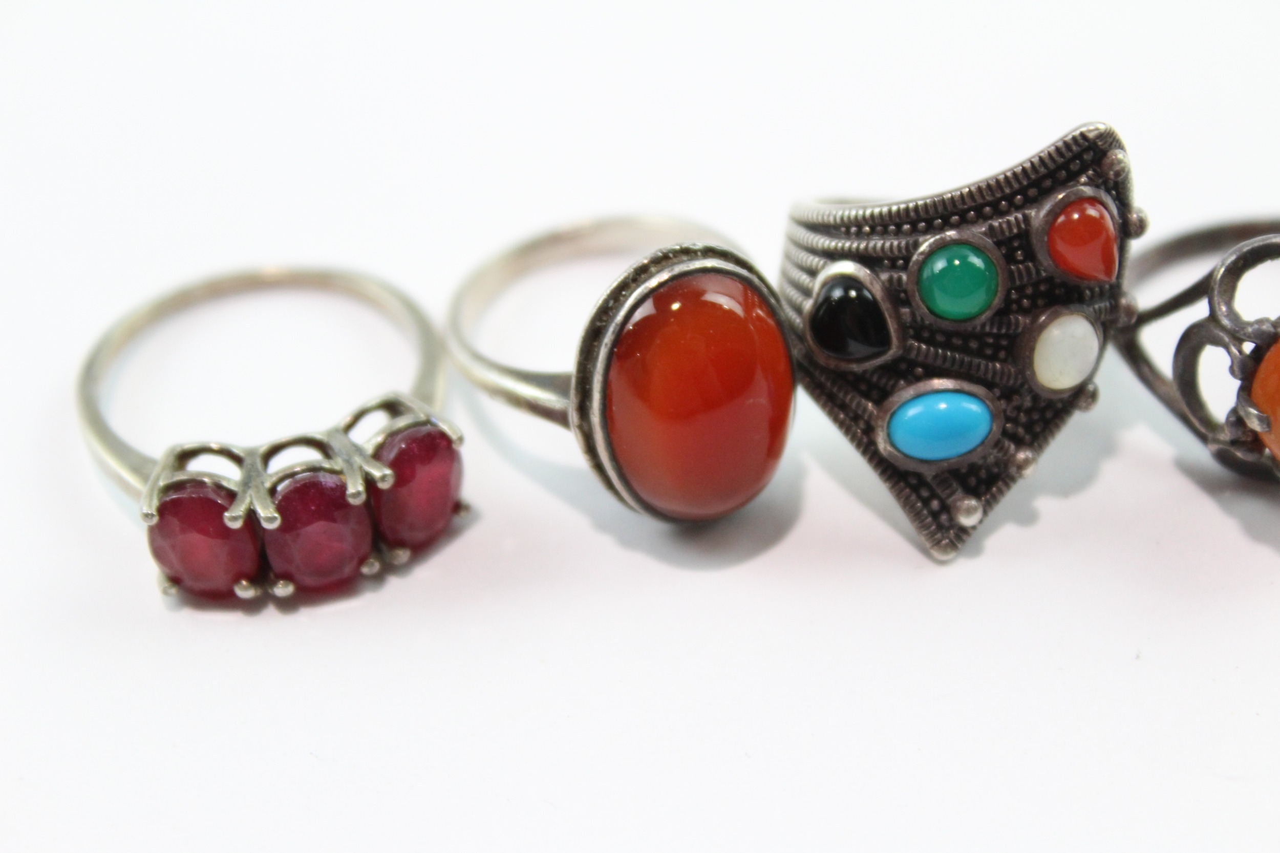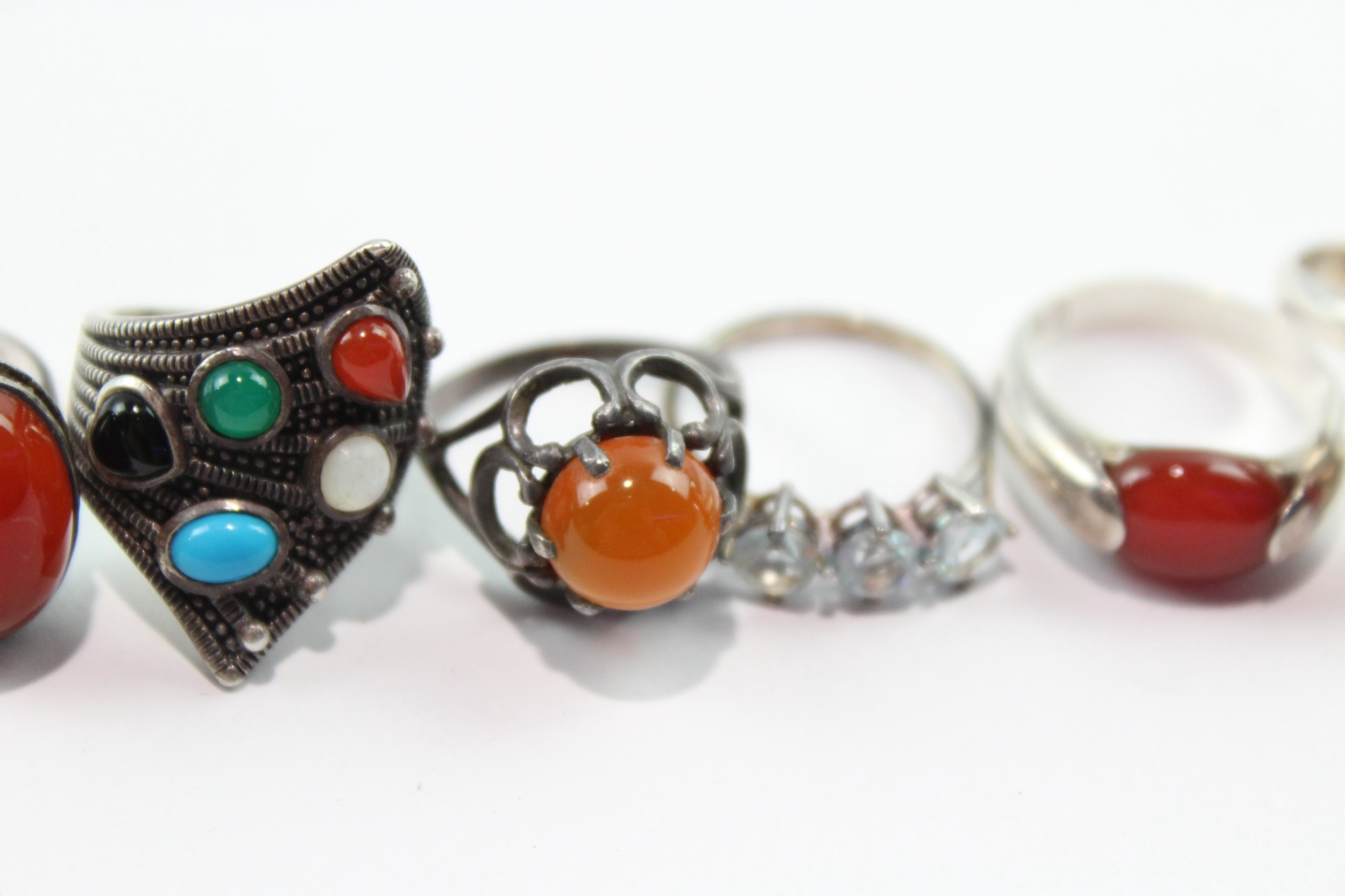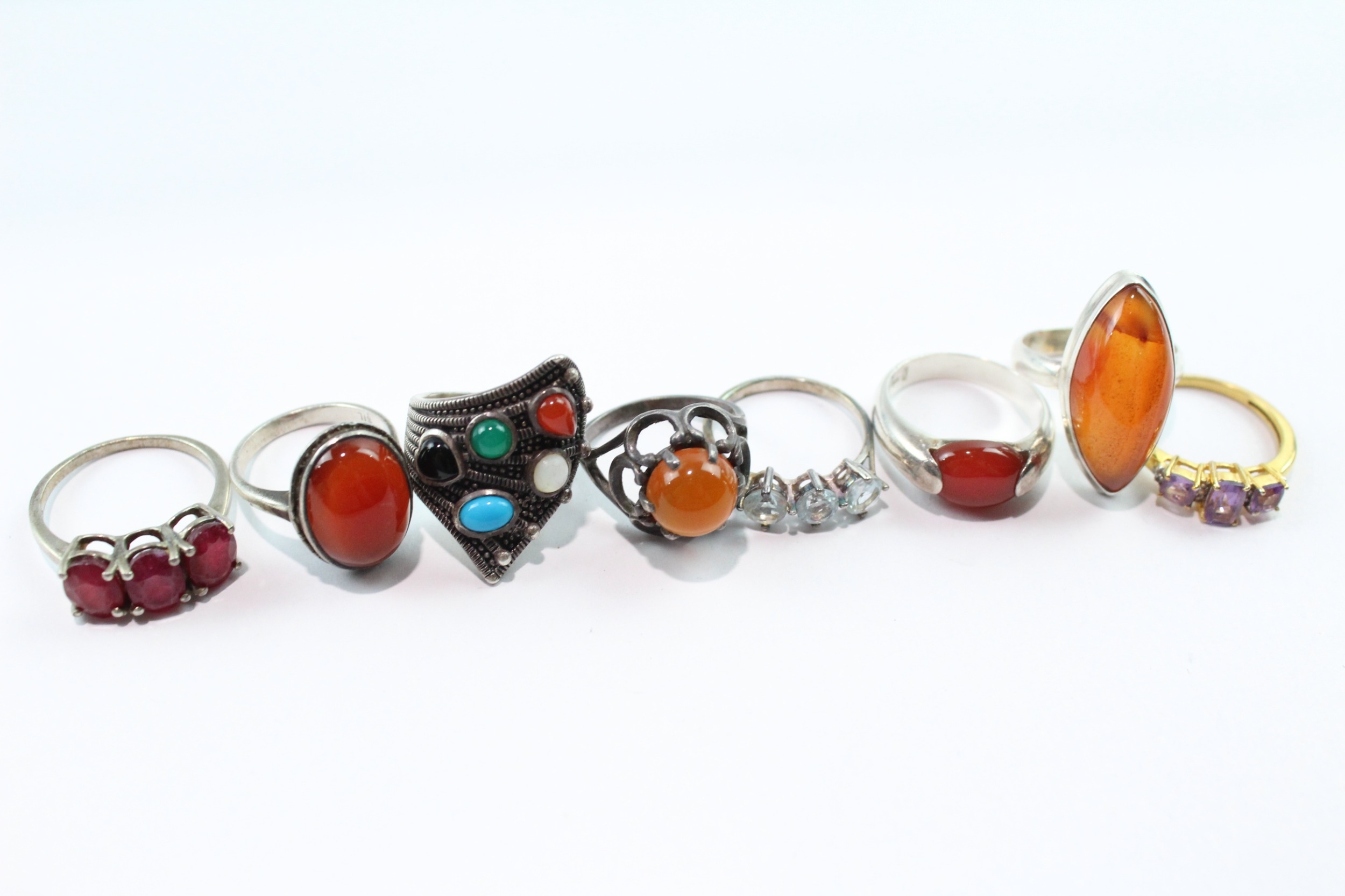 Collection of Sterling Silver Gemstone Rings inc. Carnelian x 8 31g