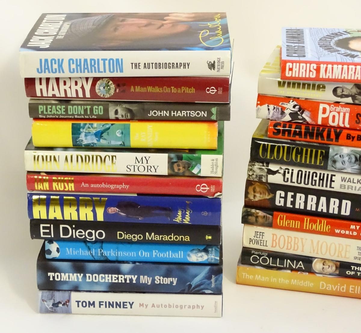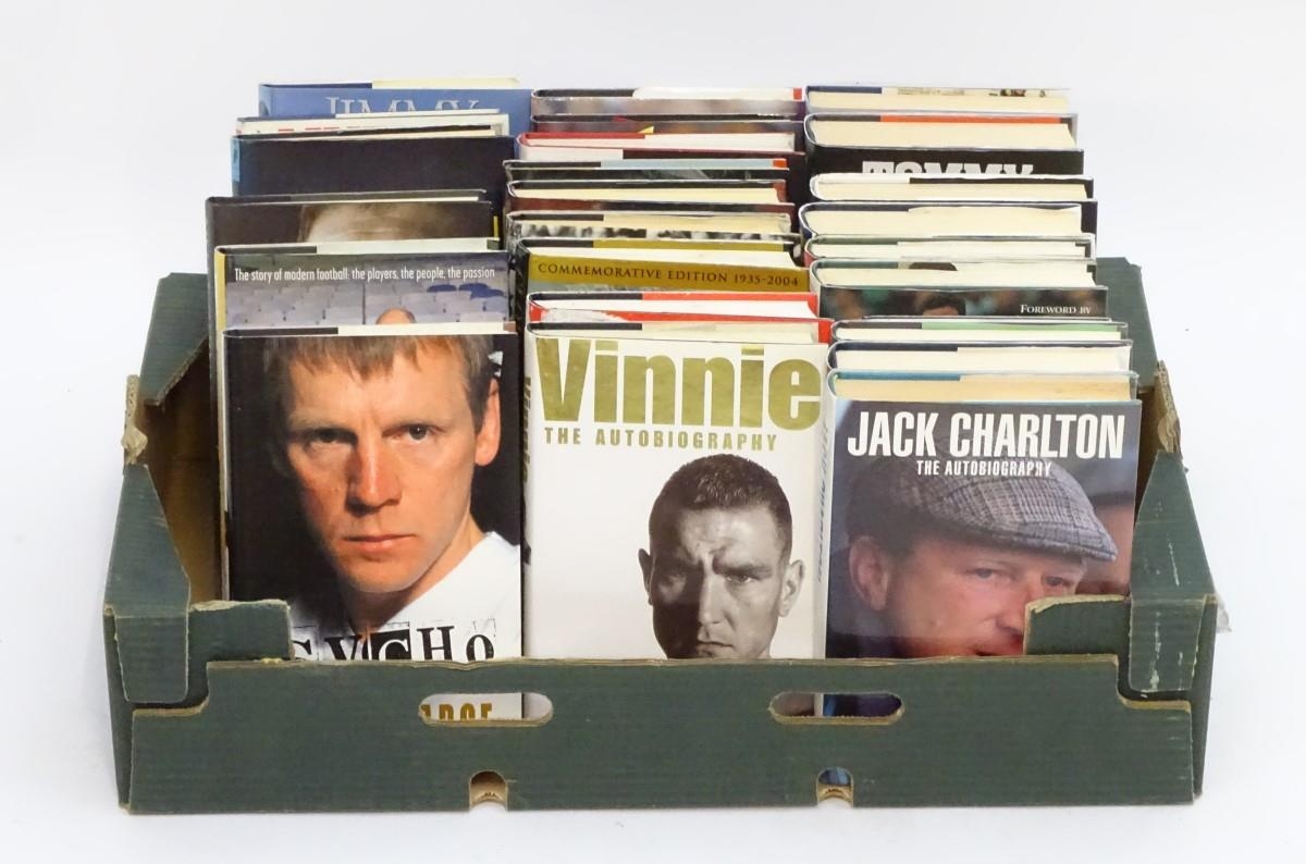 A quantity of assorted biographies and autobiographies of football personalities, to include Always Managing, by Harry Redknapp with Martin Samuel; Chris Kamara Mr Unbelievable; Vinnie Jones; Graham Poll, Seeing Red; Psycho Stuart Pearce; Alan Mullery; Niall Quinn; Jimmy Greaves, The Heart of the Game, together with others. Approx. 30