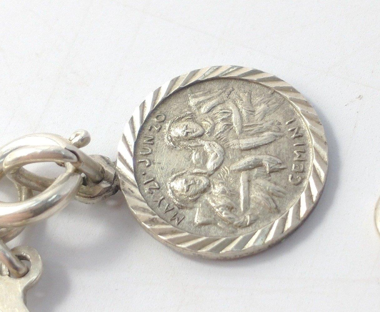 A heart-shaped bracelet with Gemini medallion, approx 19cm long, weight 7.35g approx