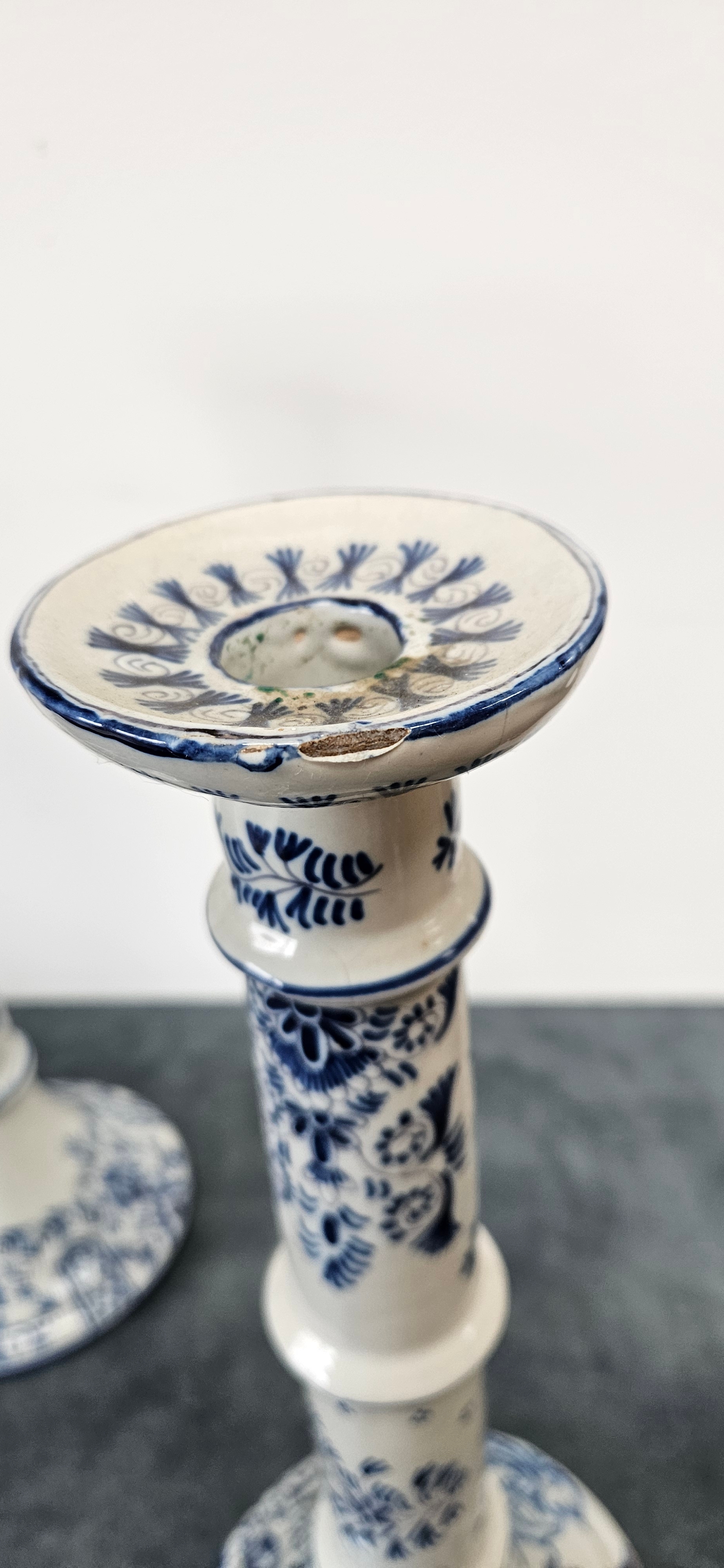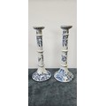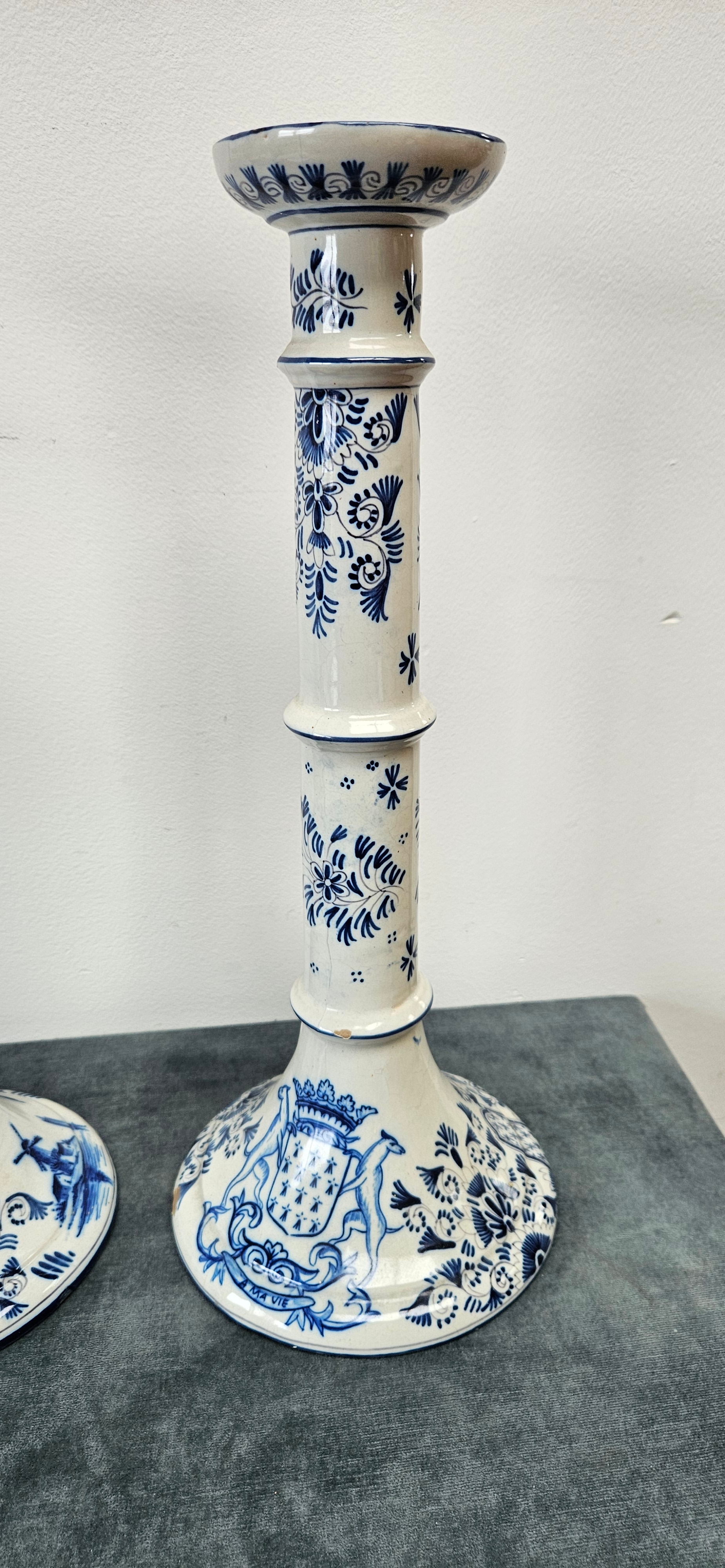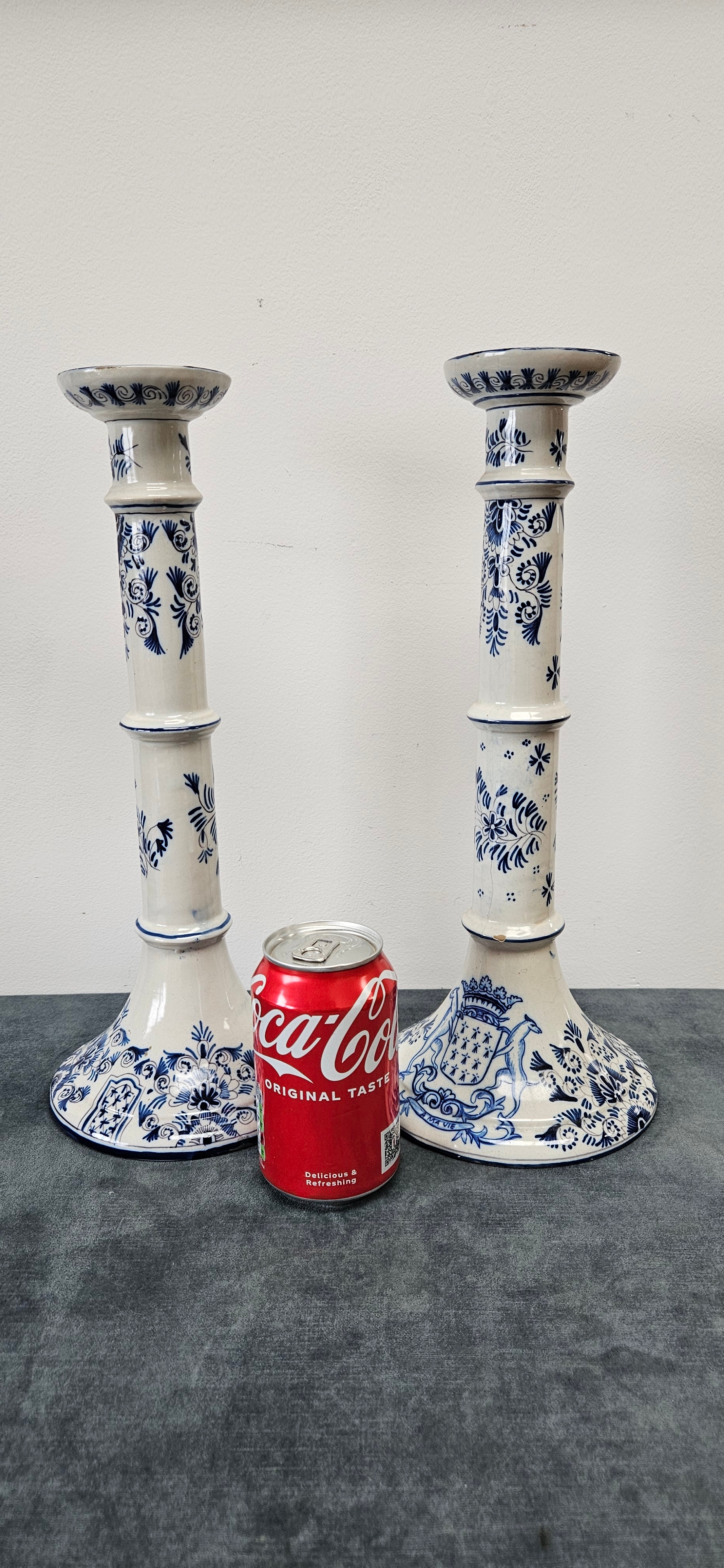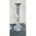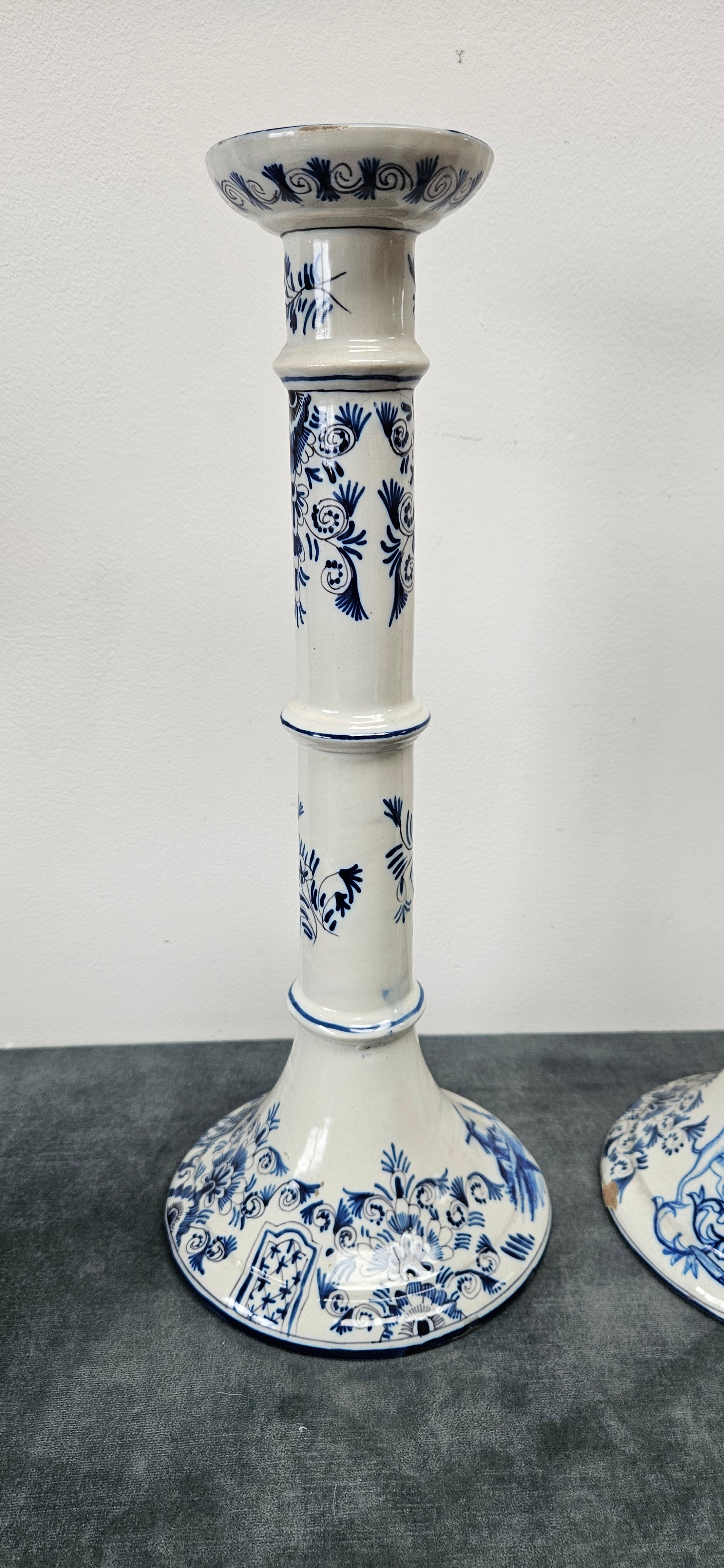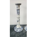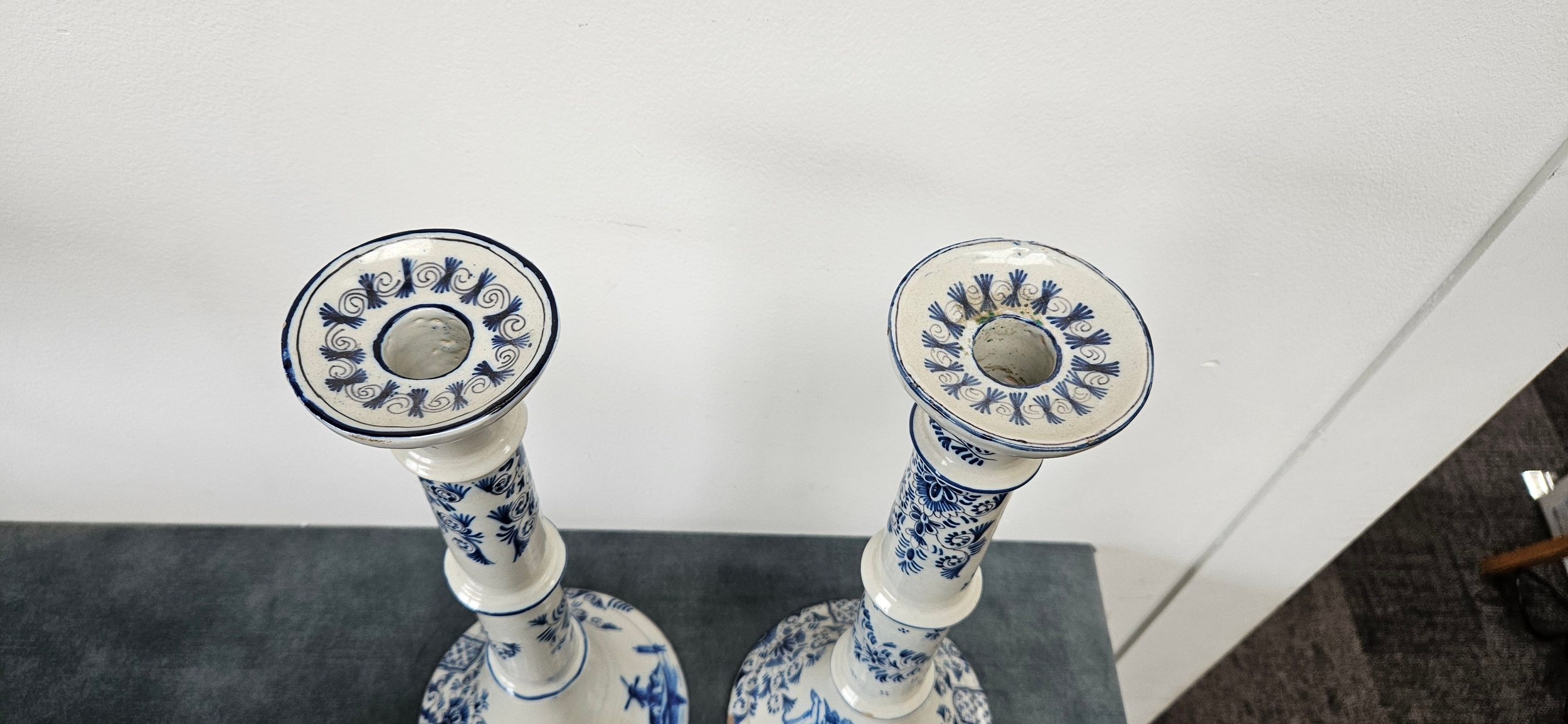 Large pair of Dutch Delft blue and white porcelain candlesticks