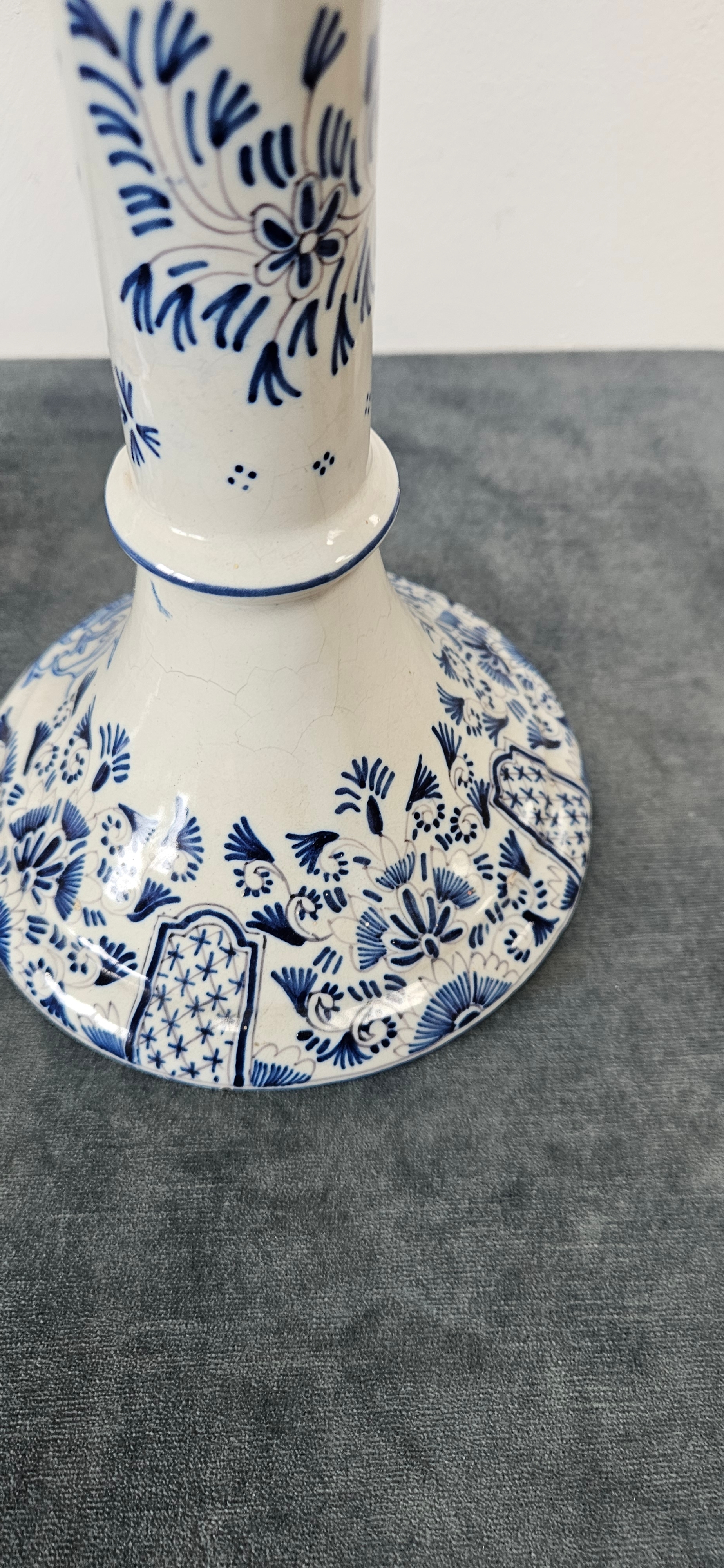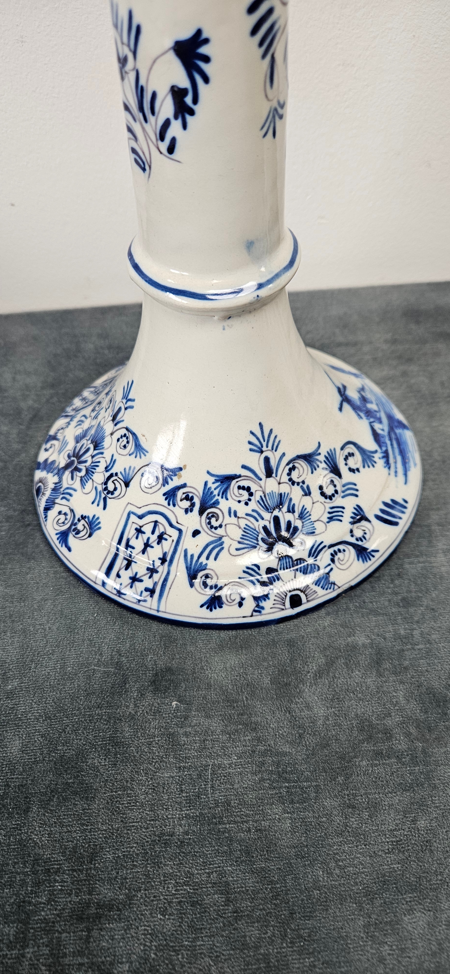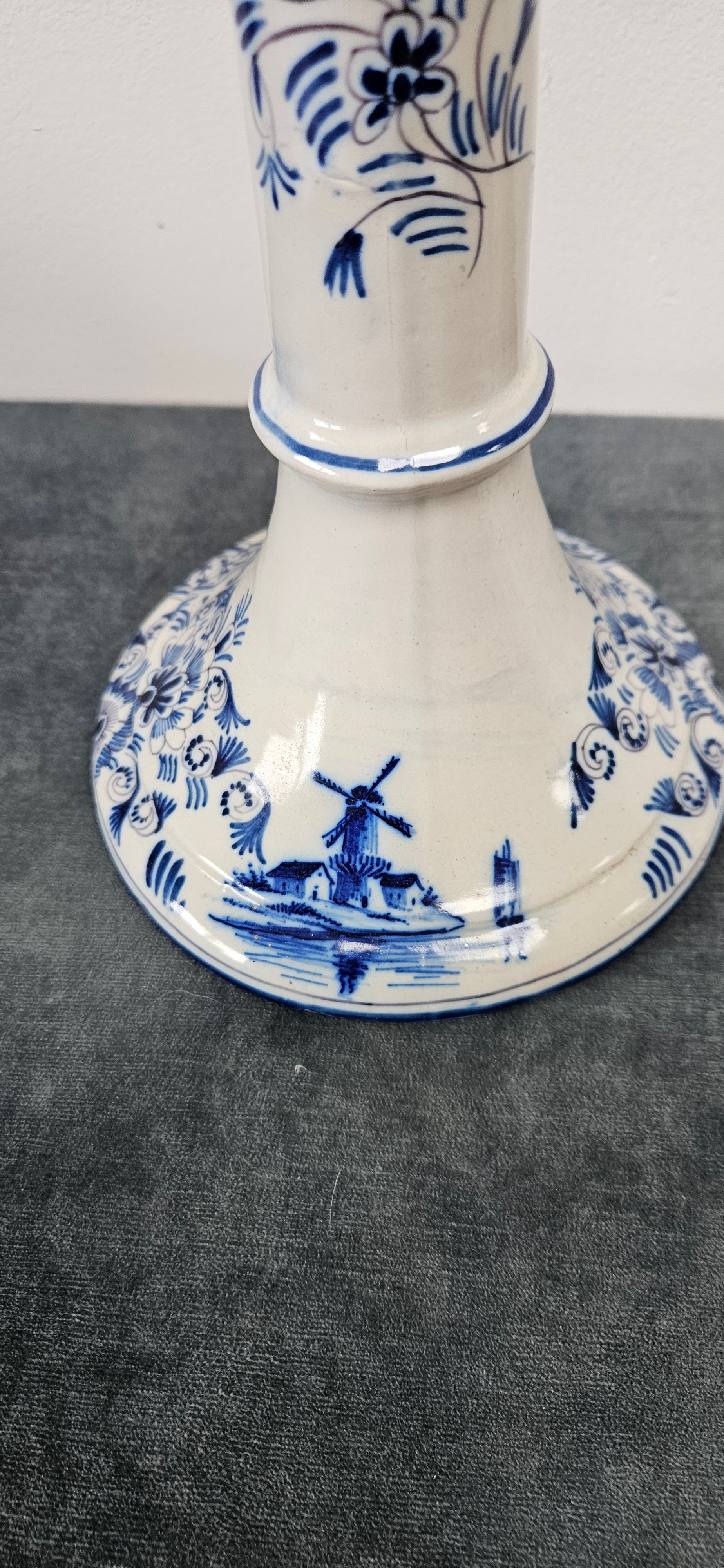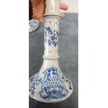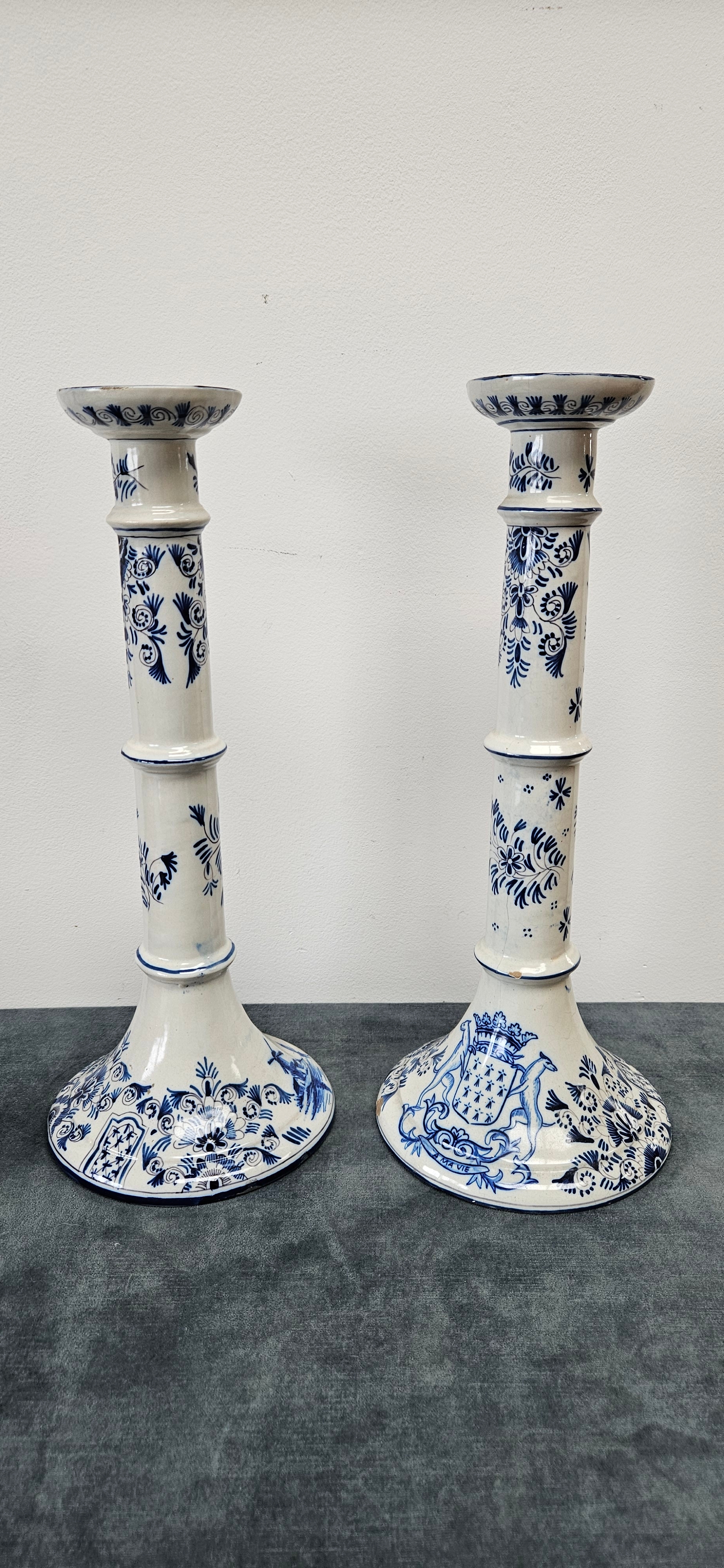 Large pair of Dutch Delft blue and white porcelain candlesticks