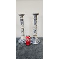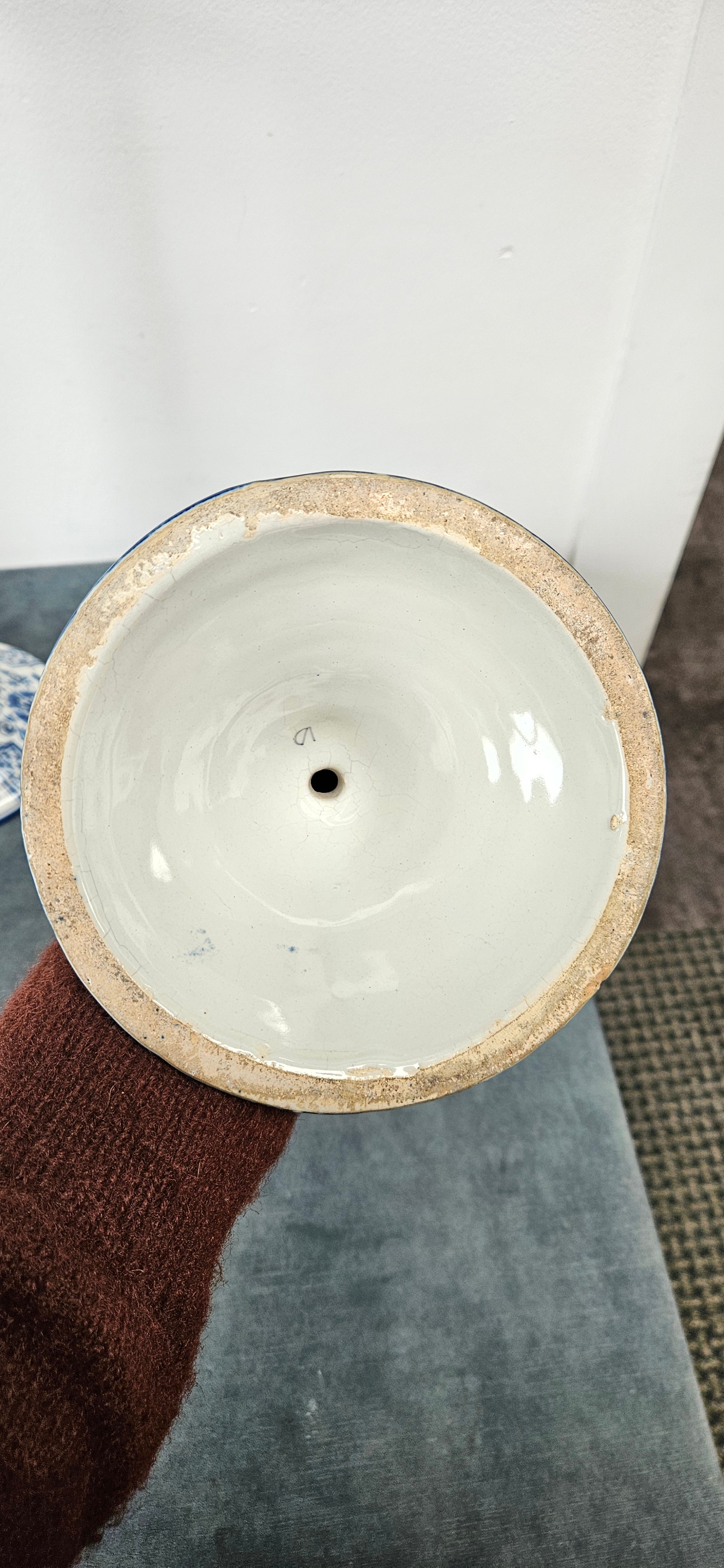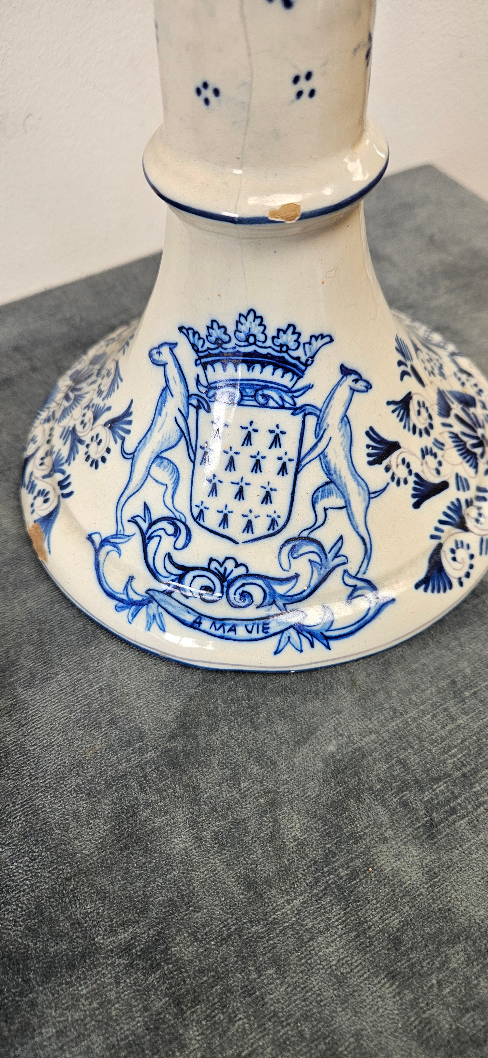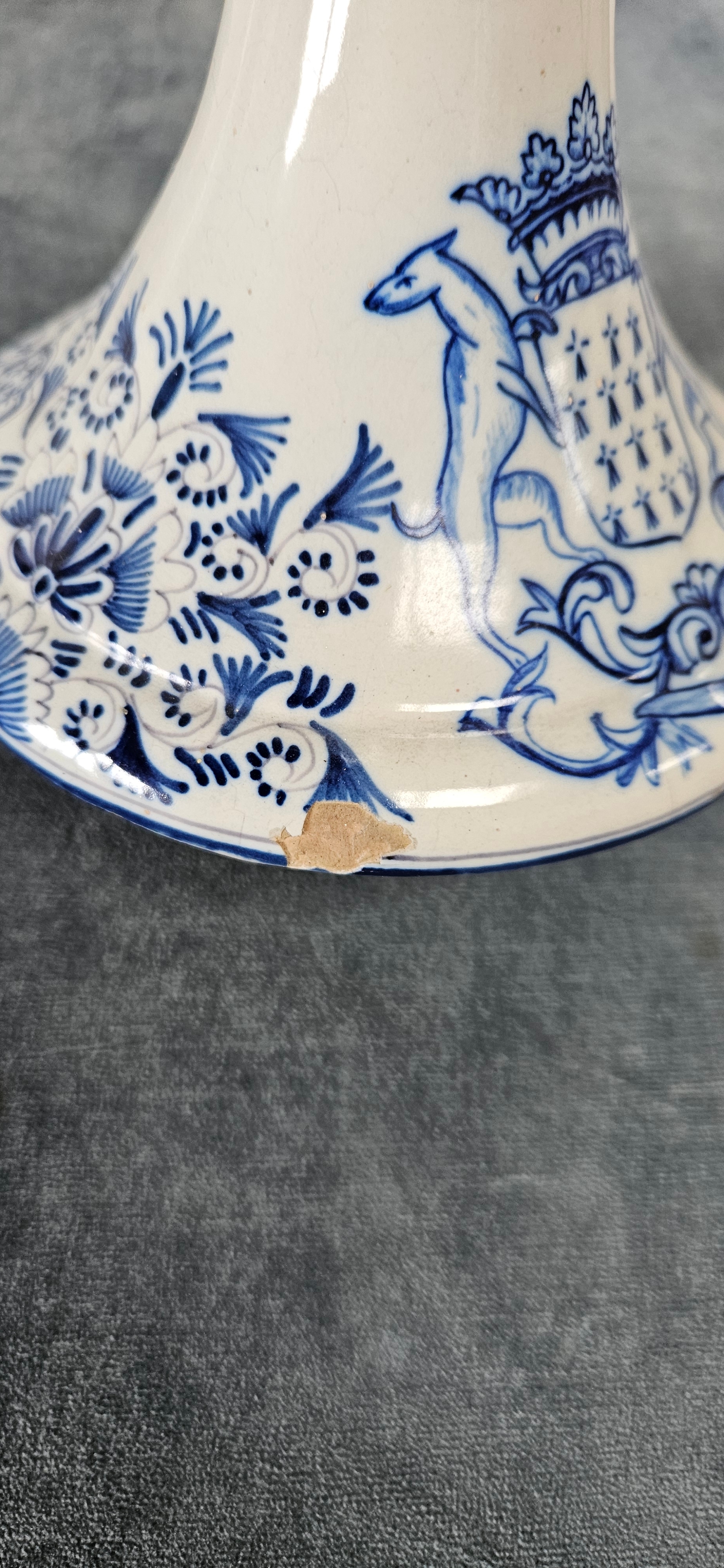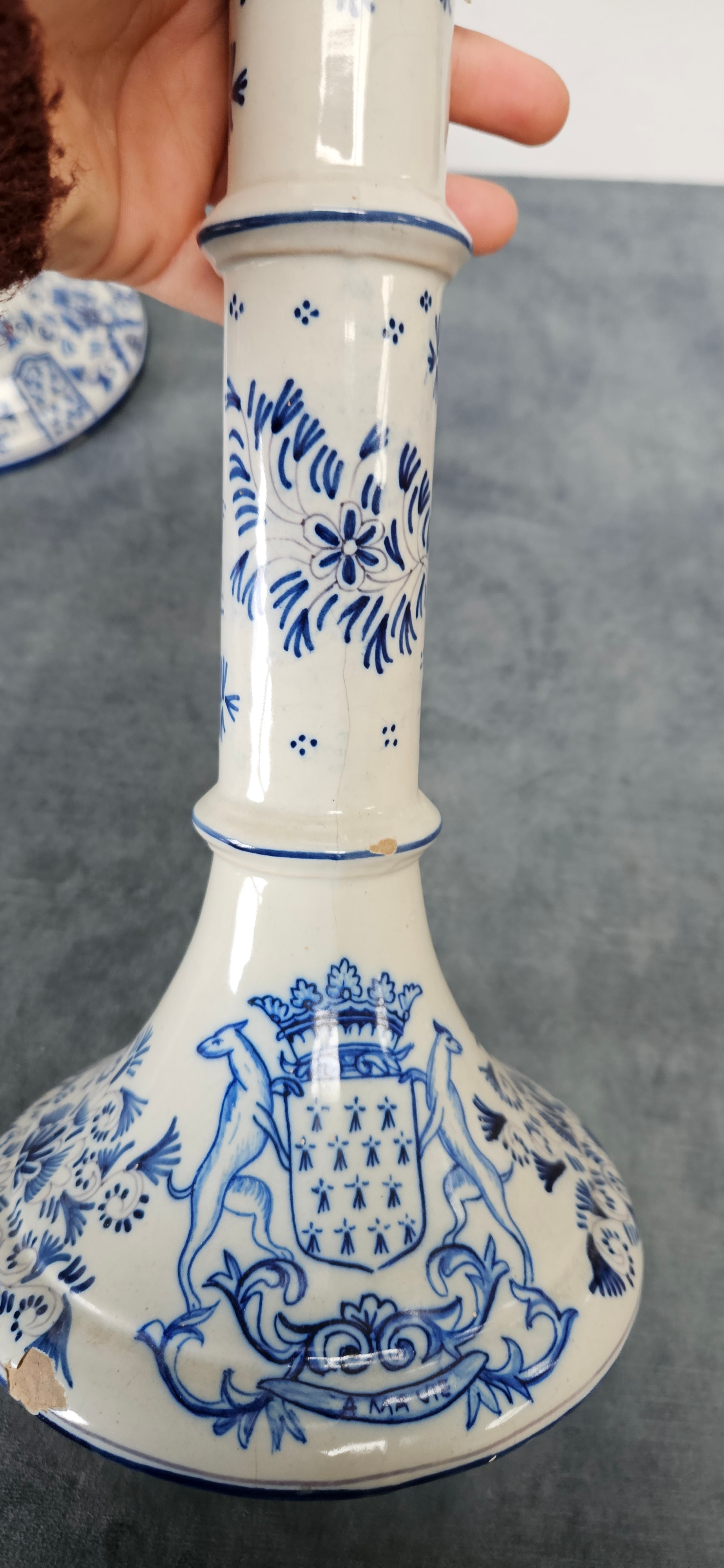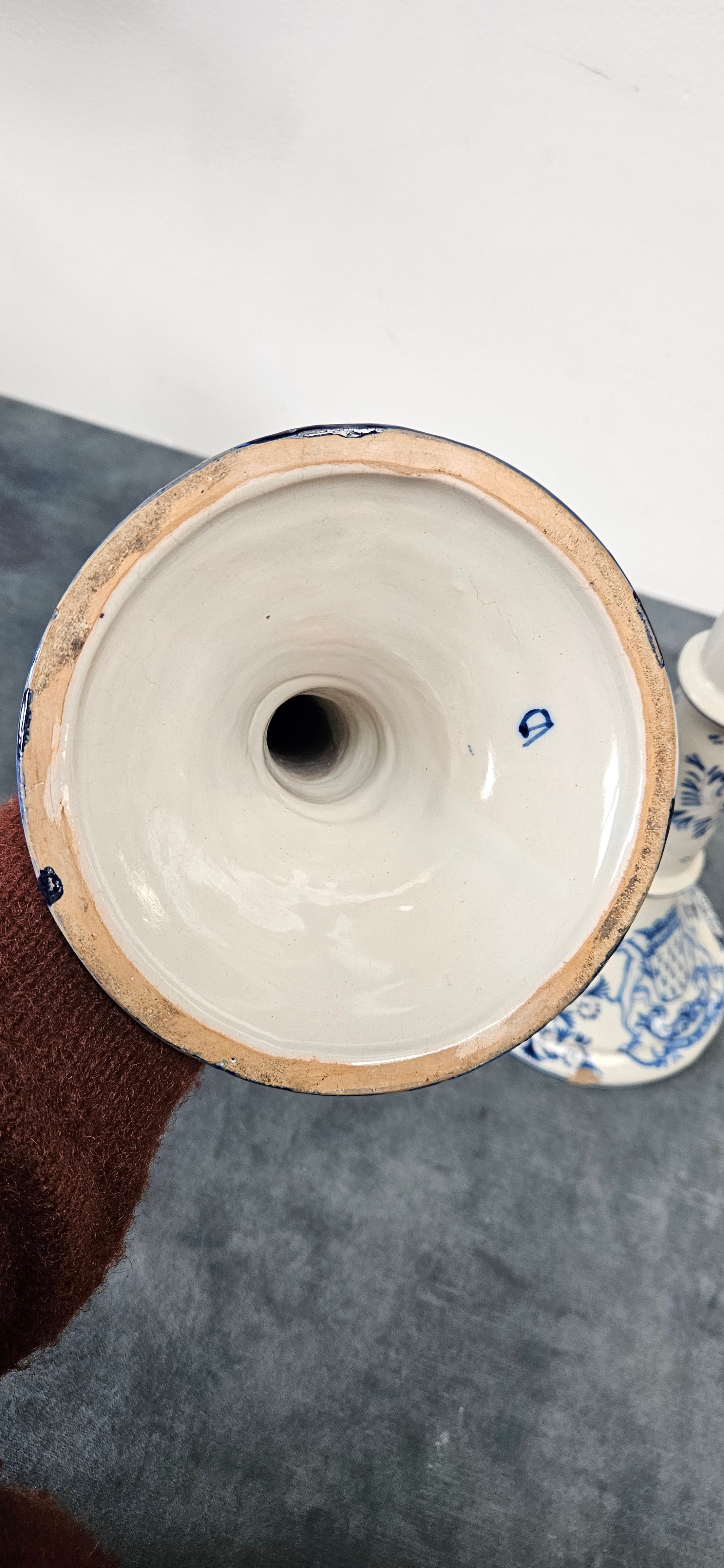 Large pair of Dutch Delft blue and white porcelain candlesticks