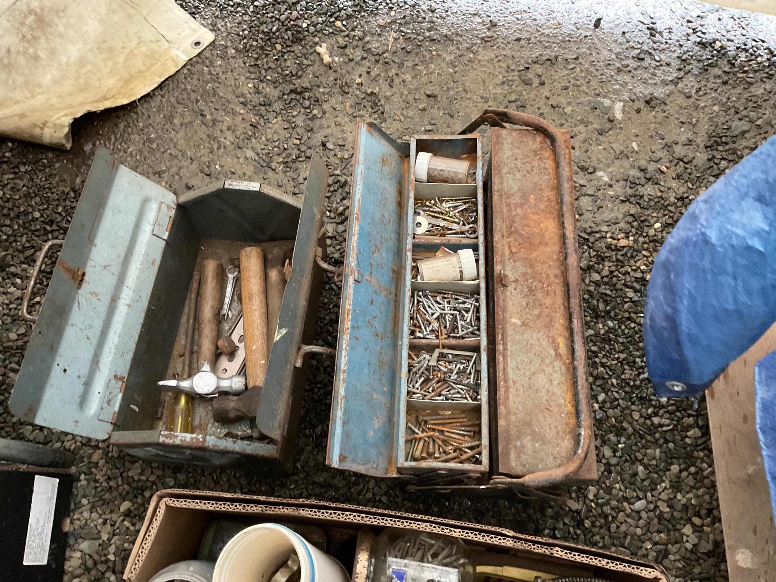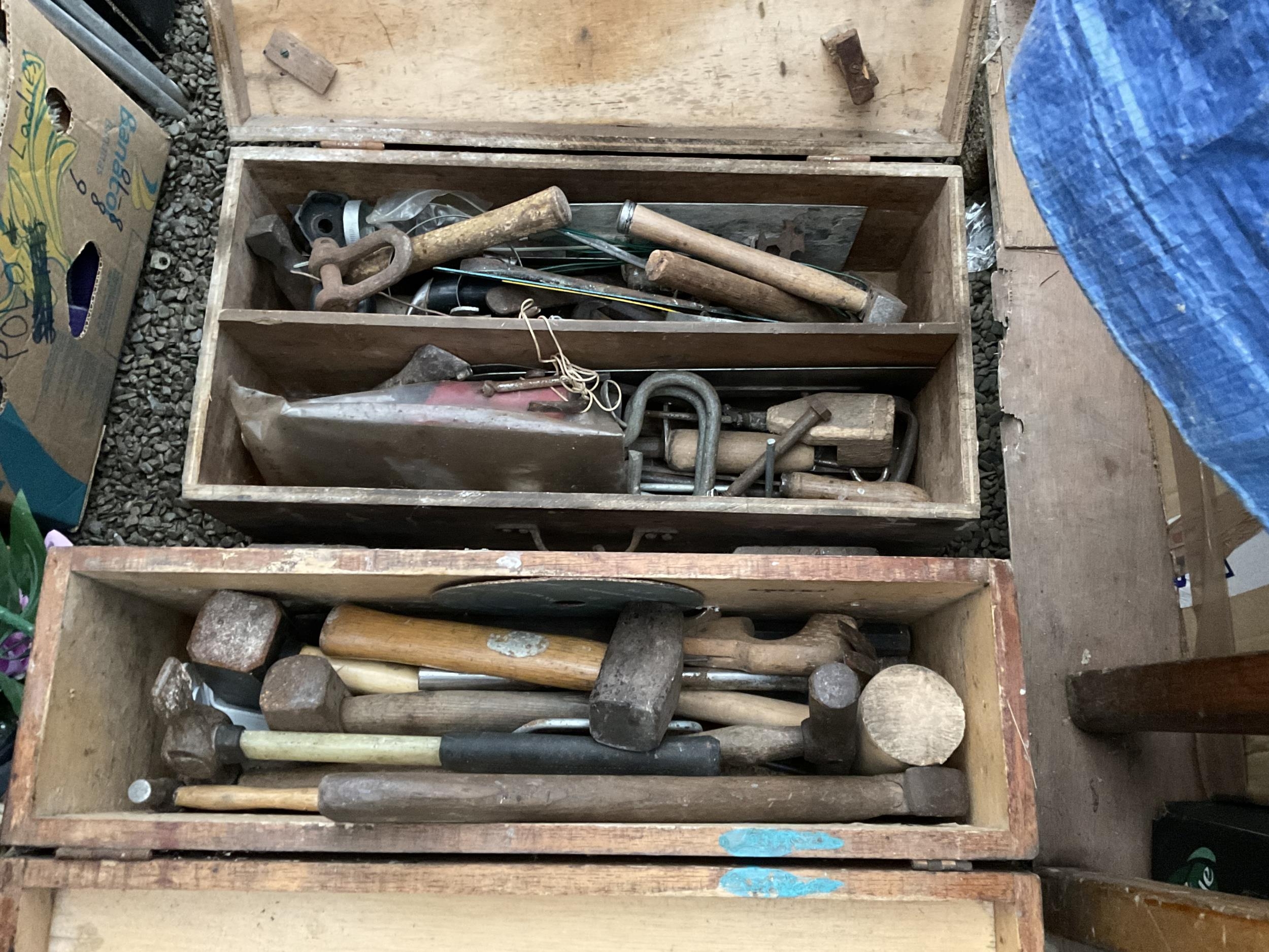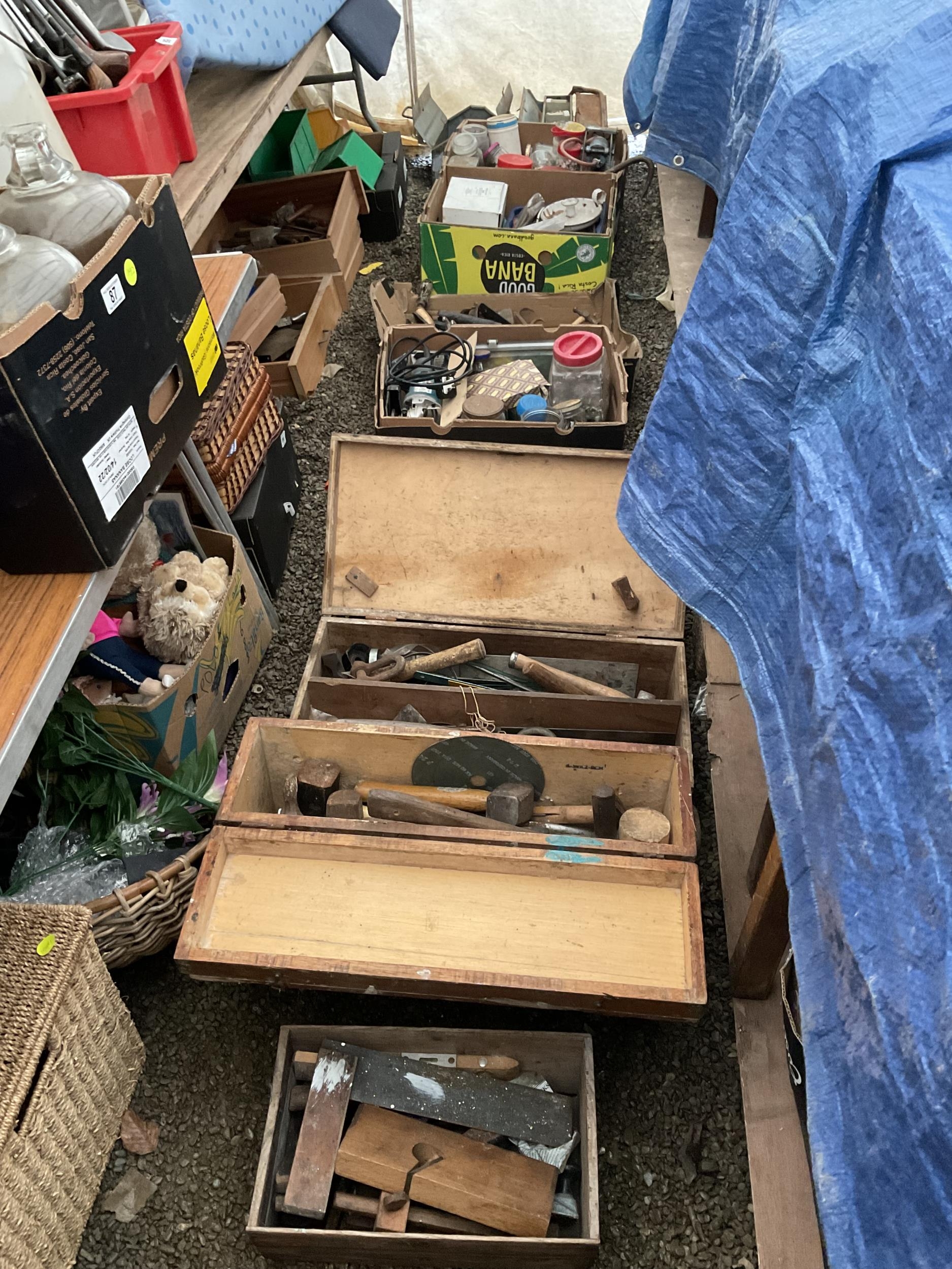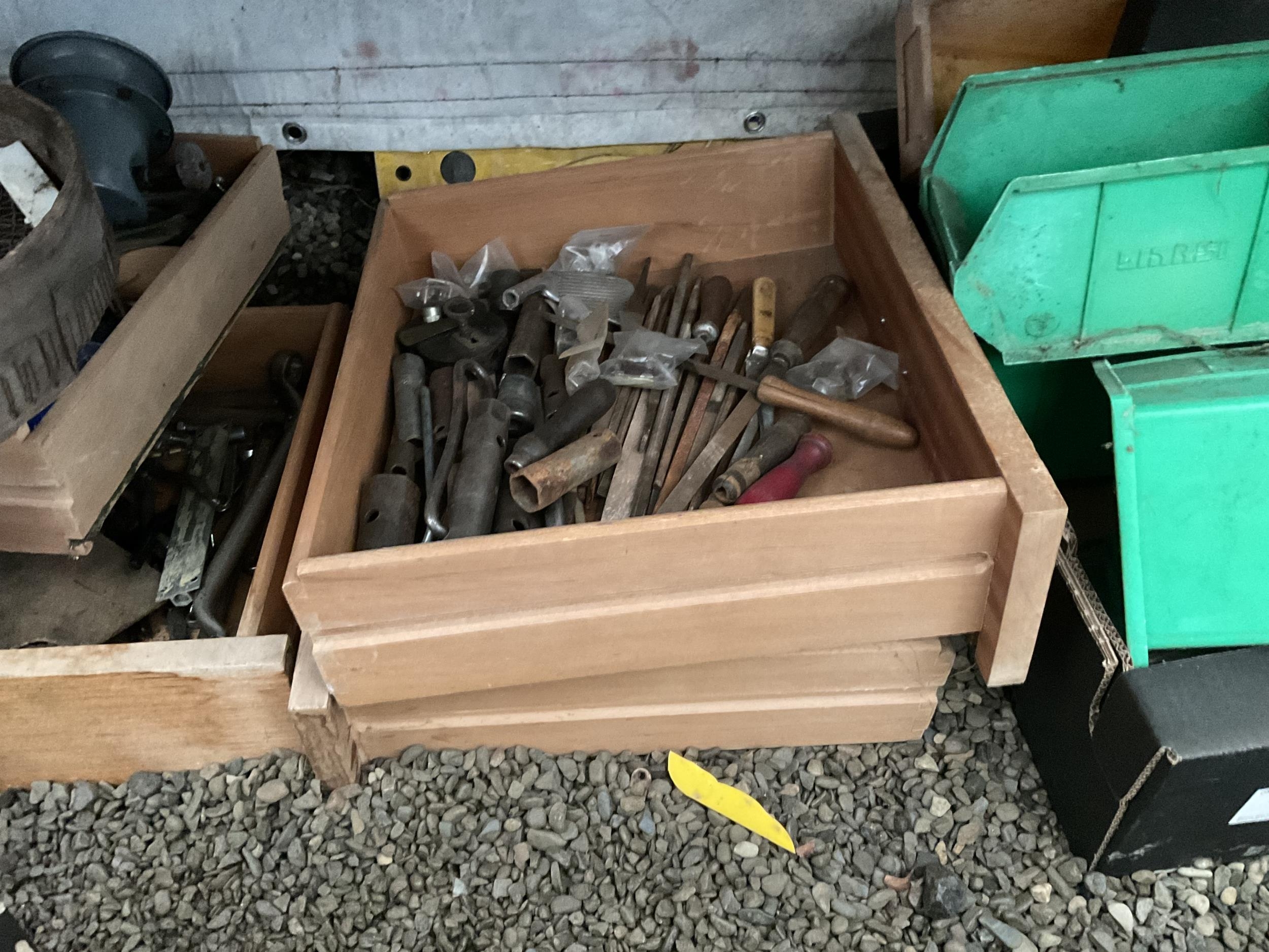 LARGE QTY OF TOOLS TO INCLUDE TOOL BOXES, FOOT PUMP SPANNERS ETC