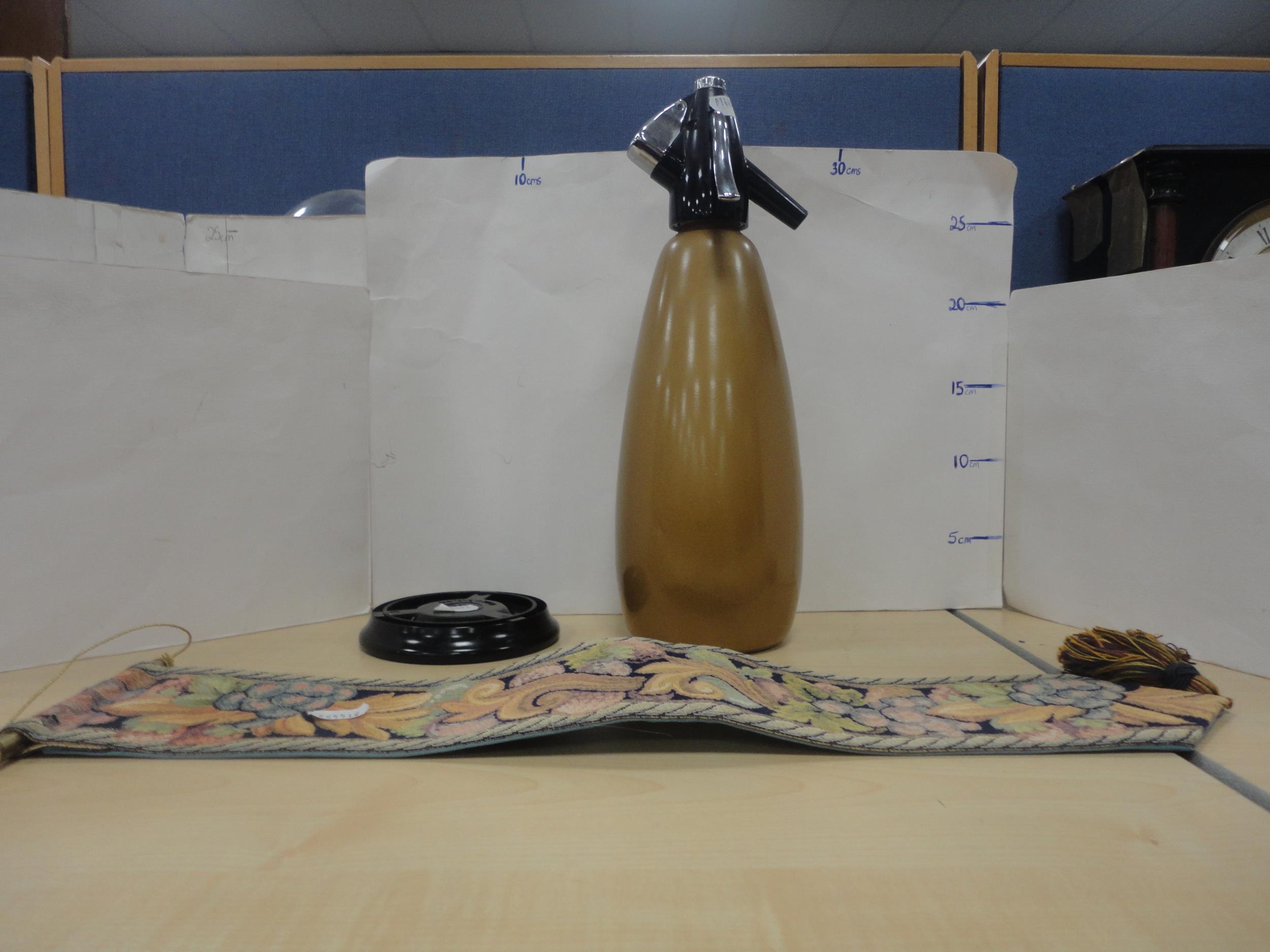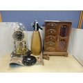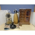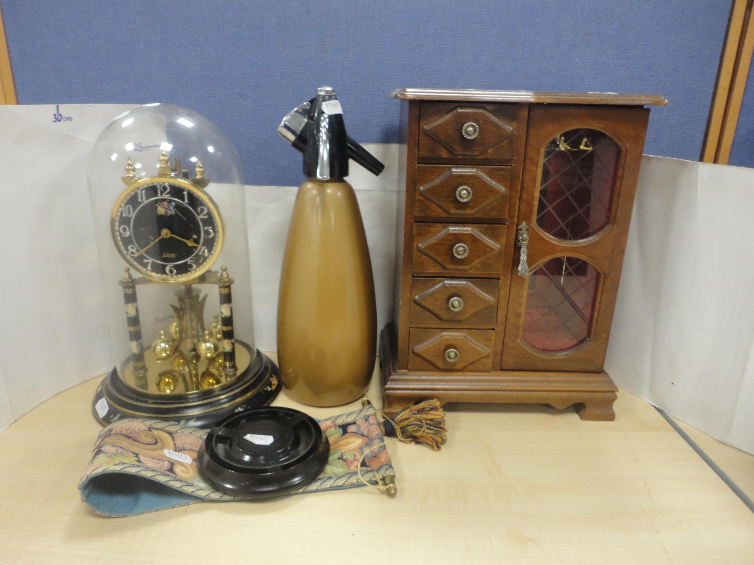 Jewellery cabinet, anniversary clock, soda syphon etc.