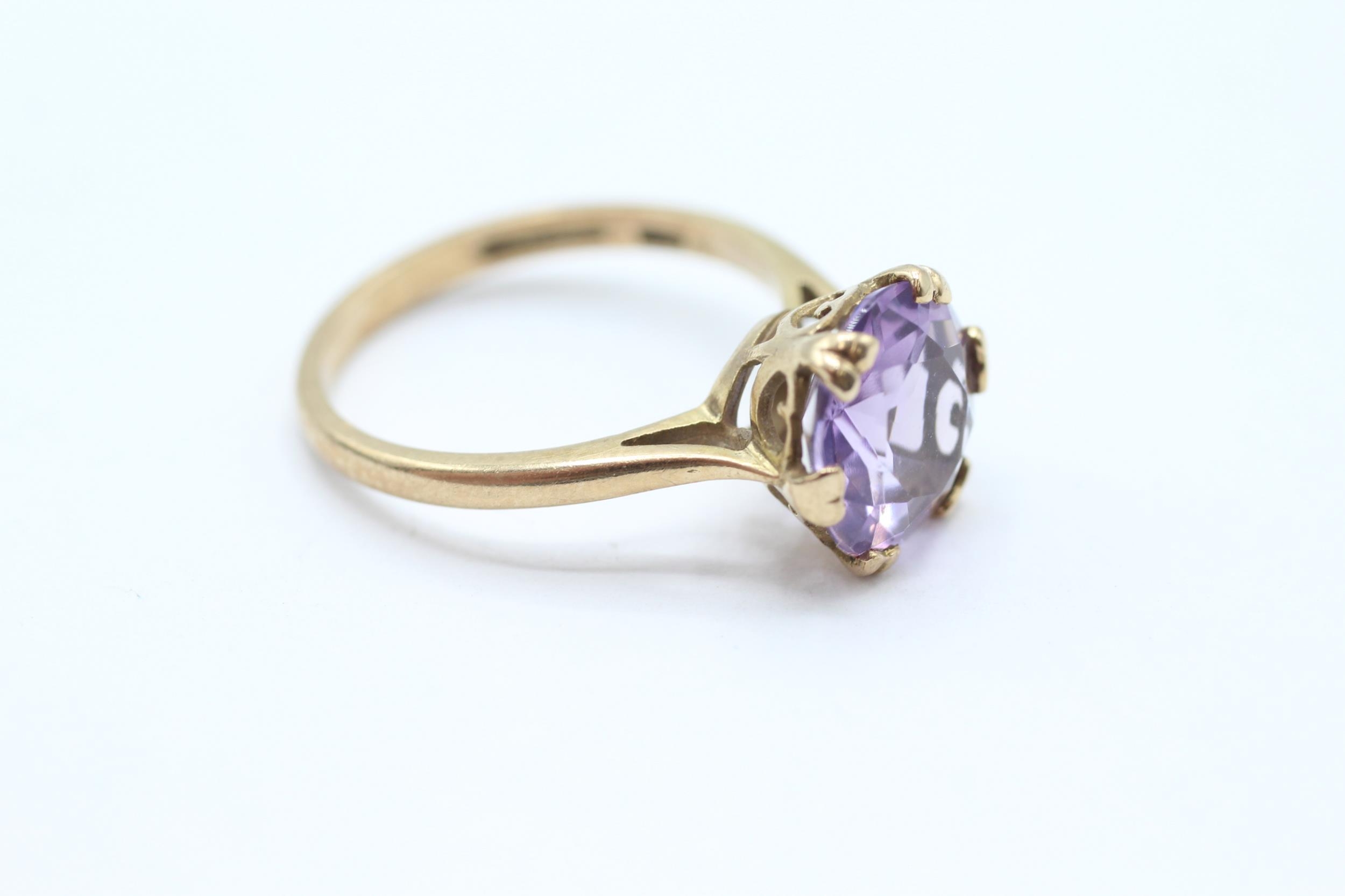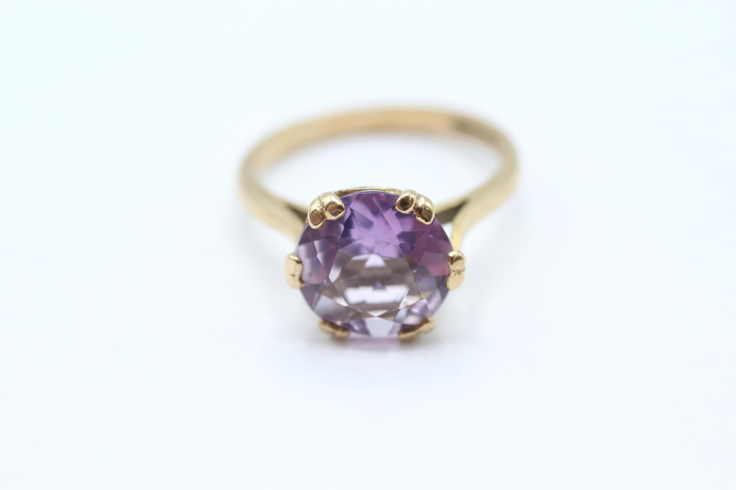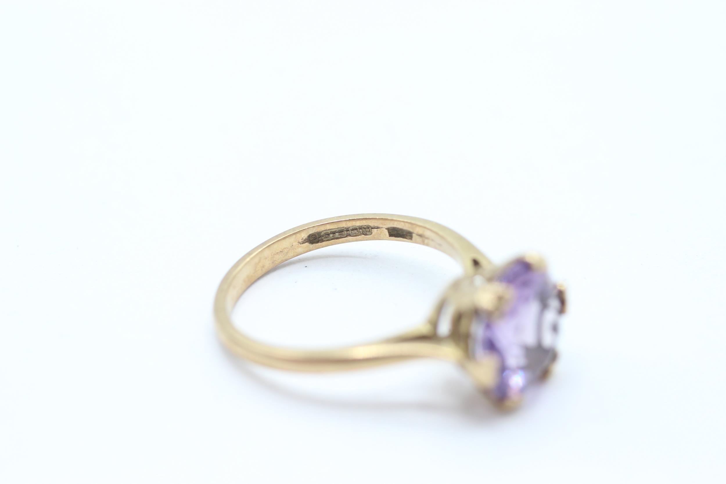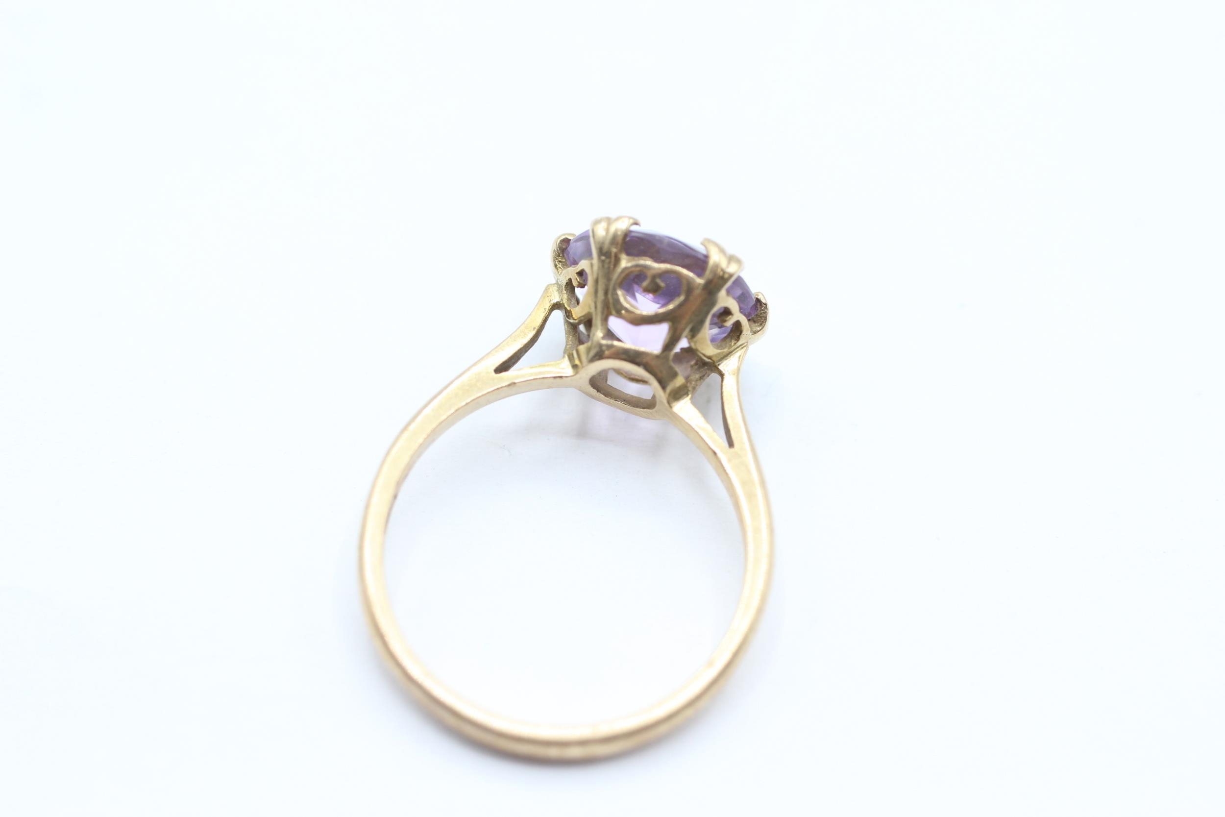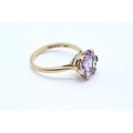 9ct gold vintage amethyst dress ring with a heart patterned gallery. Hallmarked Edinburgh 1968 Size N - 2.7 g