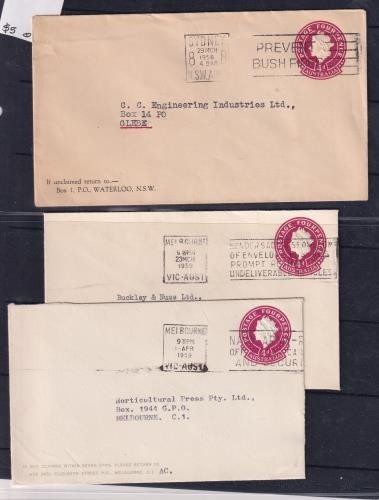 1958/63 QEII Postal Stationery 4d + 5d Company Envelopes FU with different imprints and many different slogan cancels. The collection of 39 different.