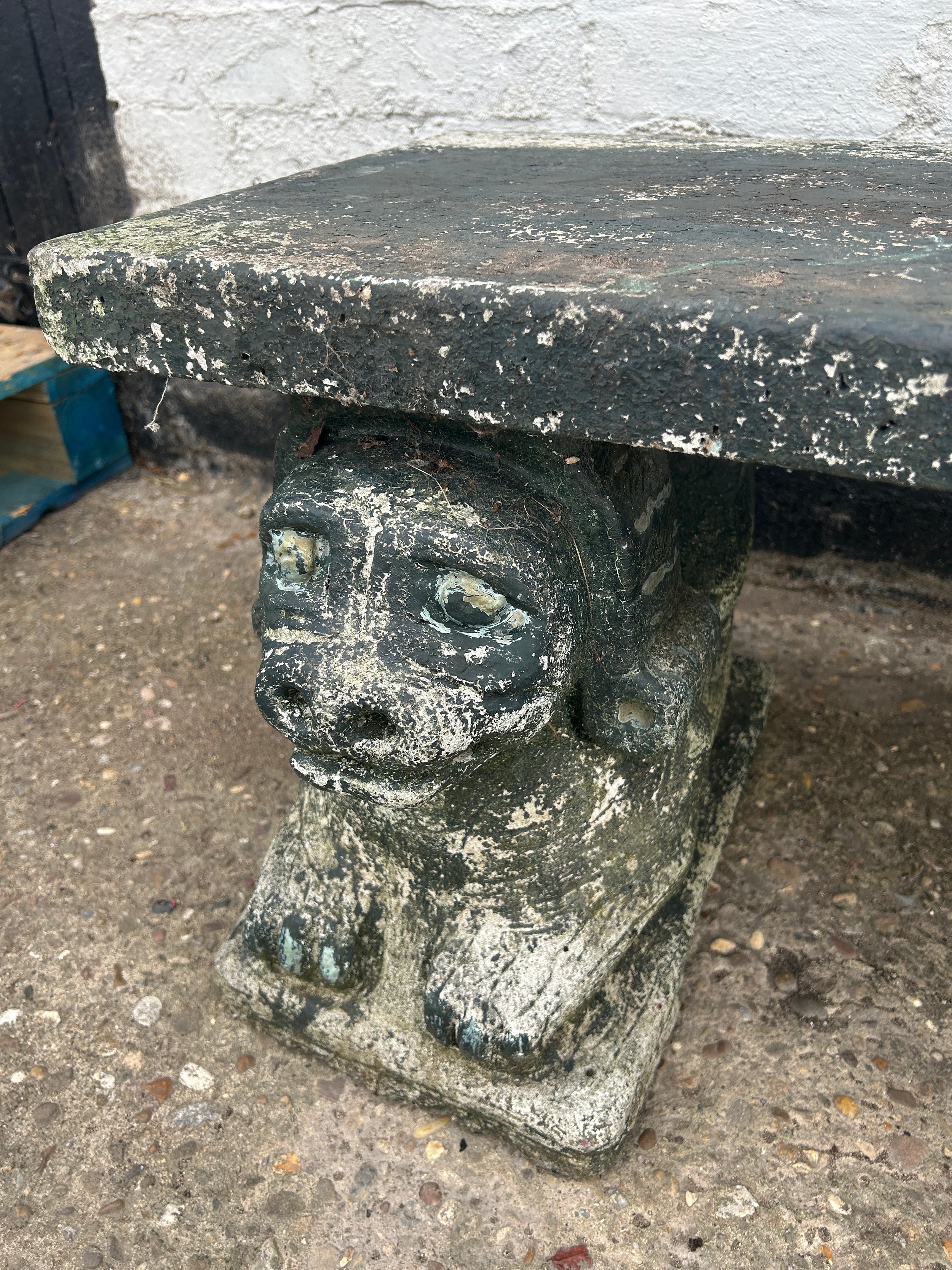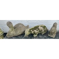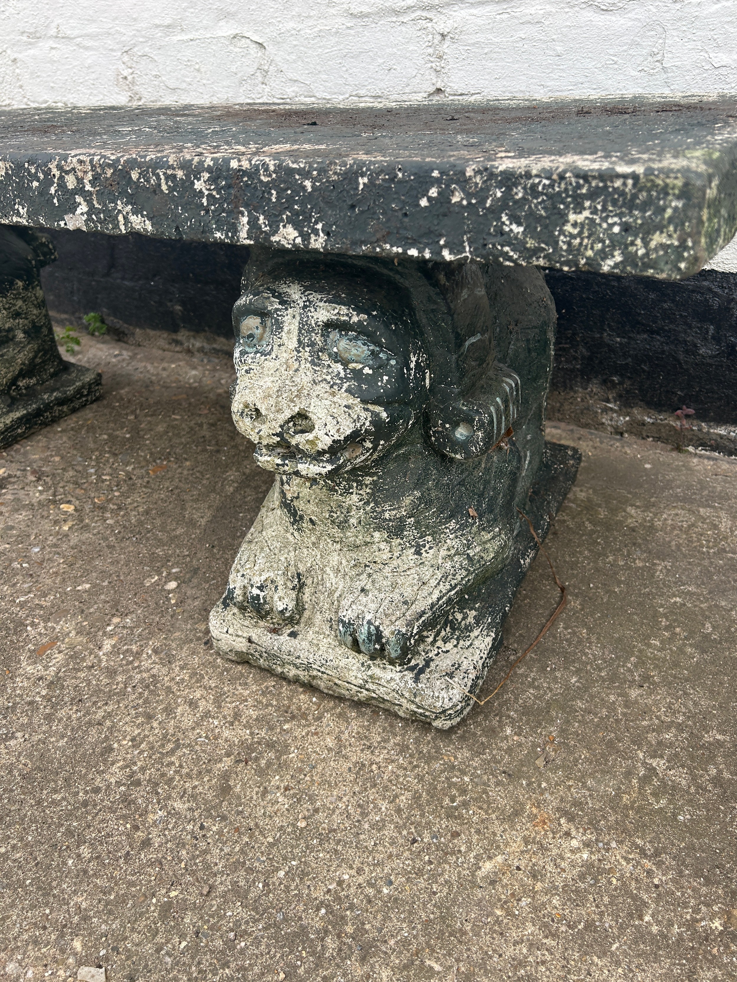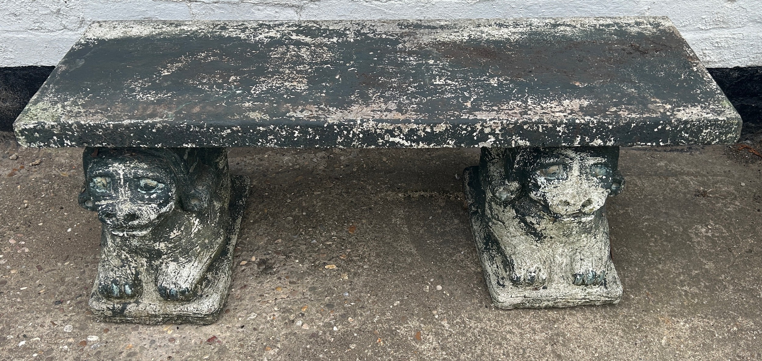 3 piece faux concrete dog garden bench 16.5" high, 46" wide, 15.5" deep