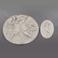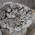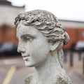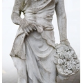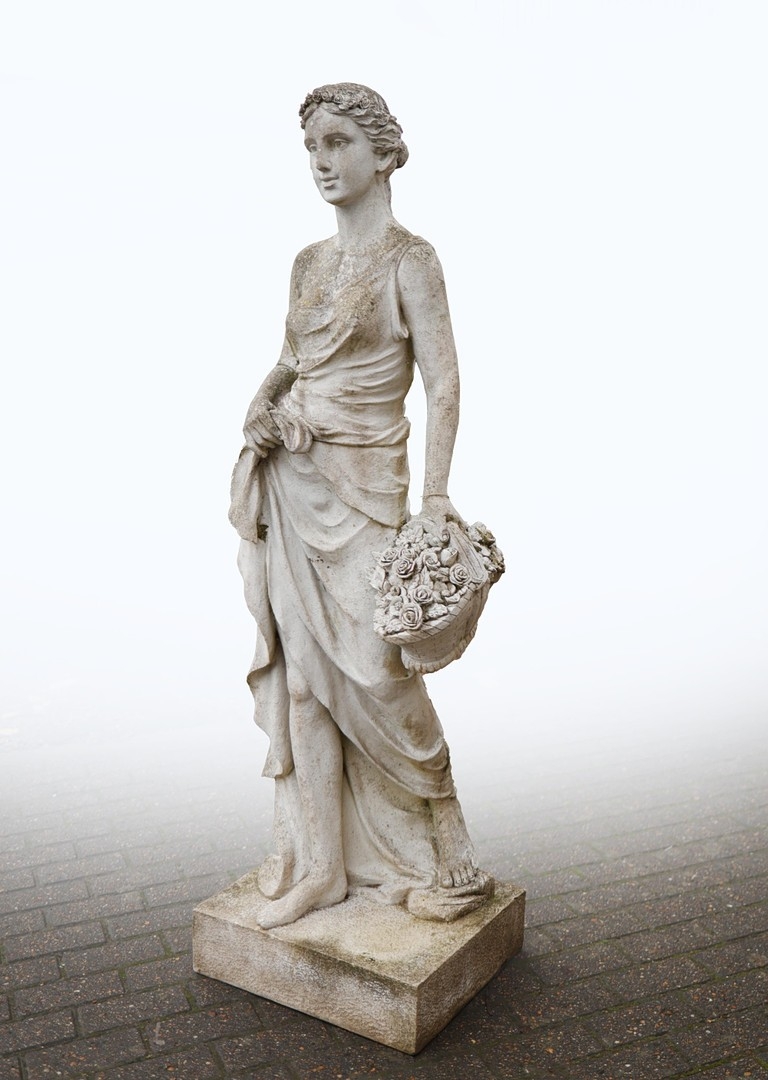CONTEMPORARY SCHOOL SCULPTURAL LADY WITH BASKET OF FLOWERS. composite stone.