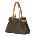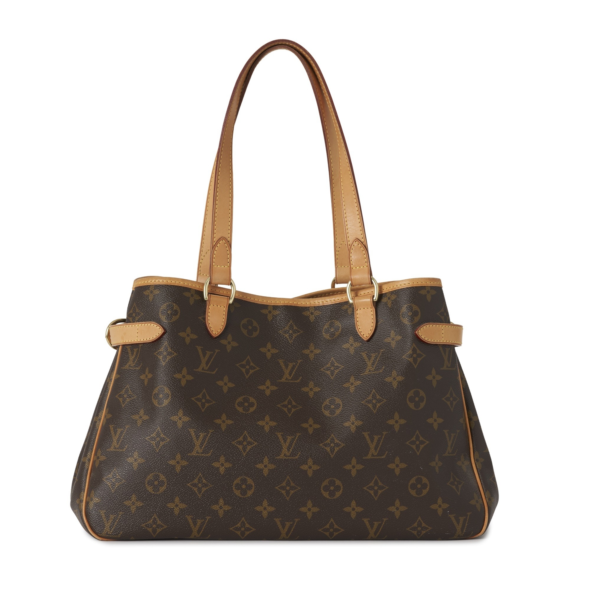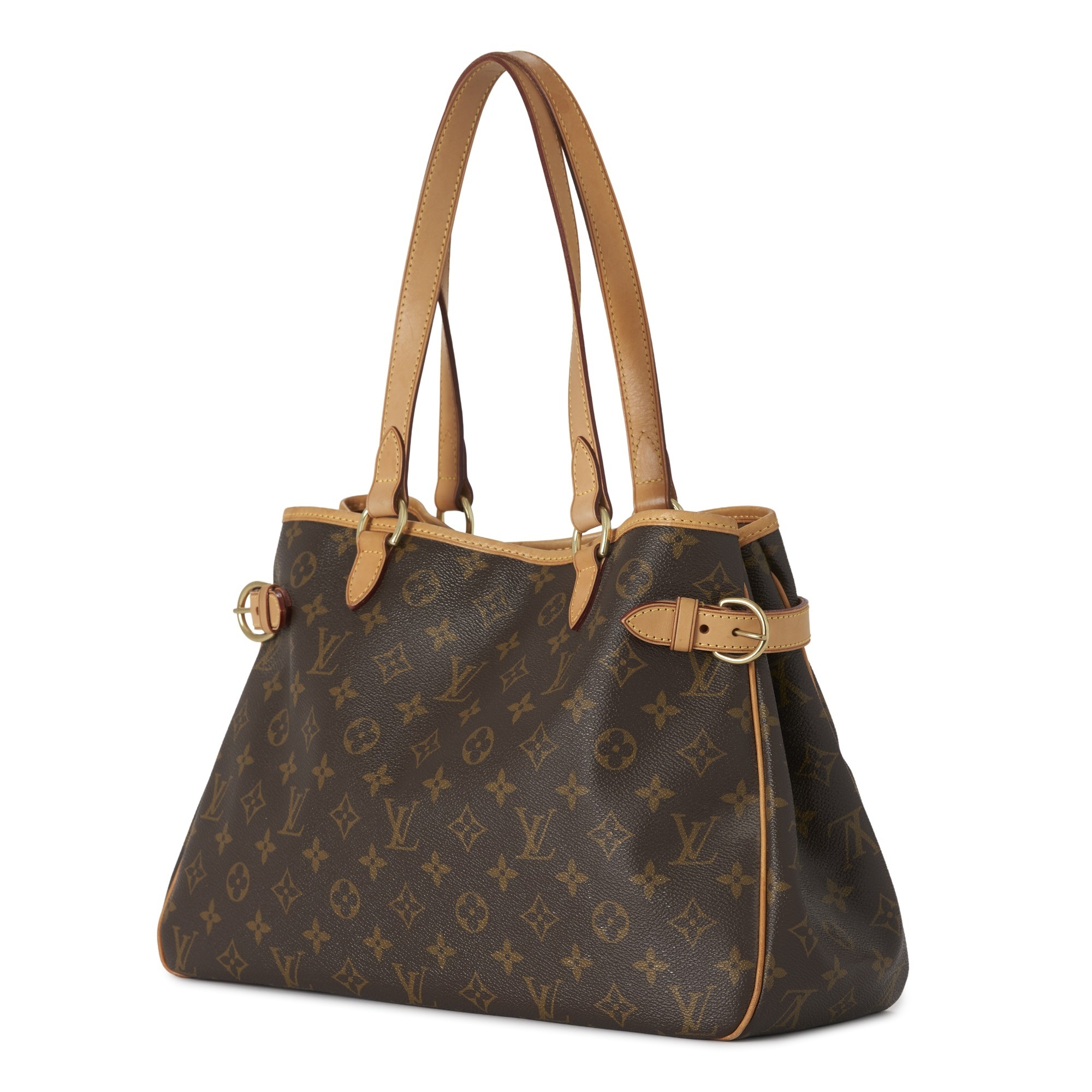 Louis Vuitton, a monogram Batignolles Horizontal tote, featuring a coated monogram canvas exterior and vachetta leather trim, dual flat leather handles, gold-tone hardware, belted gussets, an open top with lobster clip fastening, and a brown canvas-lined interior, measuring 13 by 24.5 by 38cm, with maker's dust bag