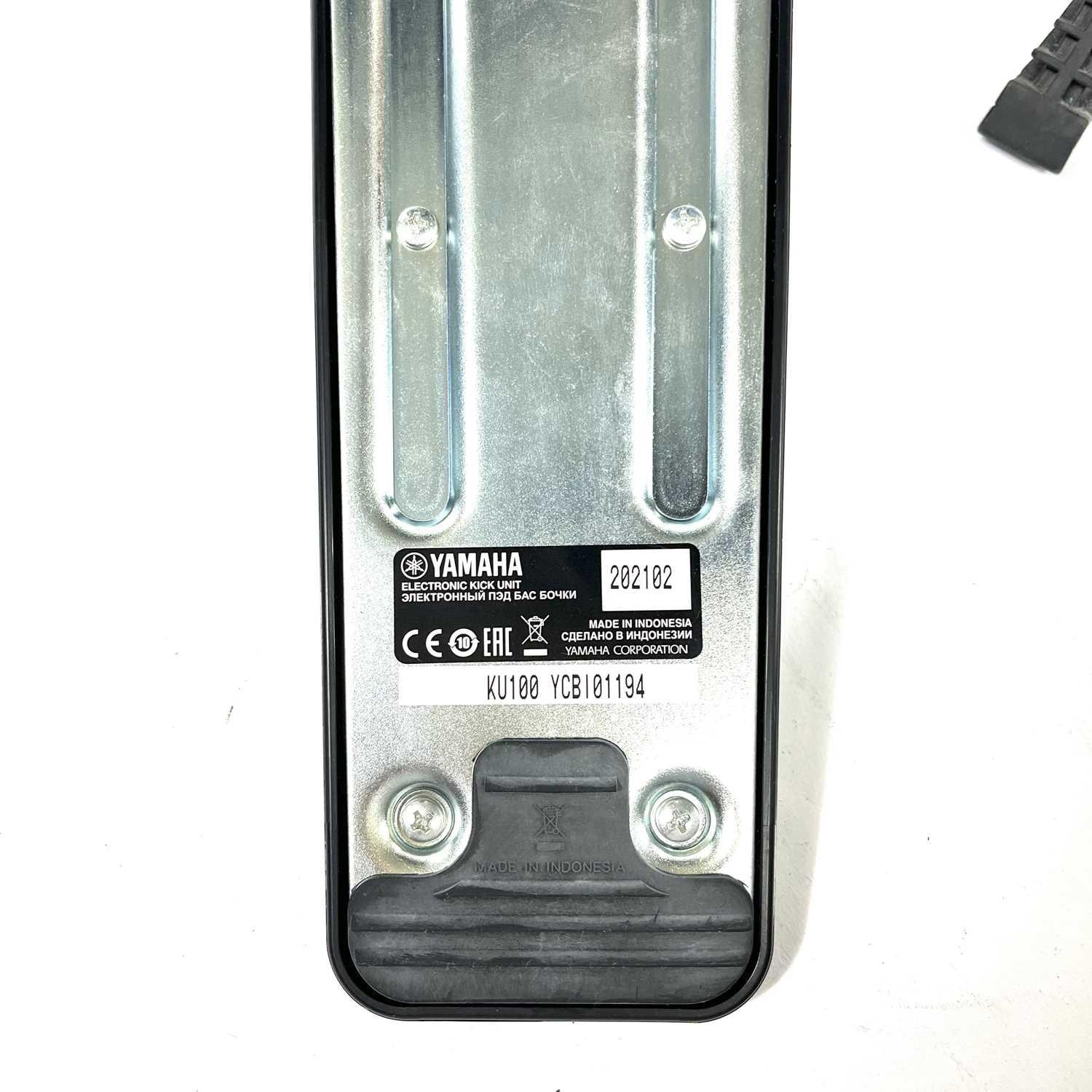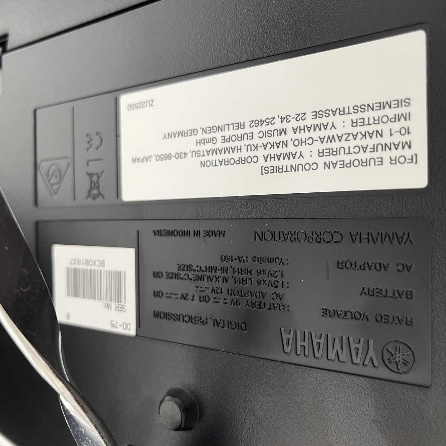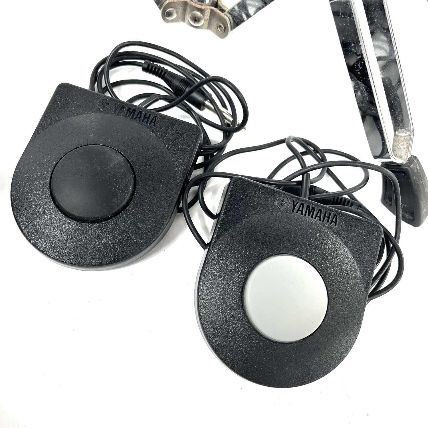 Yamaha DD-75 portable digital drum set and a KU100 silent kick pedal. Also included is a stand for the DD-75 and a drum stool. (4)