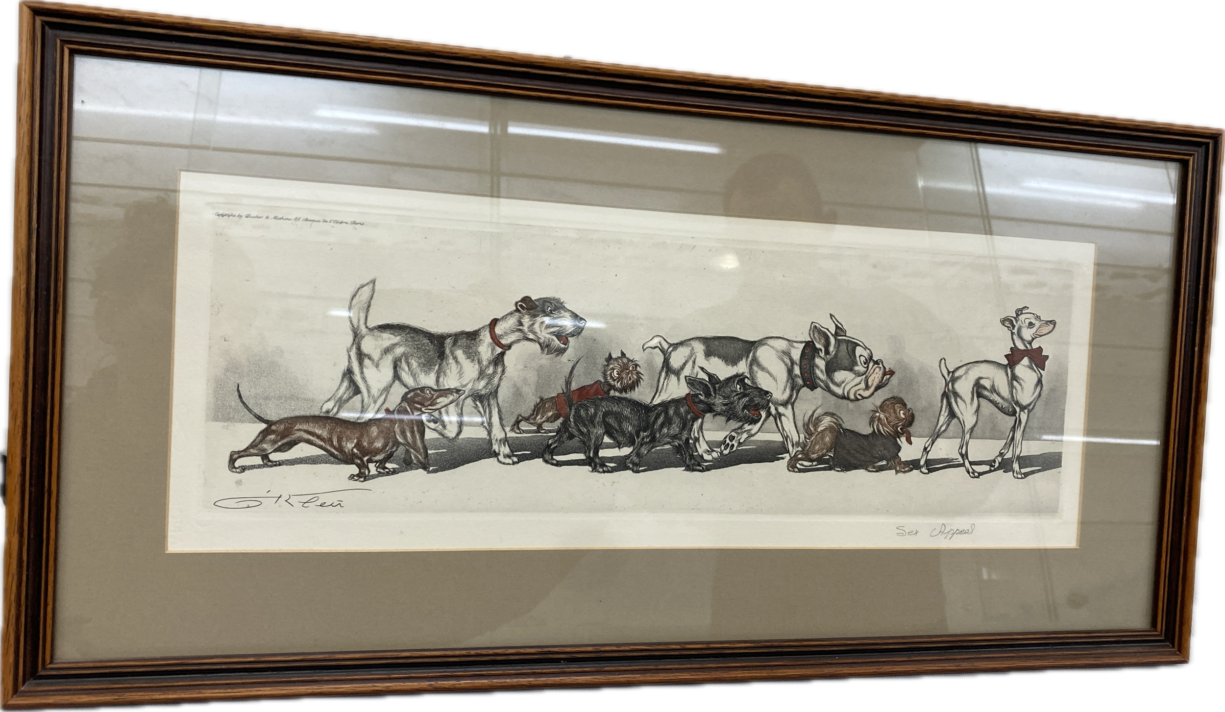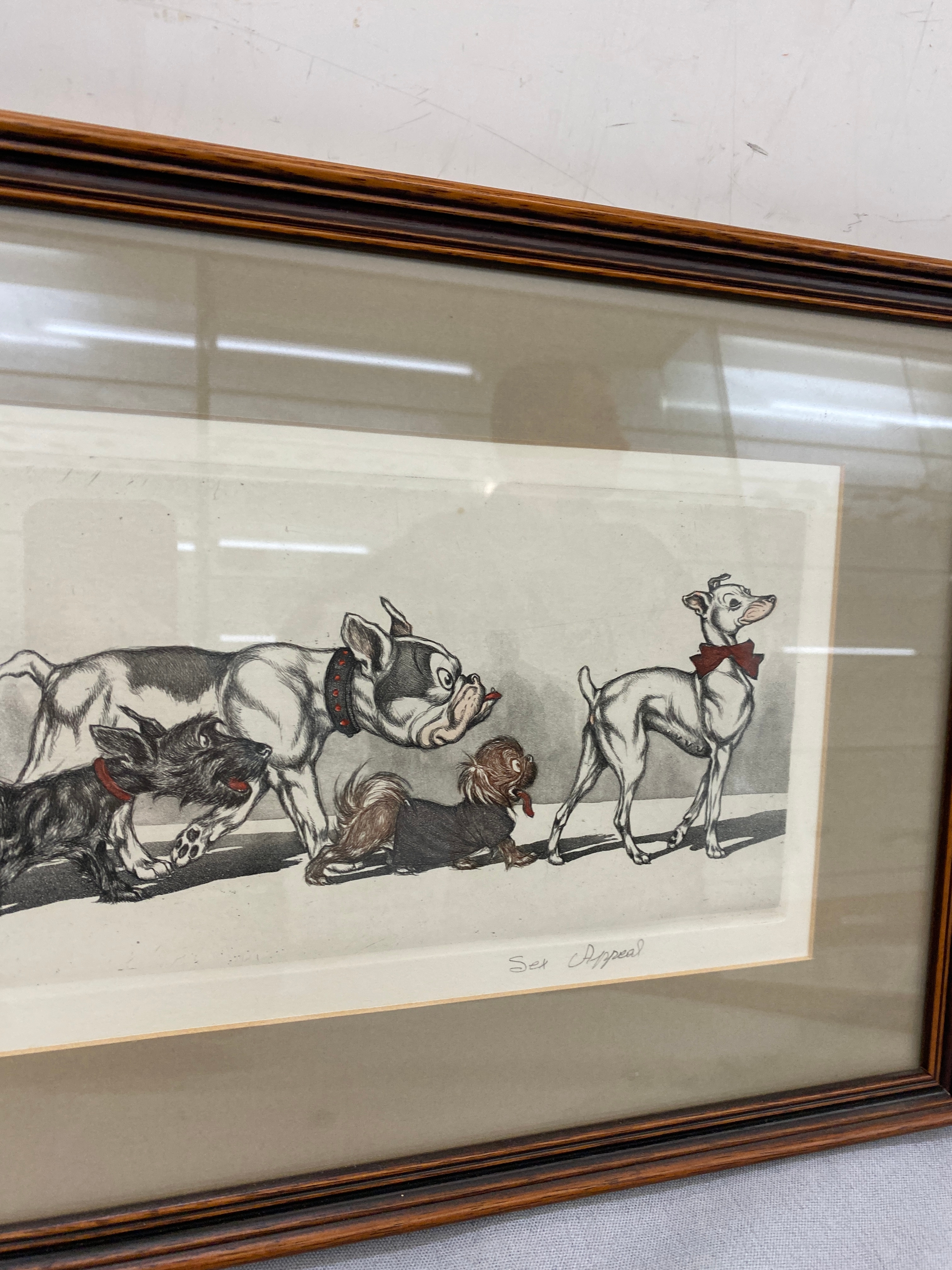 Signed framed Dirty dog series print by Borris Oklien "sex appeal" 12 inches tall 24 inches wide