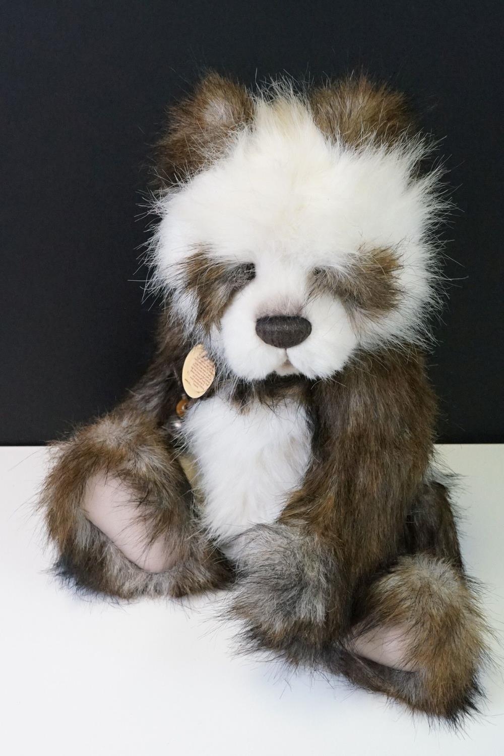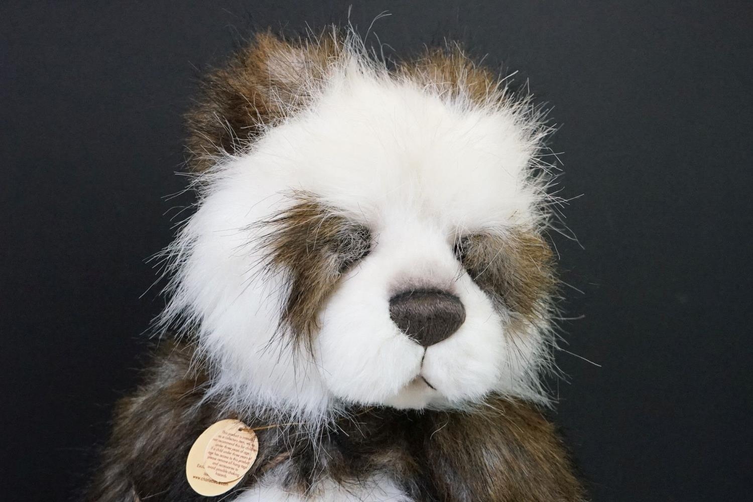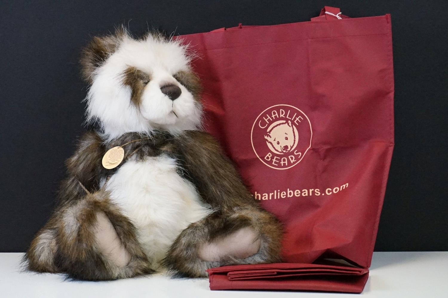 Charlie Bears ' Shaun ' panda bear, CB104719, designed by Isabelle Lee, with tag, approx 51cm tall, plus 2 x Charlie Bears carrier bags