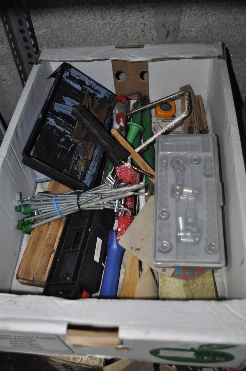 BOX OF MIXED TOOLS INC ROLLERS, MOULDING PLANES, MIXED SOCKETS ETC