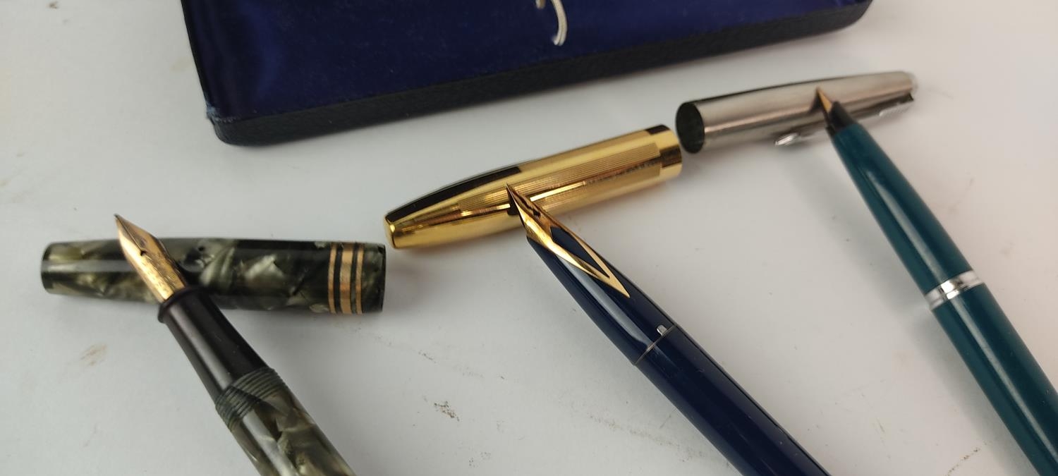 A lot of vintage pens to include Onoto Lever pen with 14ct nib and more.