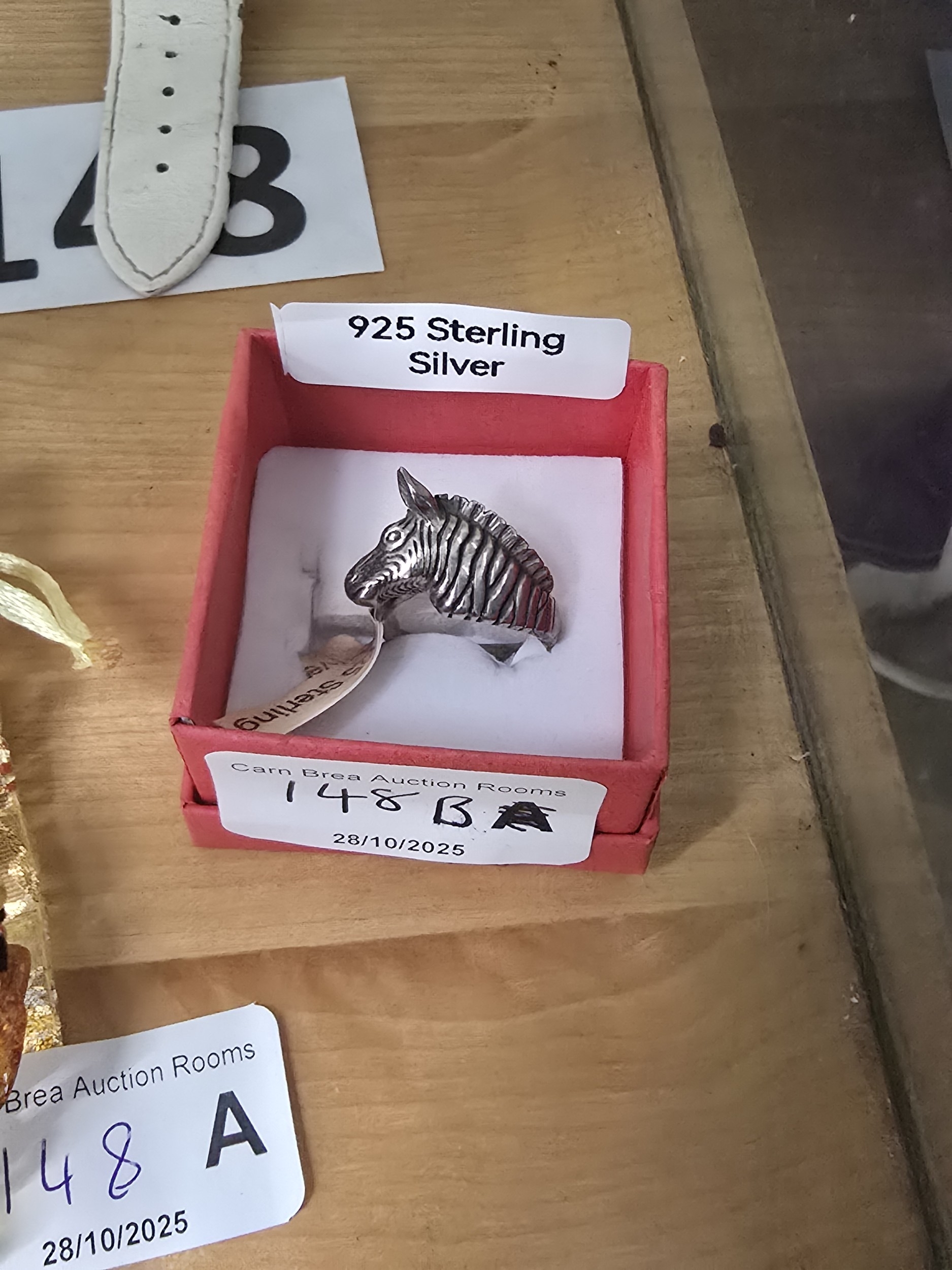 925 Silver with 925 Standard Mark, Zebra Ring, Size P