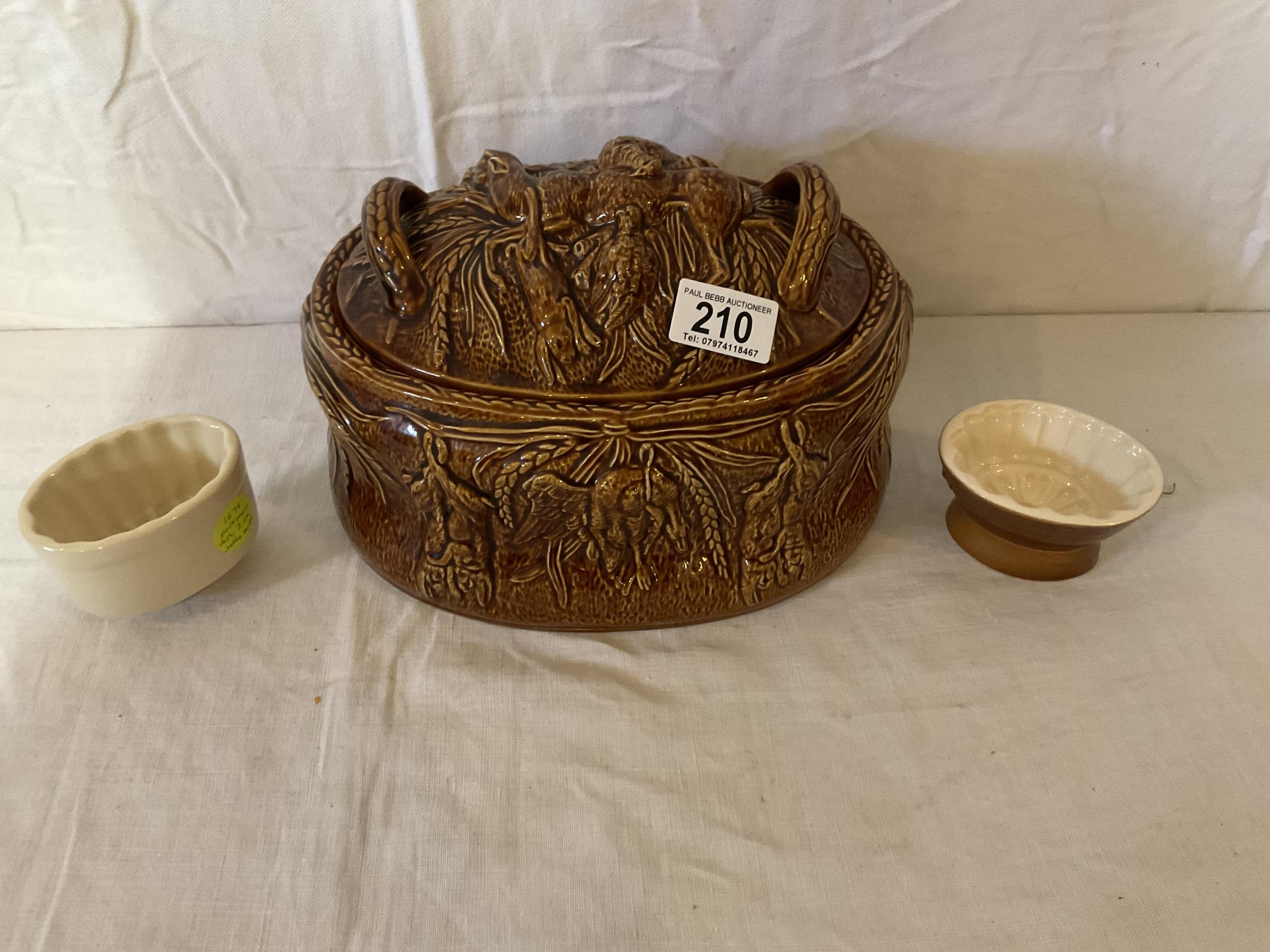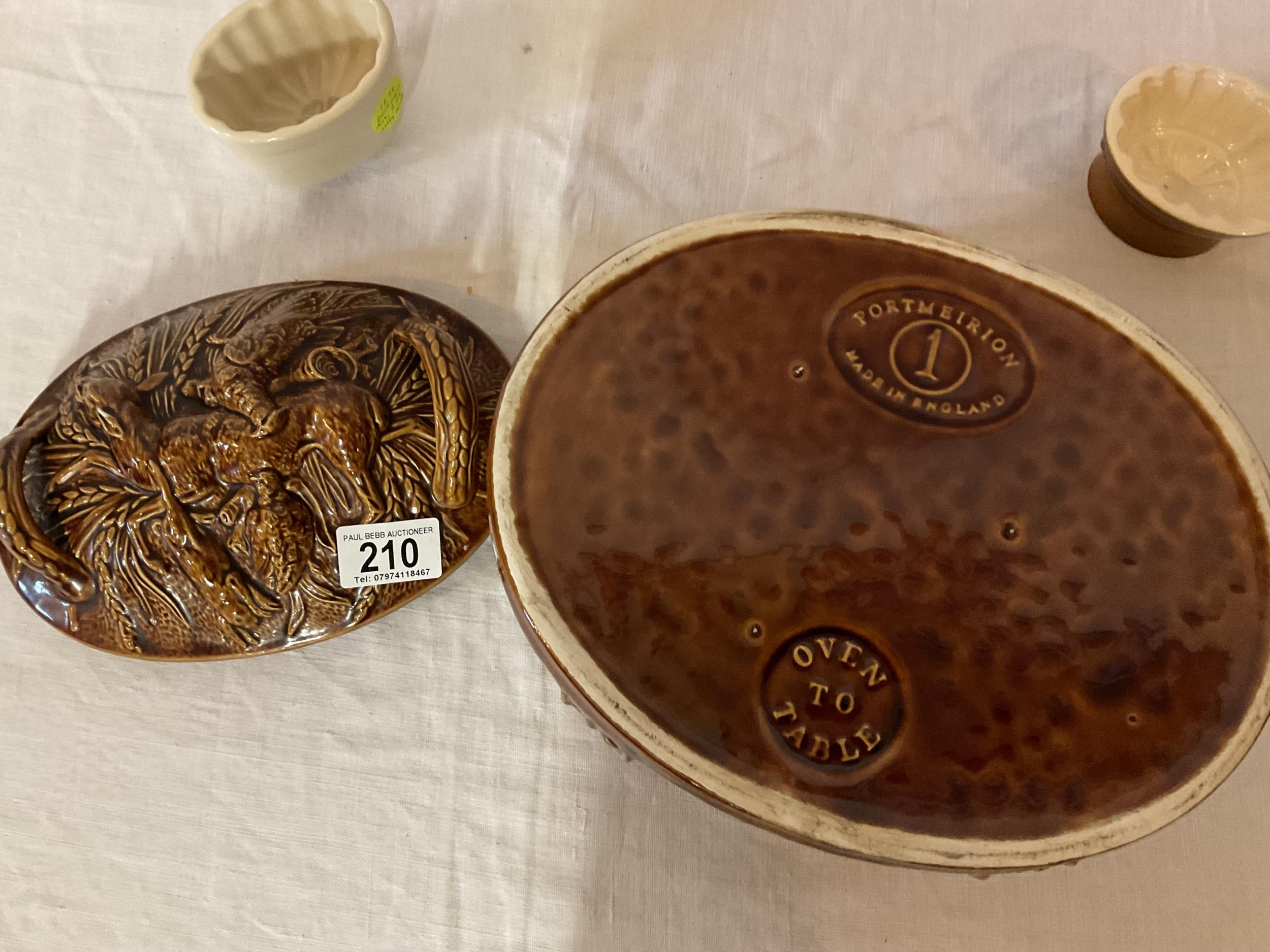 PORTMEIRION GAME DISH AND 2 SMALL JELLY MOULDS