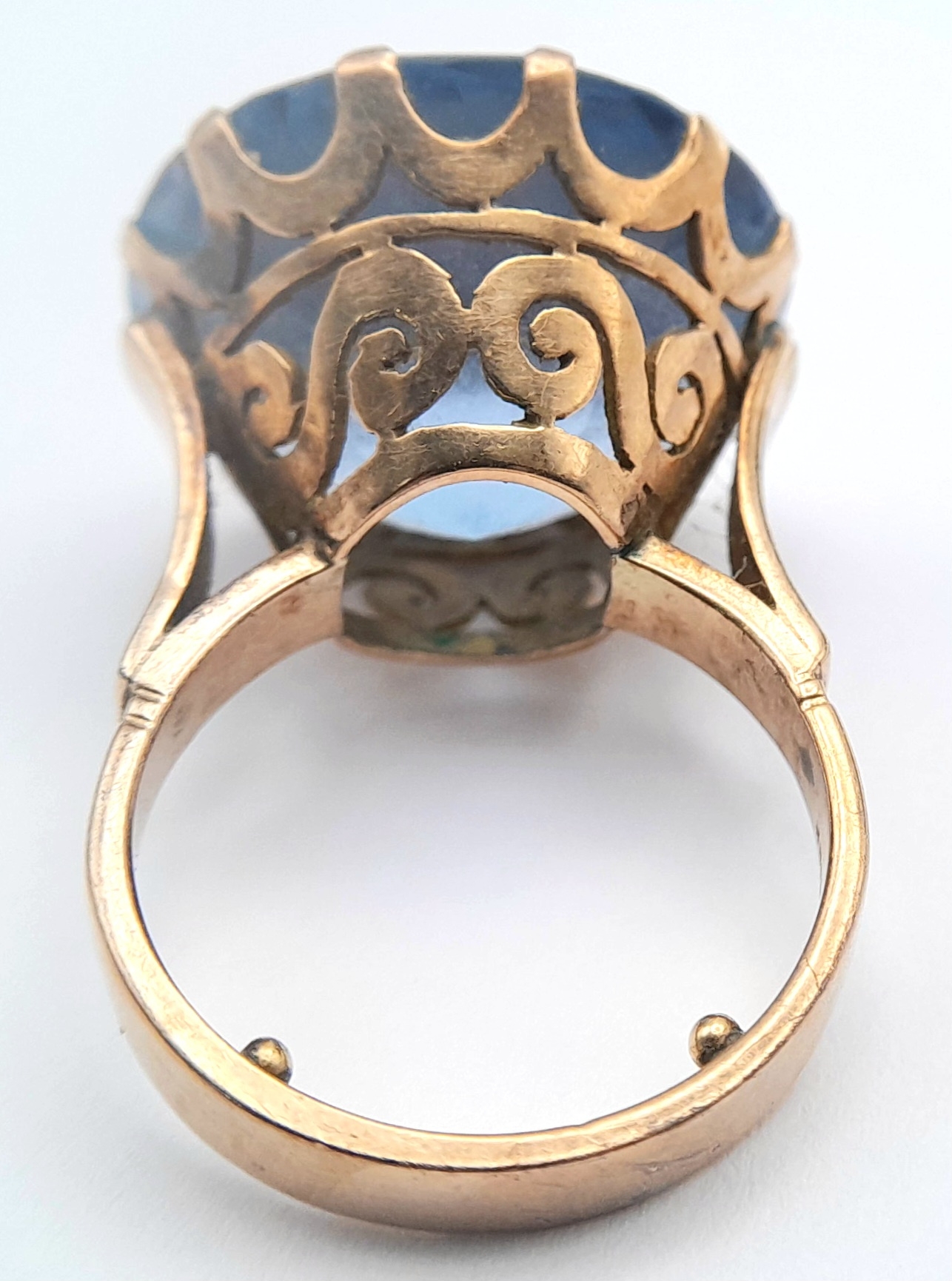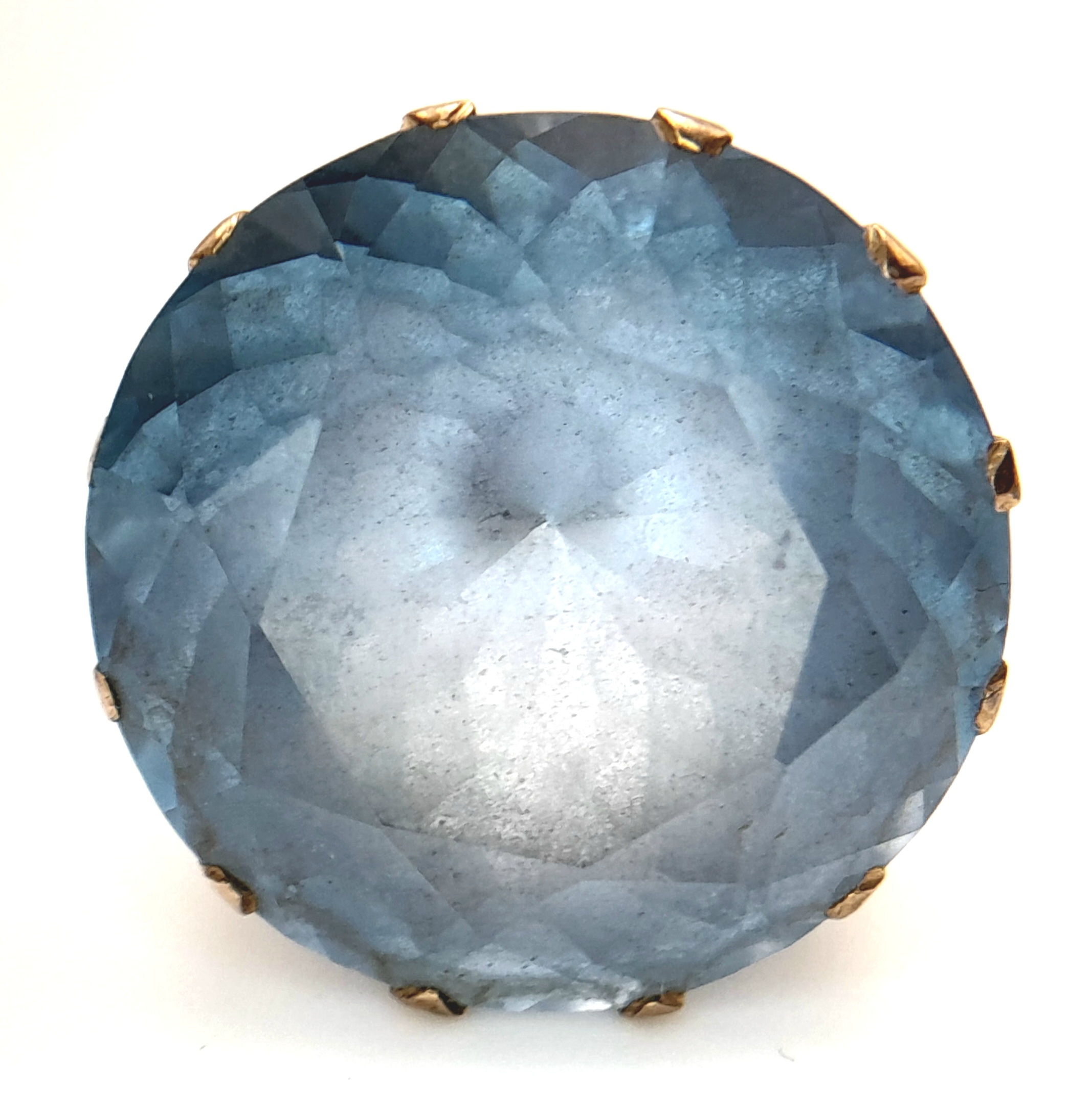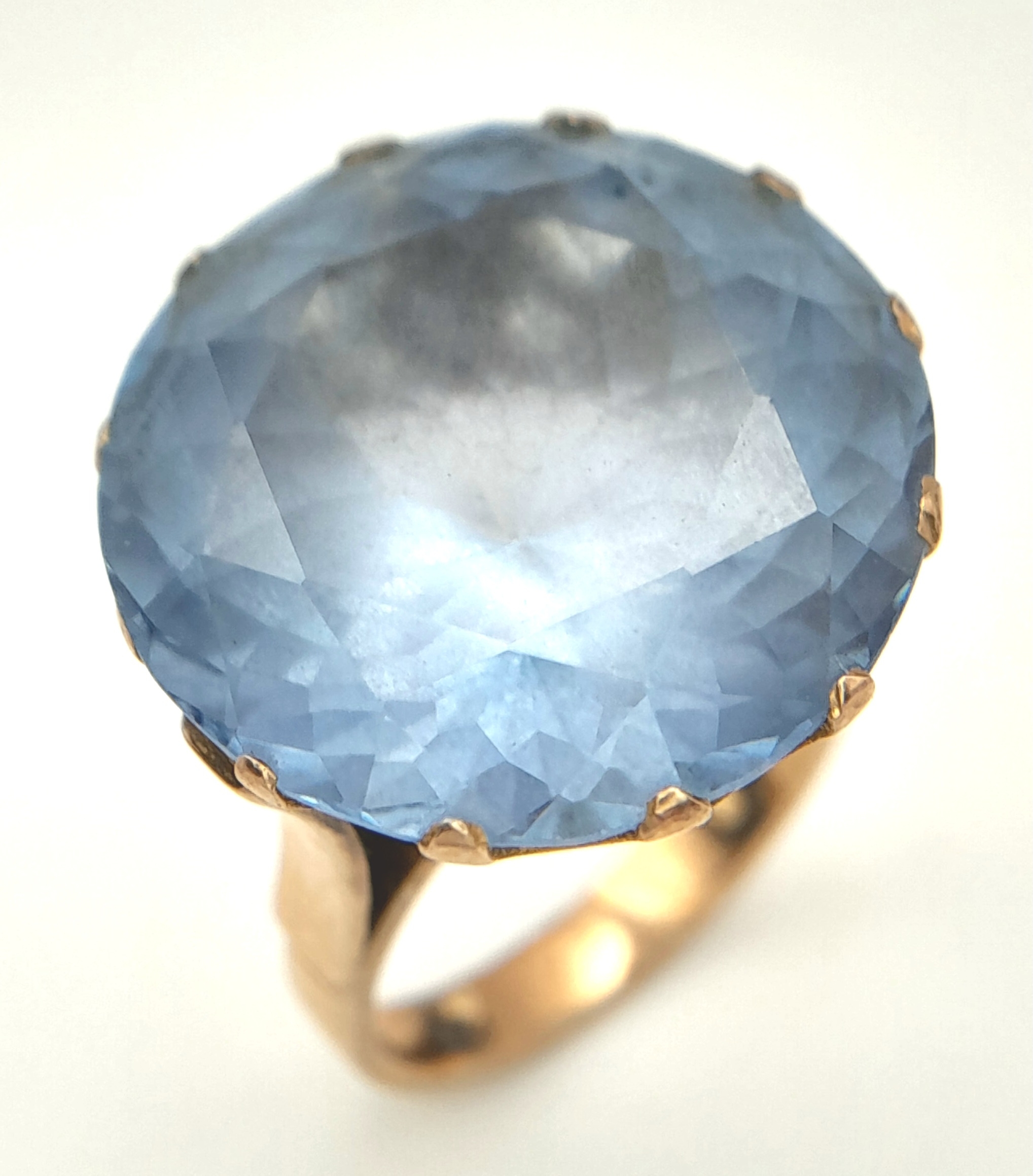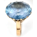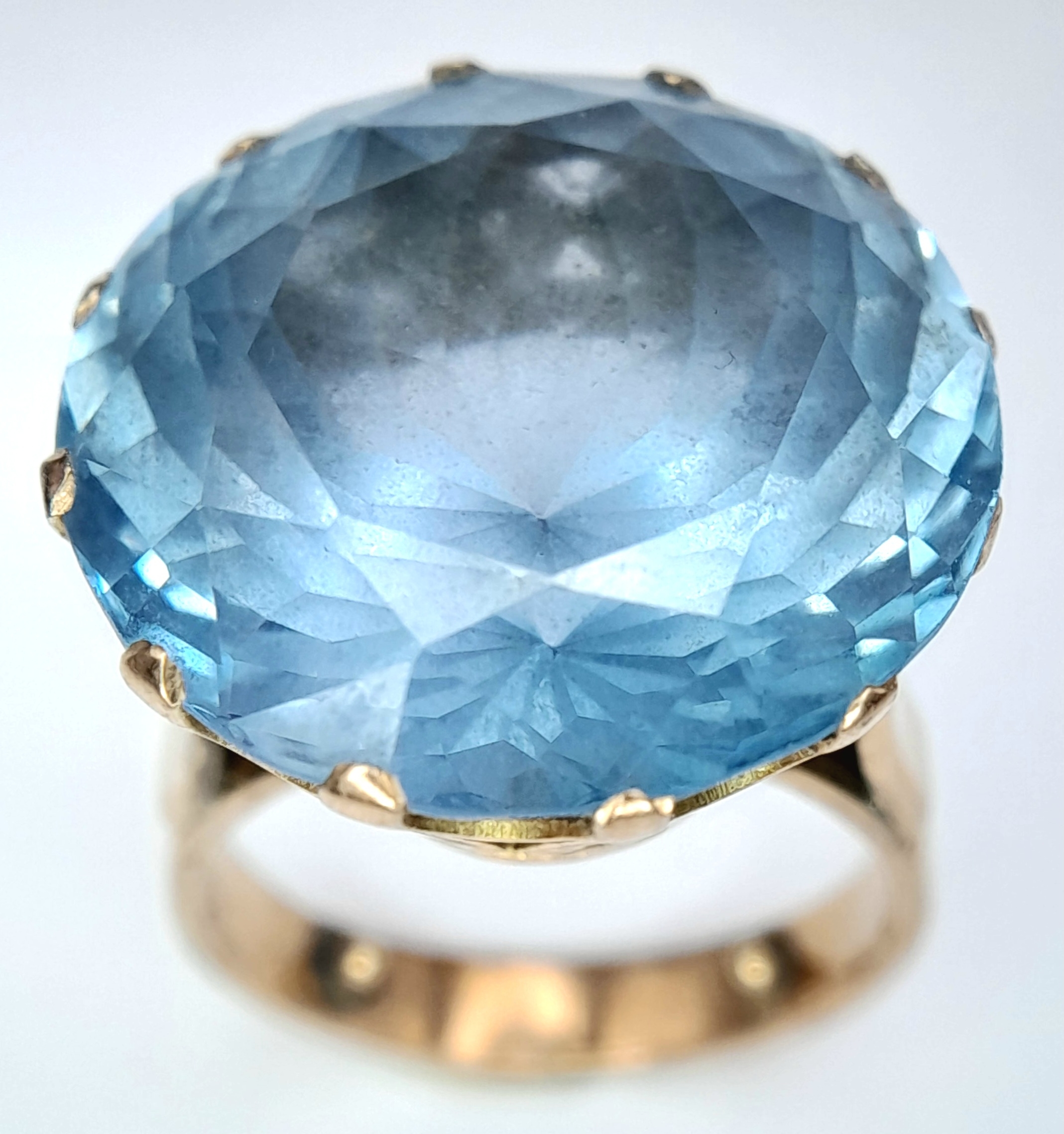 A Gorgeous Vintage 14K Yellow Gold Large Aquamarine Cocktail Ring. A c.25ct beautifully faceted round cut centre stone which catches the light perfectly. 10.1g total weight.