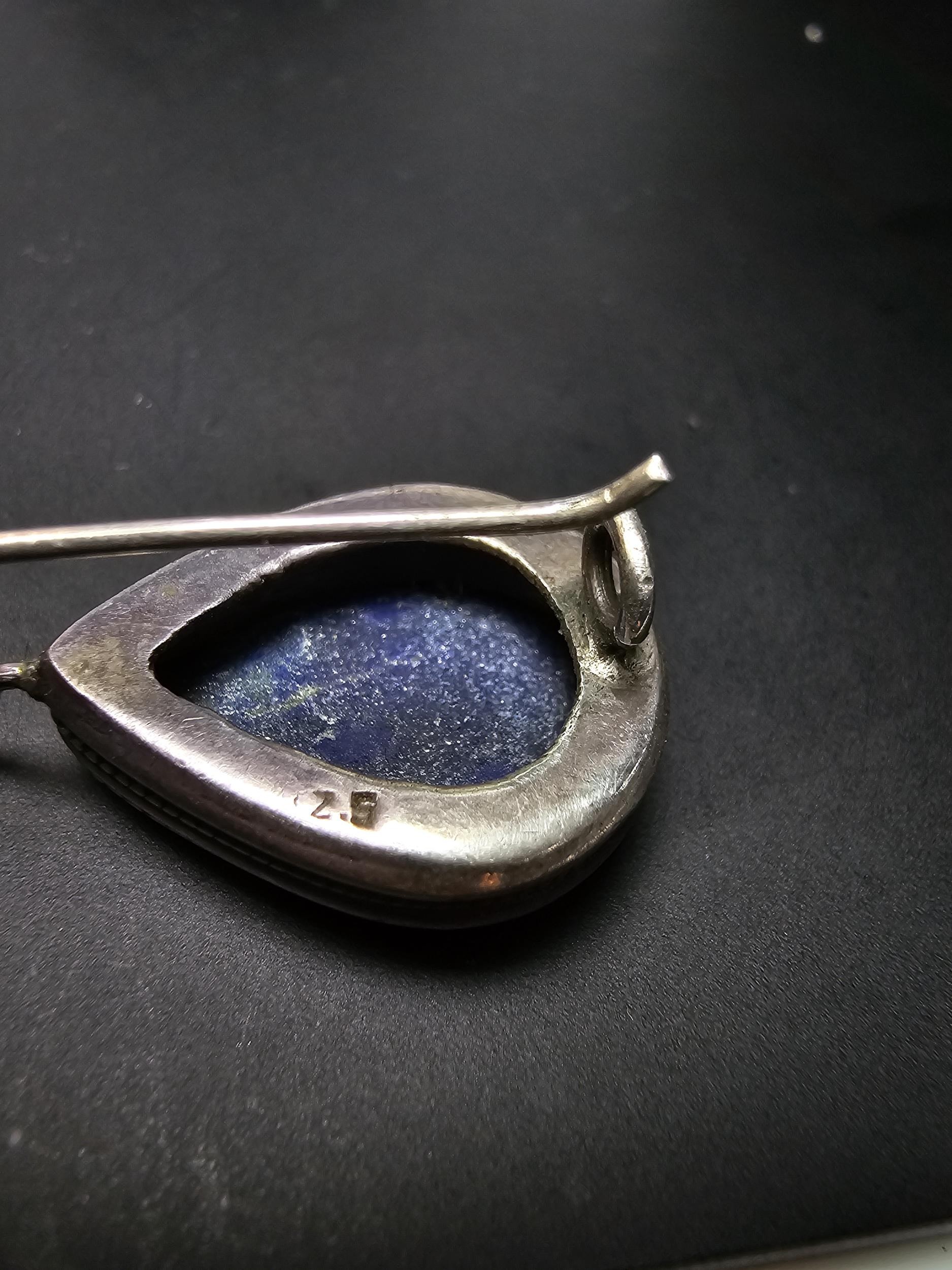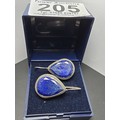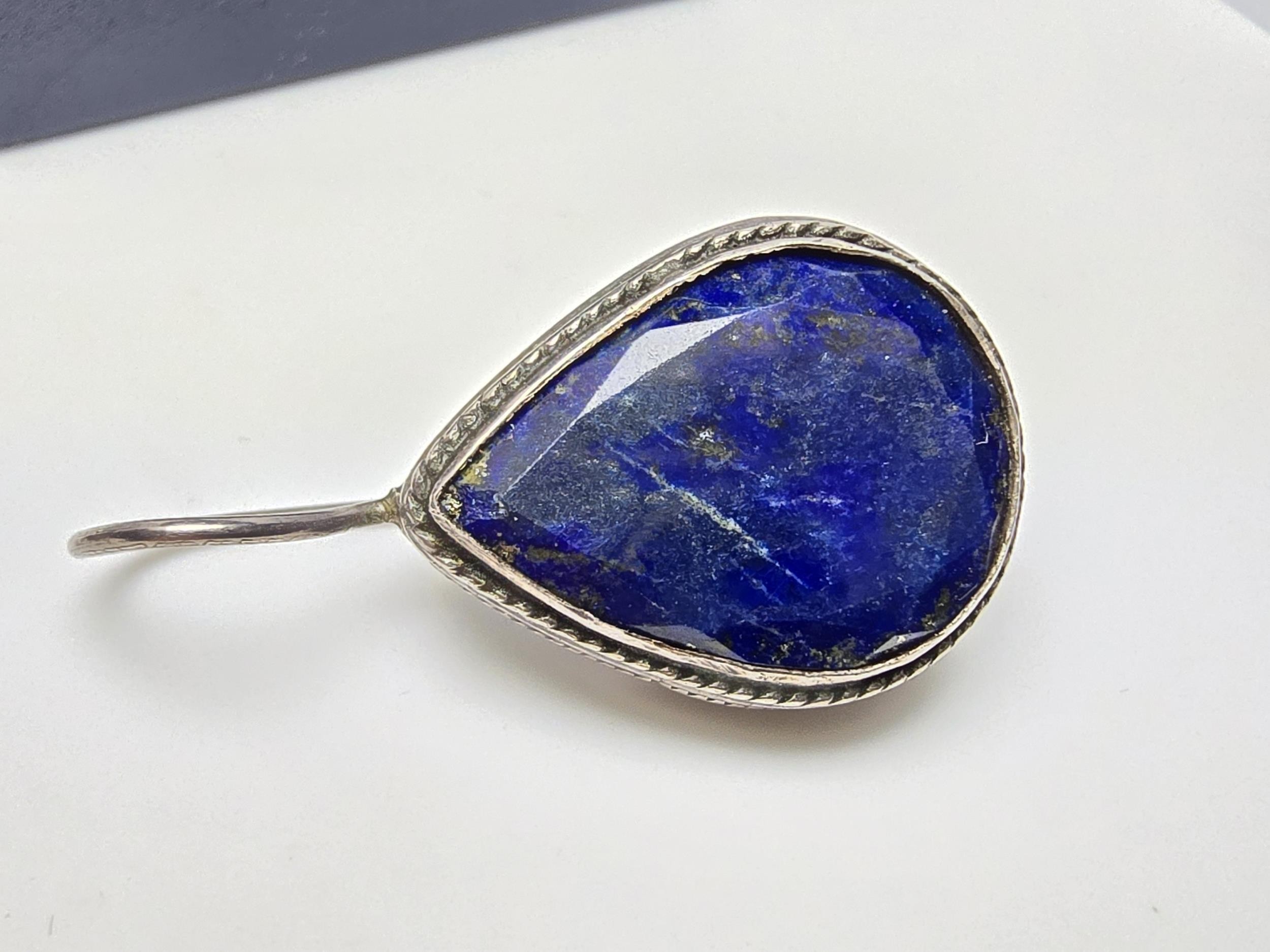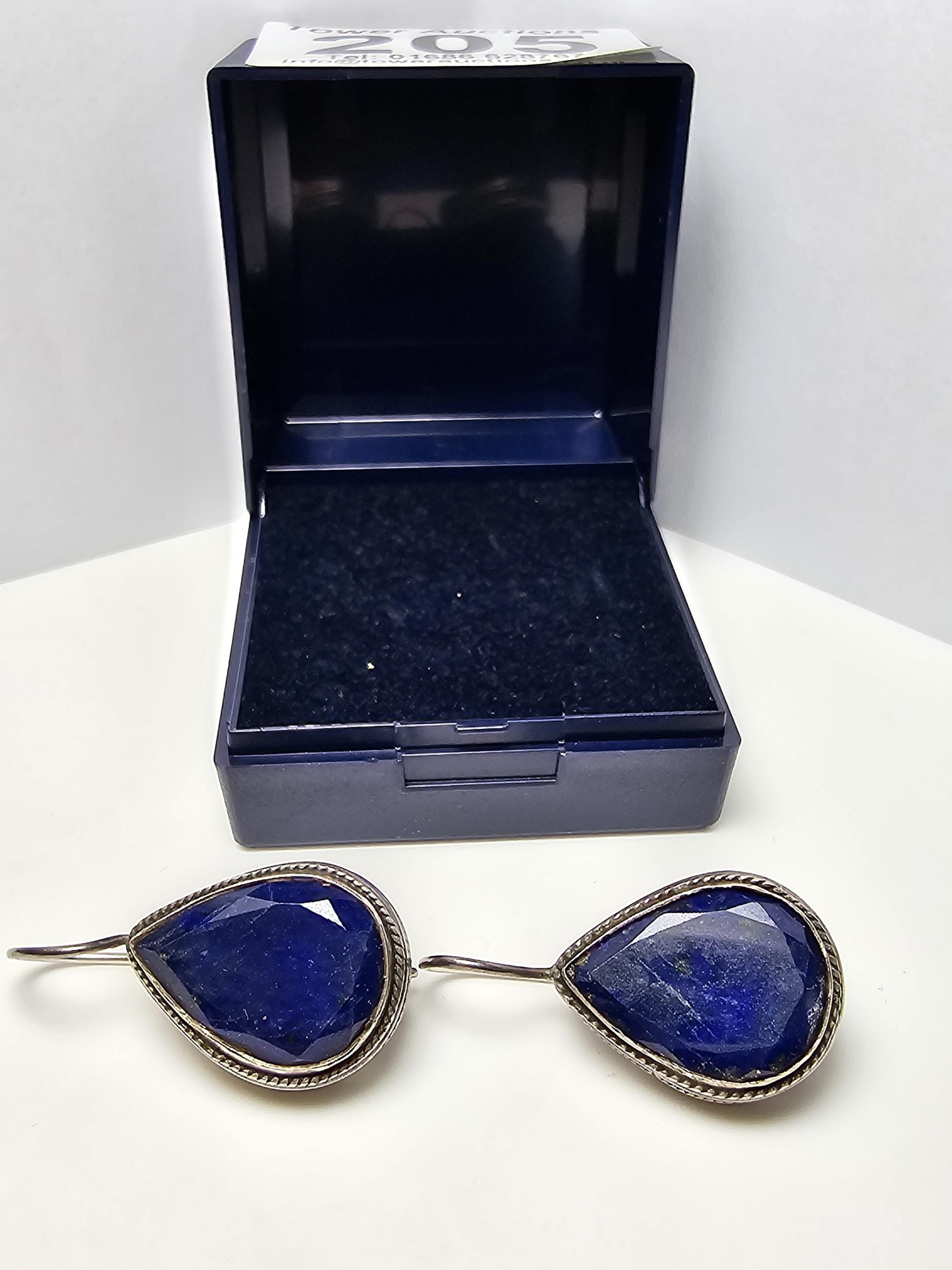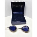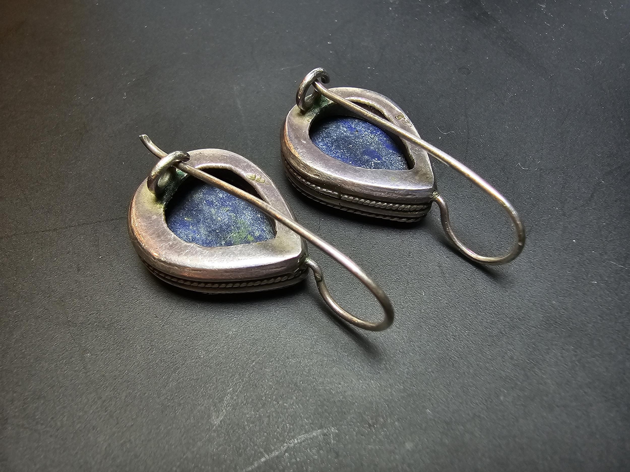 A good large vintage par of sterling silver earrings inset with teardrop shaped faceted lapis lazuli stones presenting a vibrant blue colour with golden specks, in excellent clean condition and boxed. Height of the earrings is 20mm, width of 15mm.