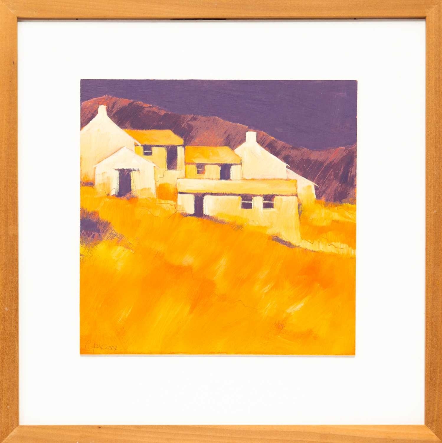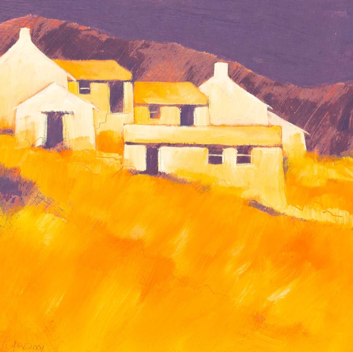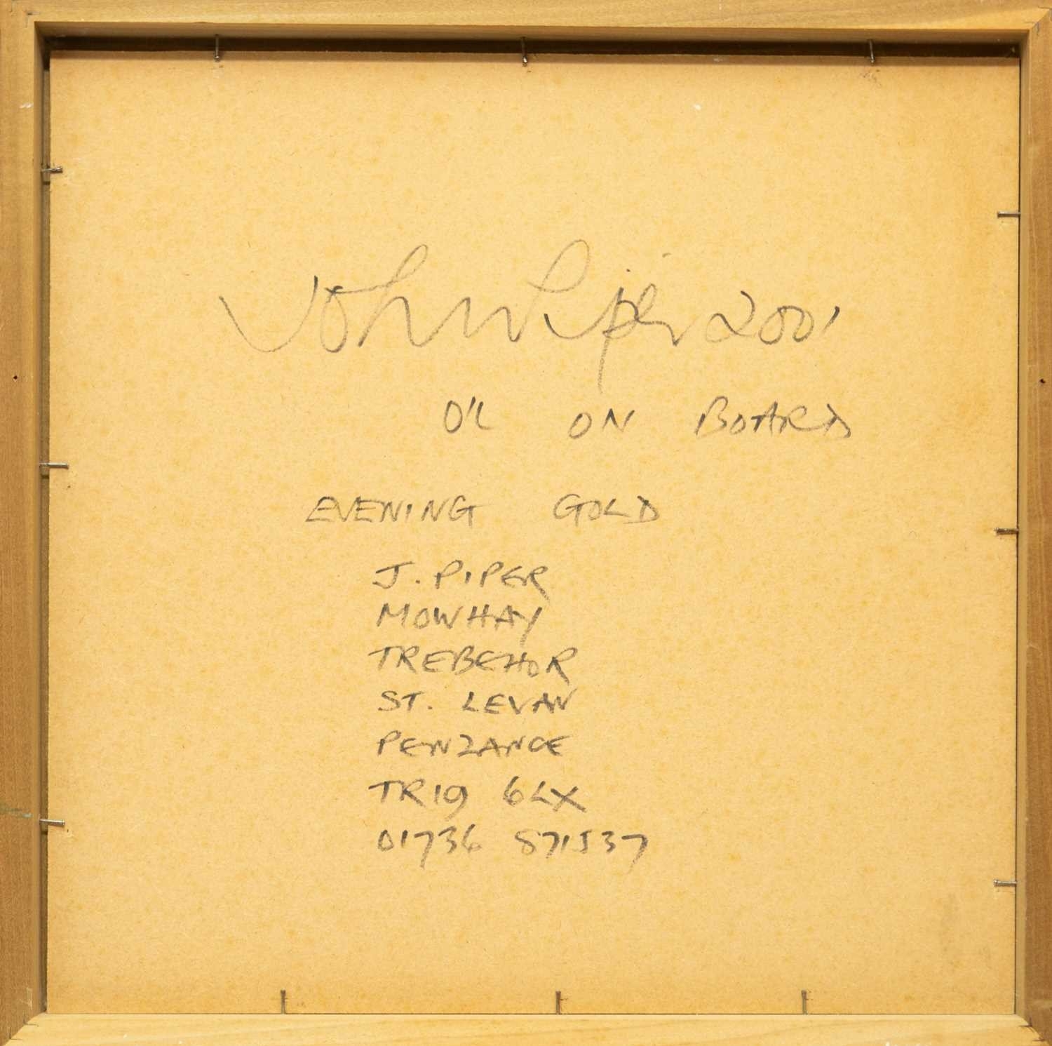 § John S. PIPER (1946) Evening Gold (2001) Oil on board, signed and dated 2001, further signed, inscribed and dated to verso, 30.5 x 30.5cm, 49 x 49cm framed.