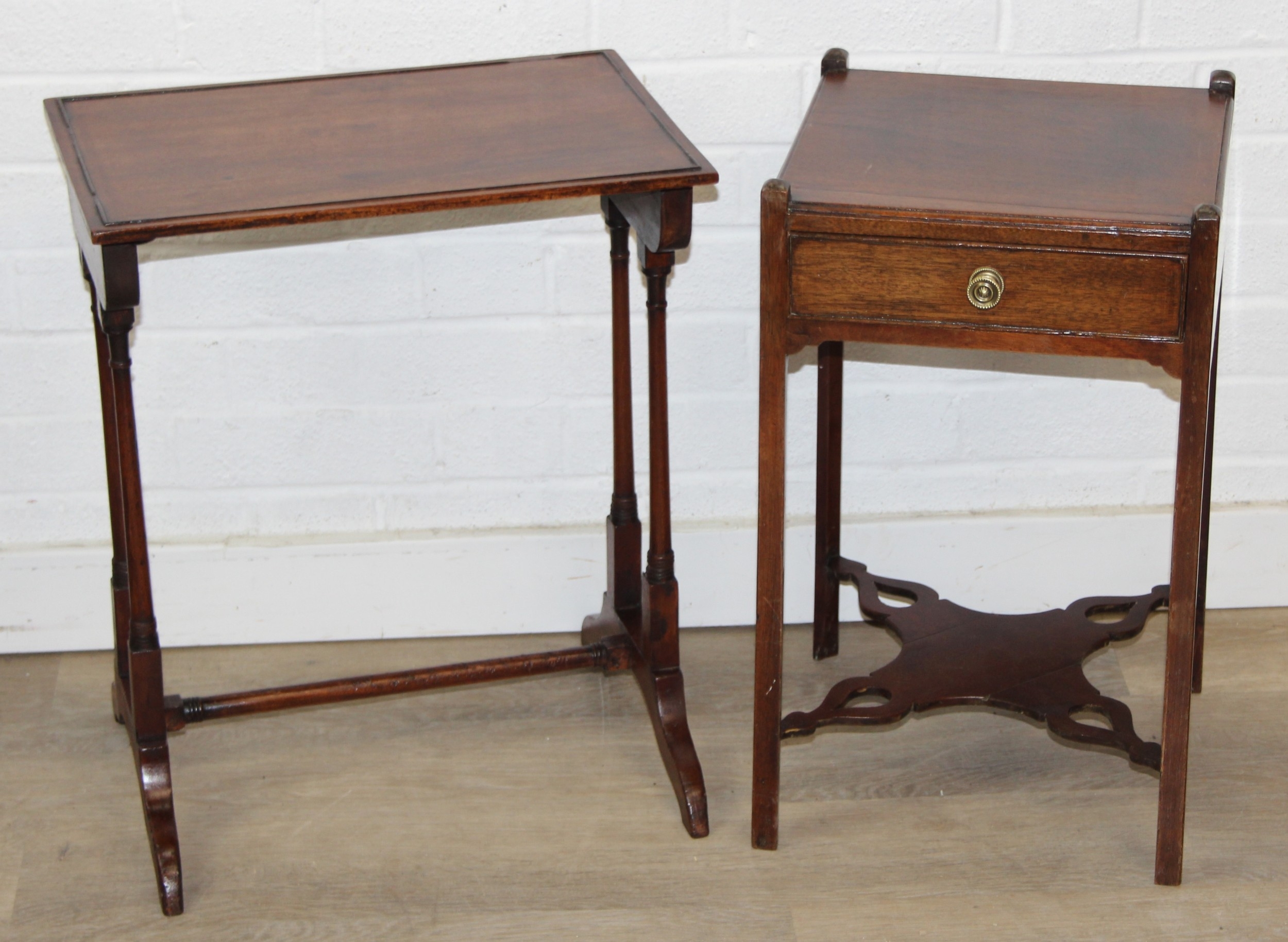 Two antique mahogany side tables, one with drawer, the largest 46cm x 30cm x 55cm [2]