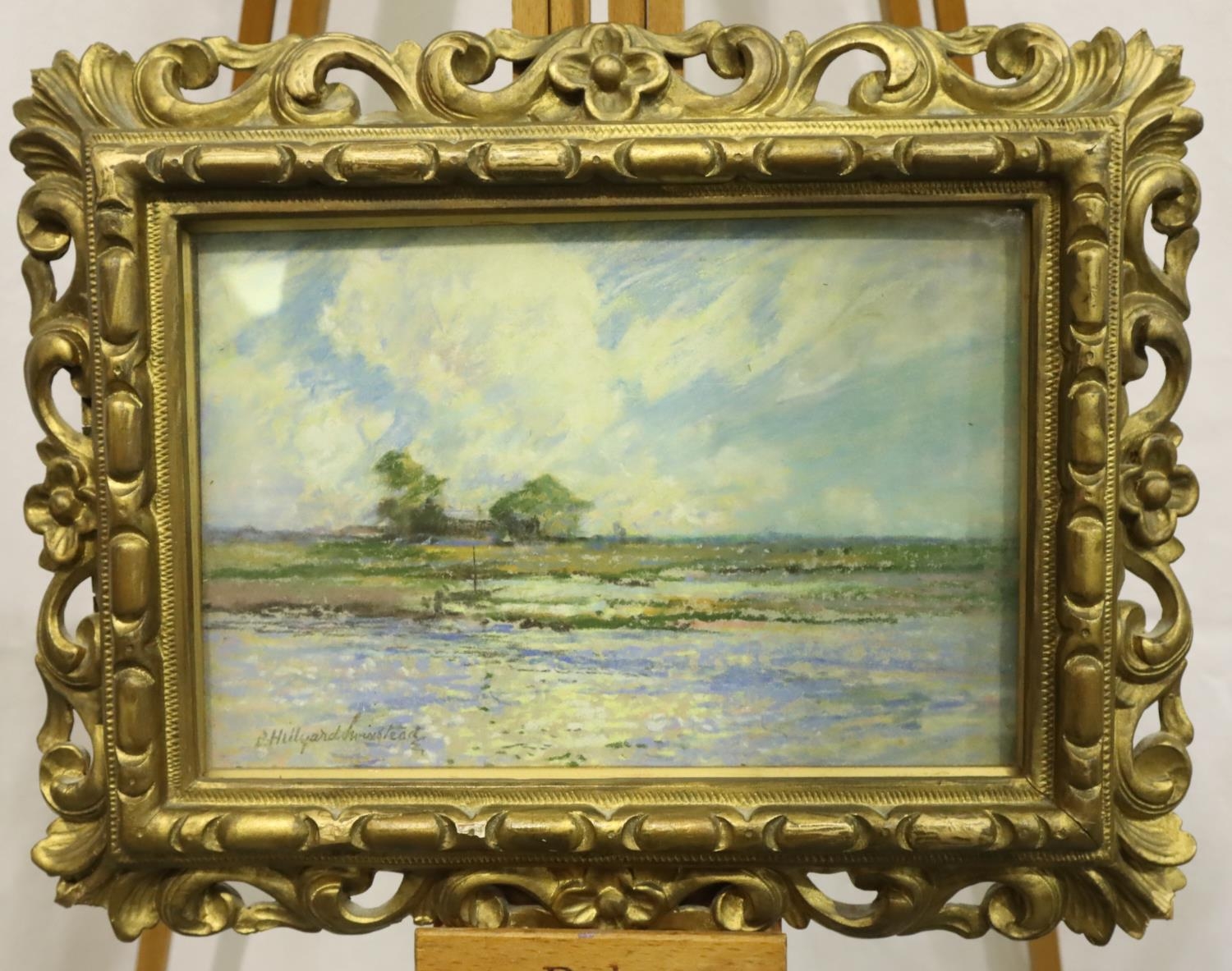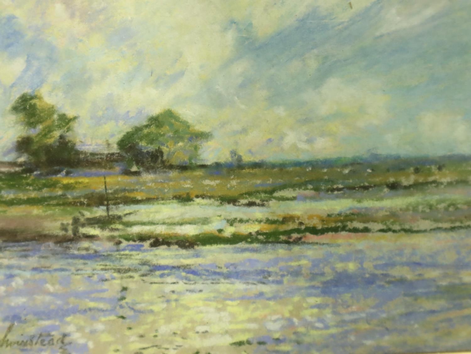 Frank Hillyard Swinstead (1862-1937); pastel on paper, waterside landscape, 16 x 23 cm. Not available for in-house P&P, contact Paul O'Hea at Mailboxes on 01925 659133