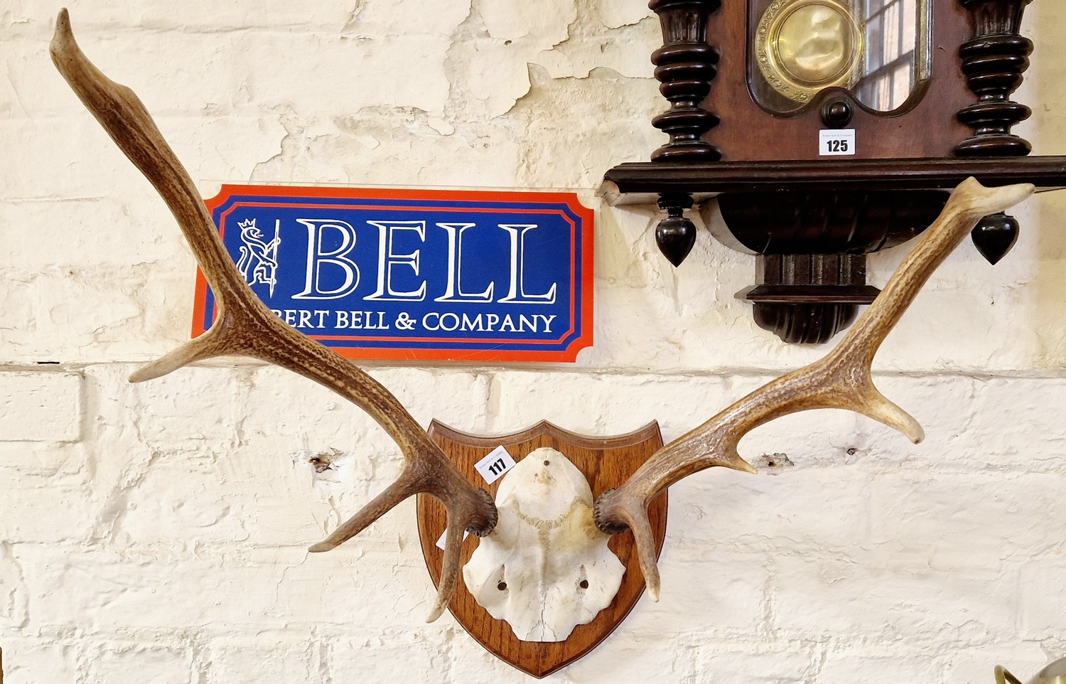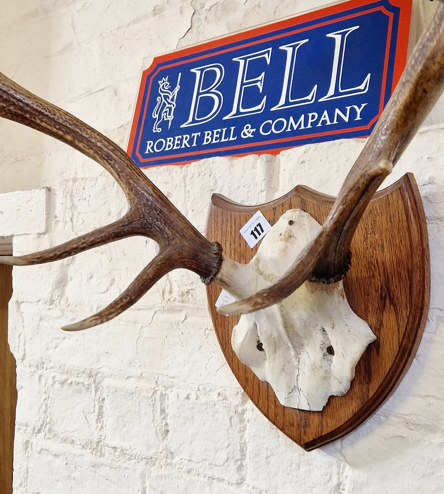 Stag antlers mounted on an oak shield