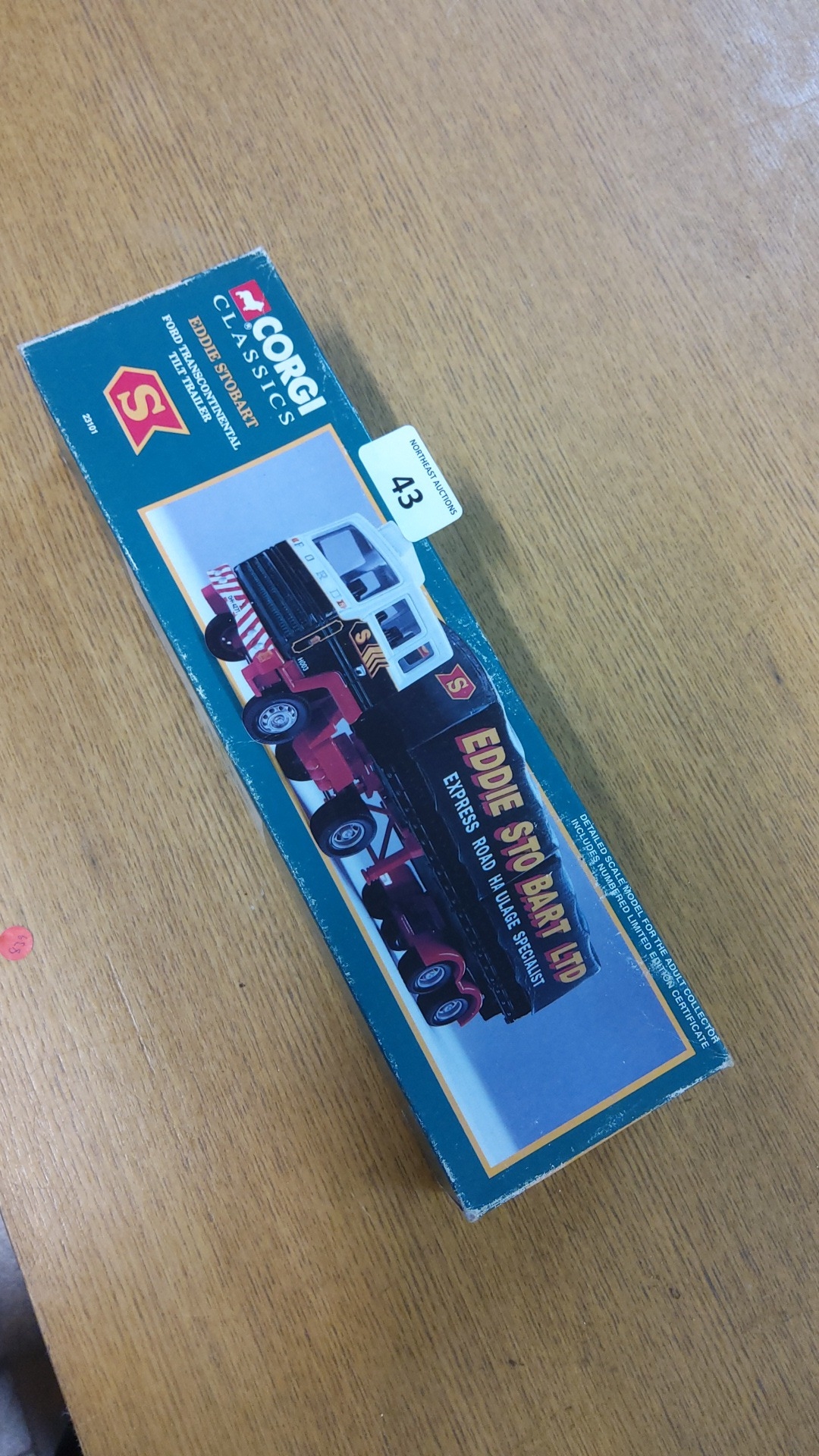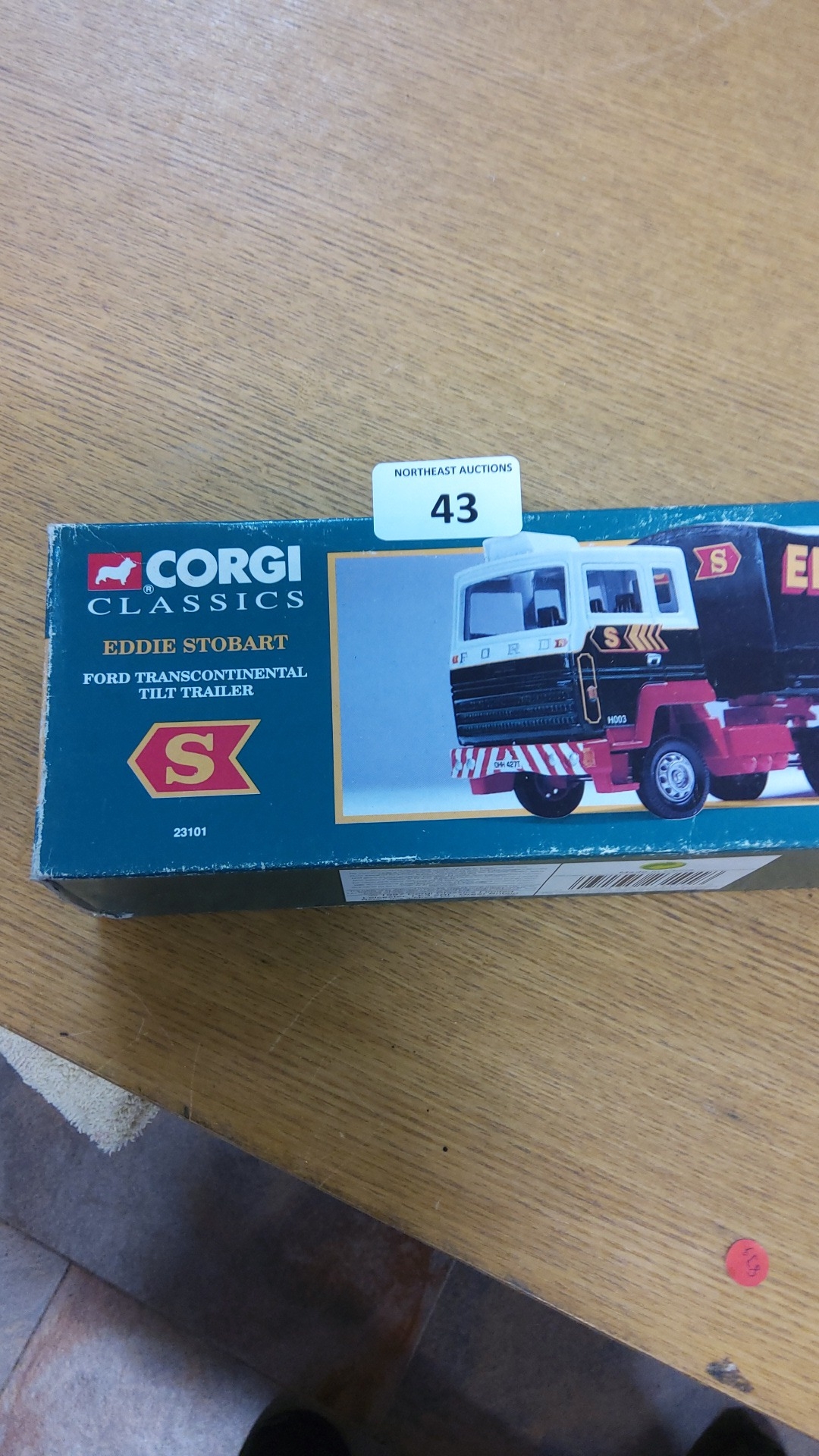 Boxed Corgi Classics die-cast model no. 23101, “Eddie Stobart” Ford Transcontinental tilt-trailer articulated lorry.