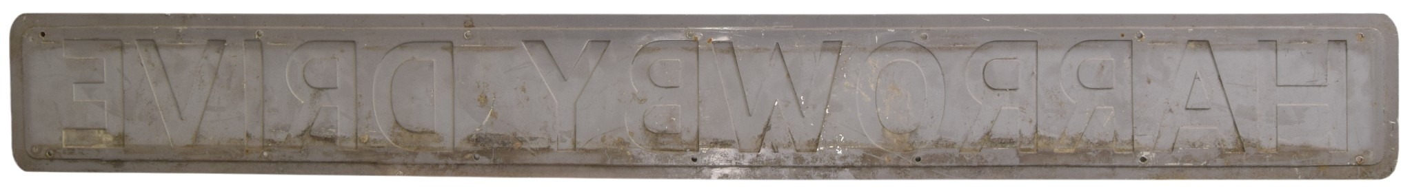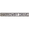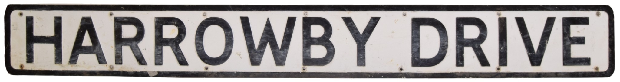 Road sign, HARROWBY DRIVE, pressed alloy, good condition. 51 x 6 inches. Shipping band - D
