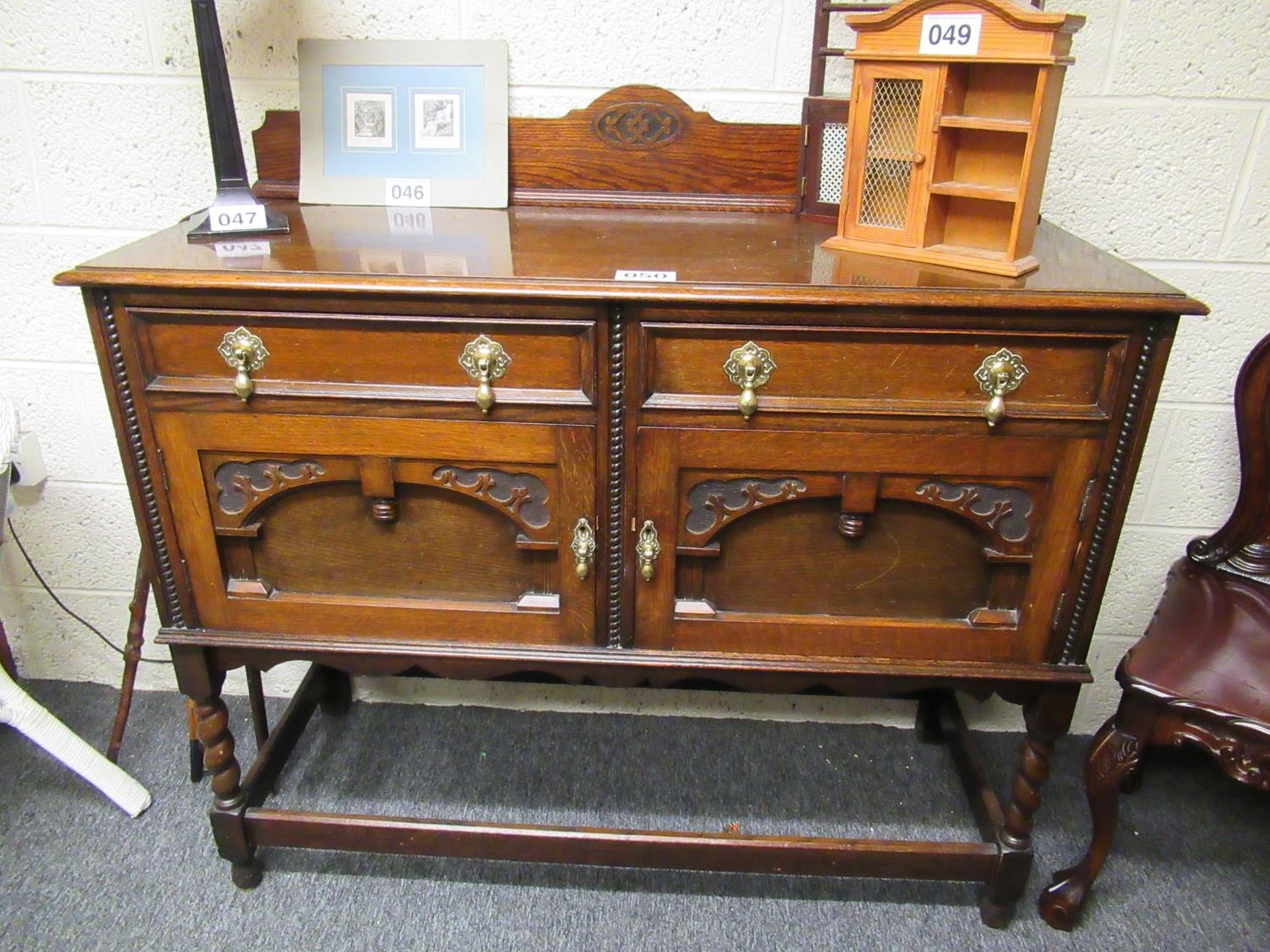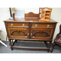 Neat size Mahogany sideboard with 2 drawers and 2 cupboard doors on spindle legs. H:113cm, L122cm, D:48cm.