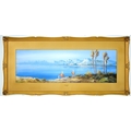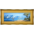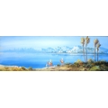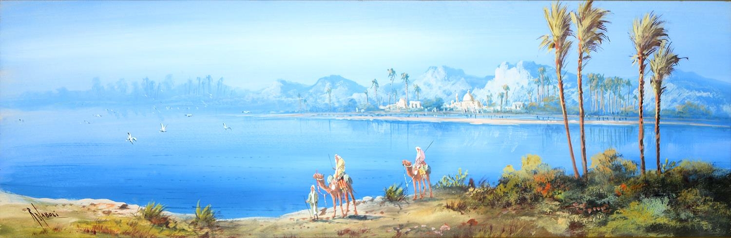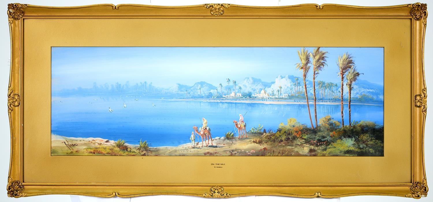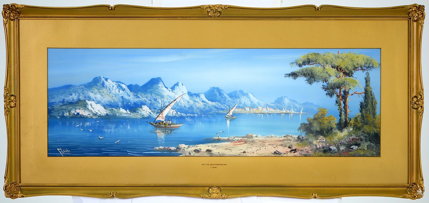 R Naboli, (fl early 20th century) - On the Nile, signed, gouache, 24 x 75cm and F Leoni - On the Mediterranean, signed gouache, 24 x 75cm, as a pair (2)