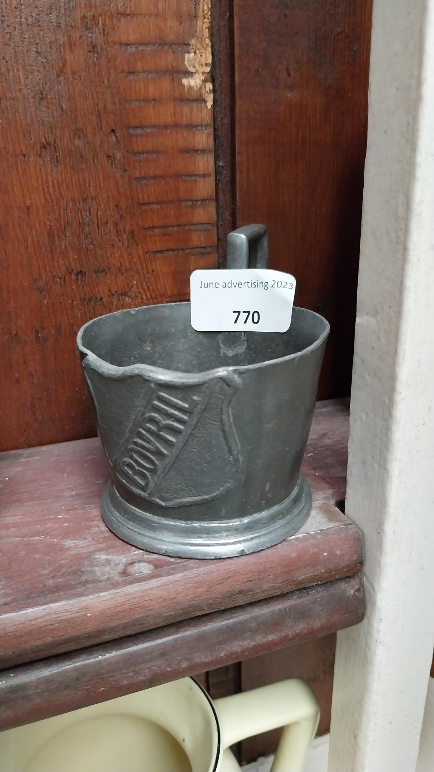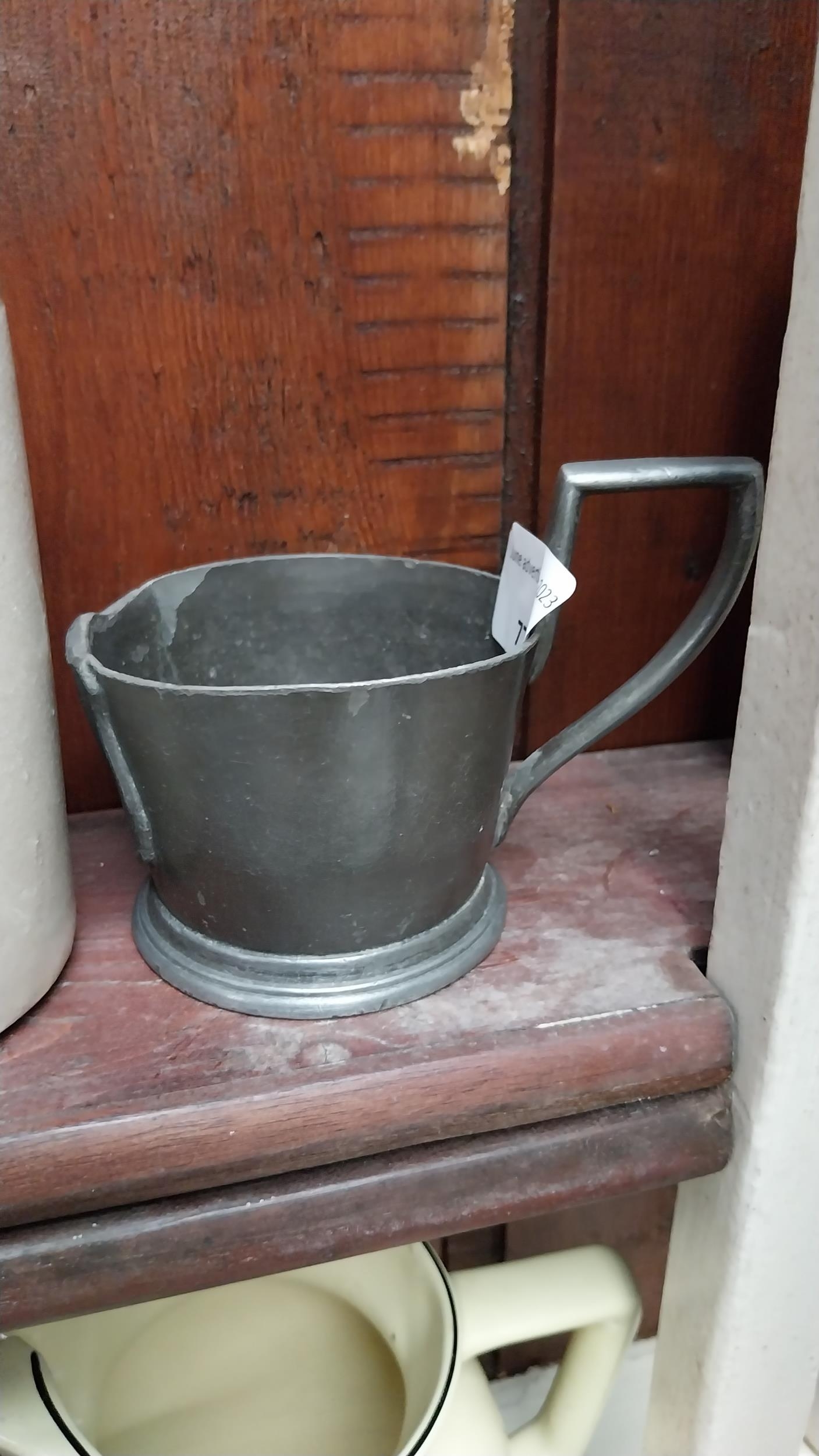 19th C. pewter measure. {6 cm H x 11 cm W x 7 cm D}.