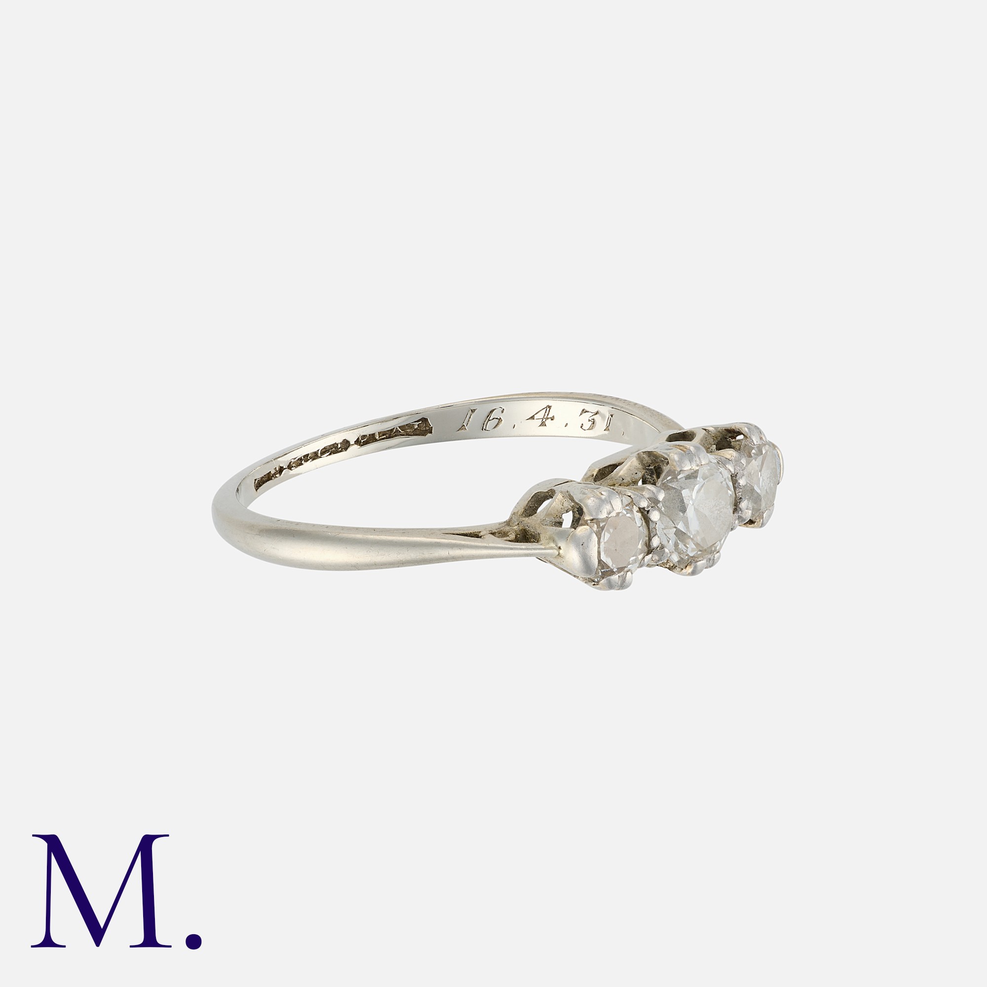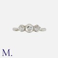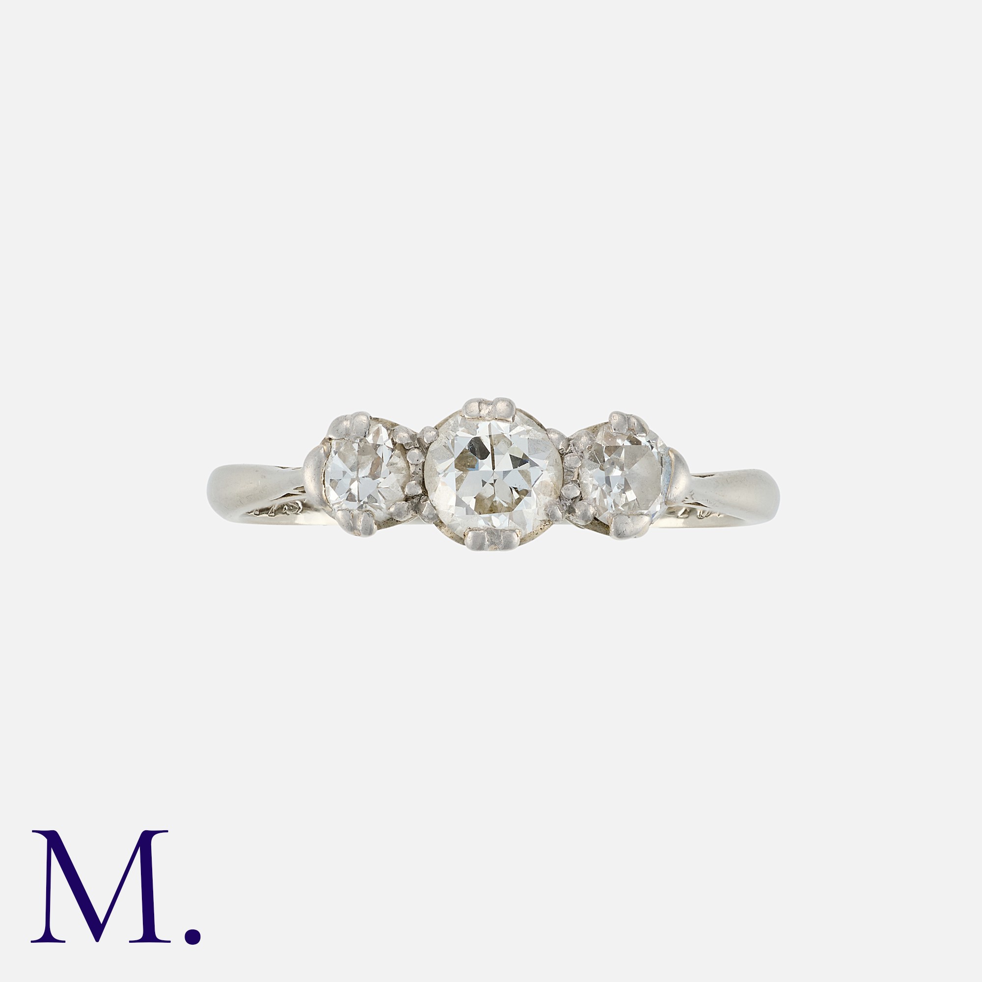 A Diamond Three Stone Ring in 18 carat gold and platinum, set with three round cut diamonds totalling approximately 0.50 carats. Marked indistinctly 18ct PLAT.
