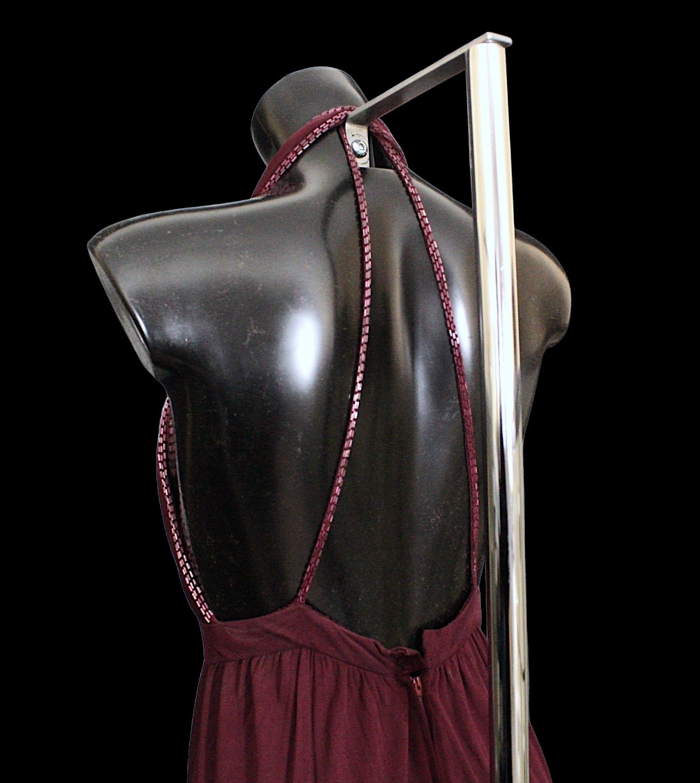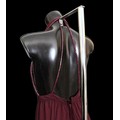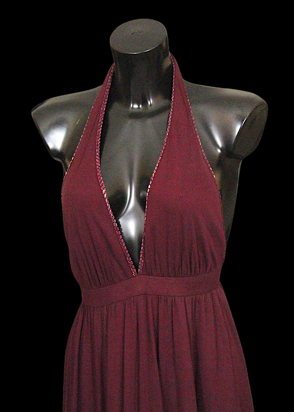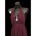 Condition: Burgundy dress - staining and marks to bodice, synthetic fabric.