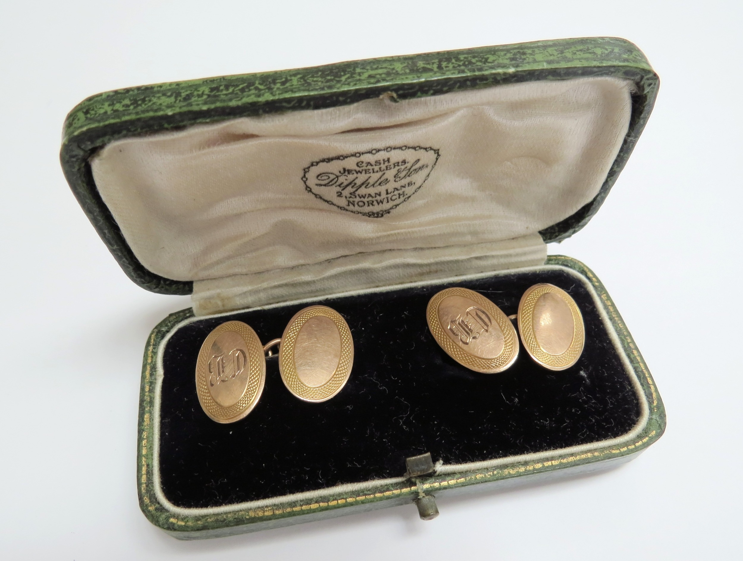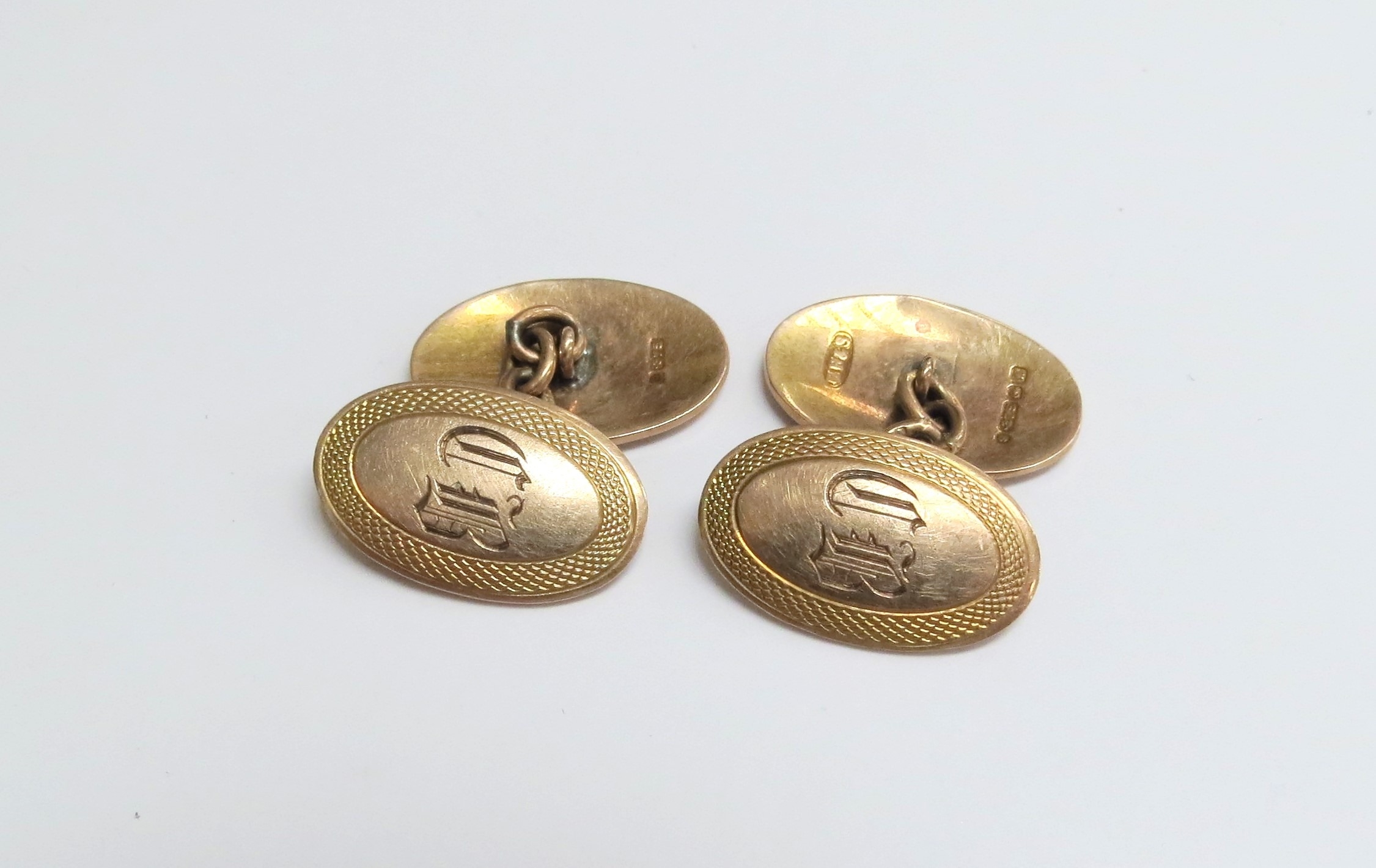 A pair of 9ct gold cufflink's, yellow and rose gold, monogrammed, 5.8g