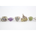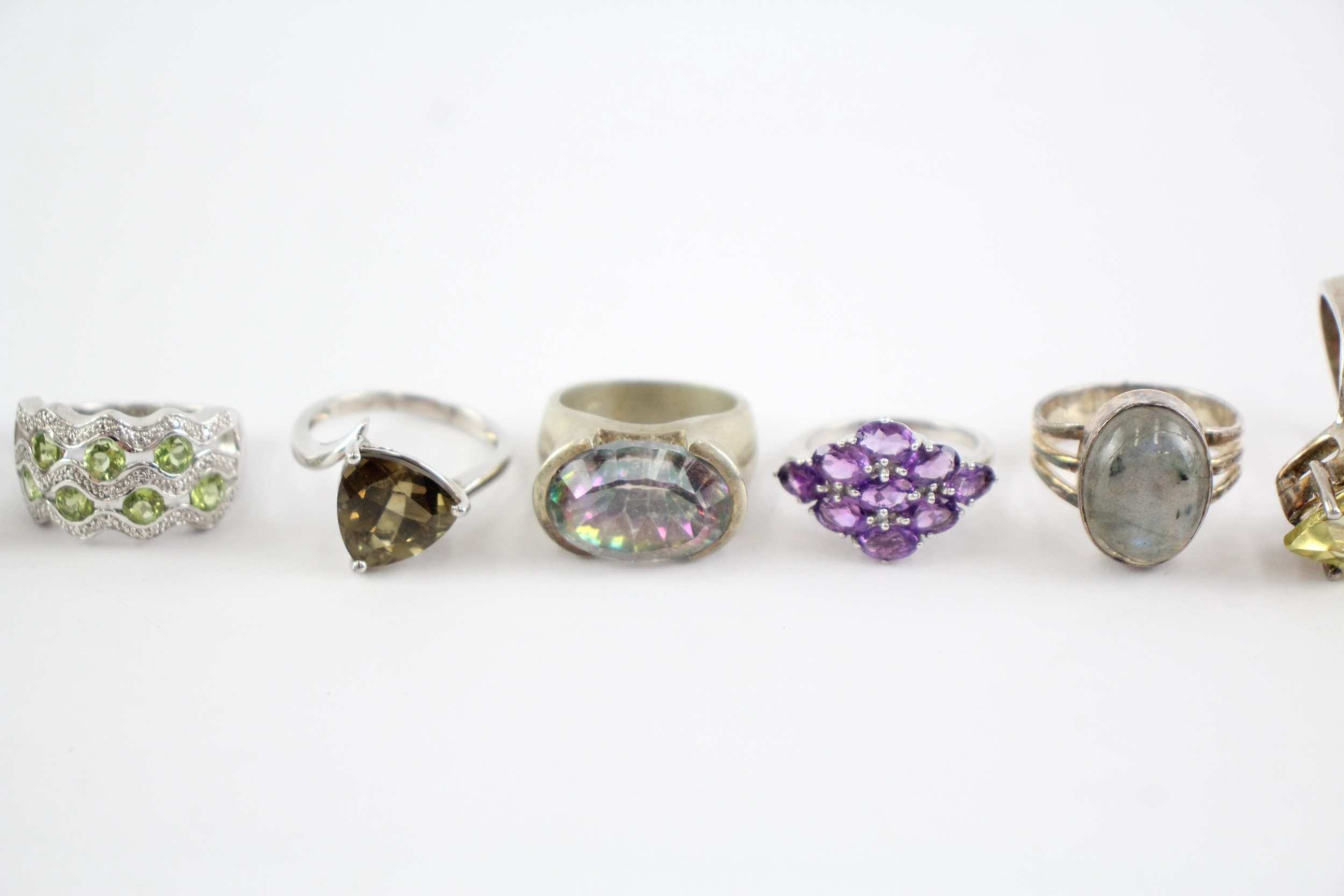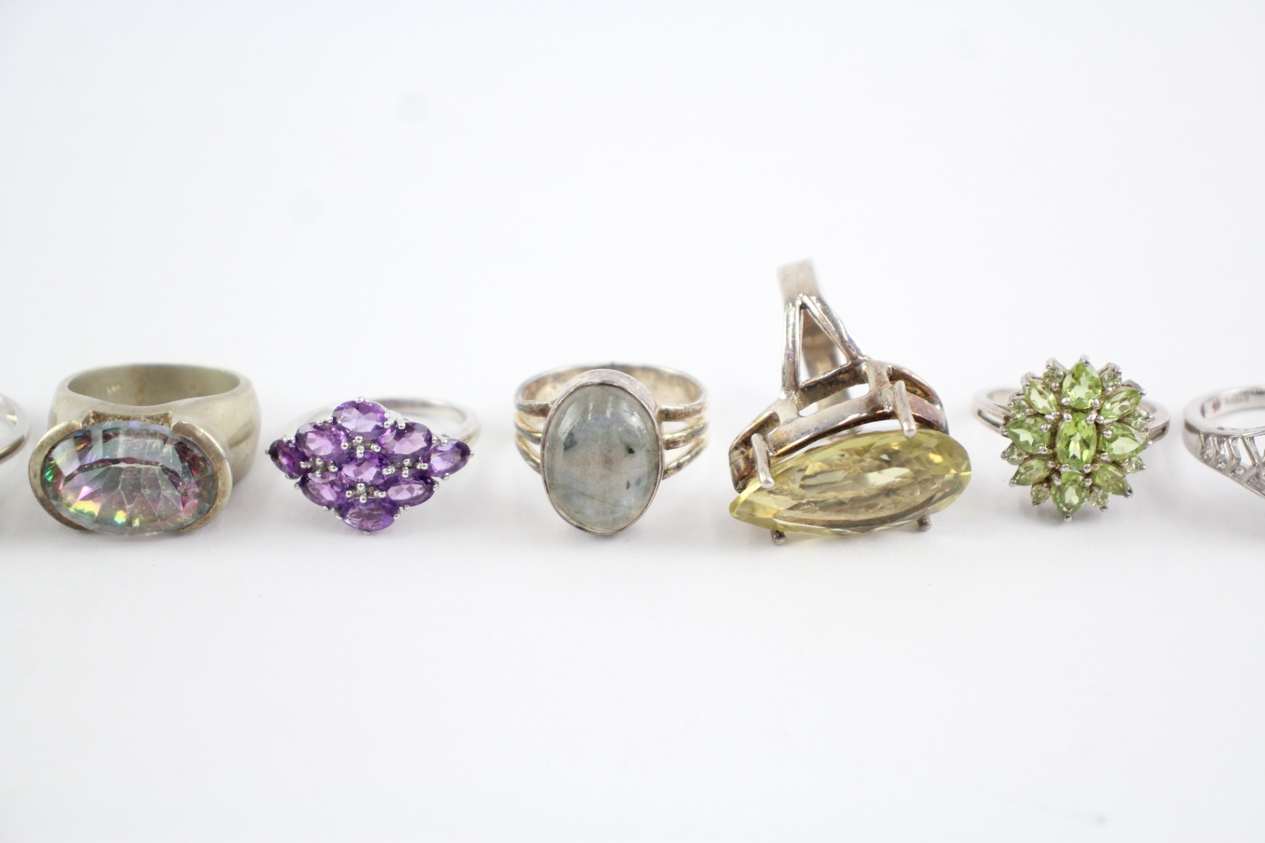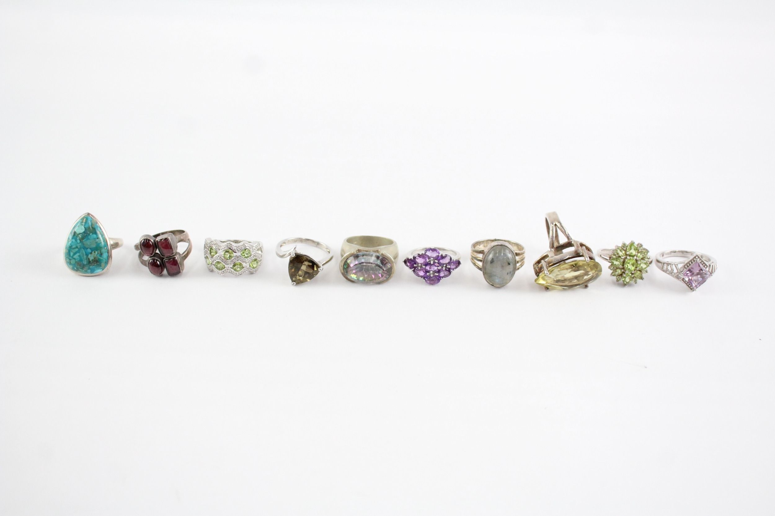 Collection of Sterling Silver Gemstone Rings, inc. Garnet, Labradorite x 10 (68g)