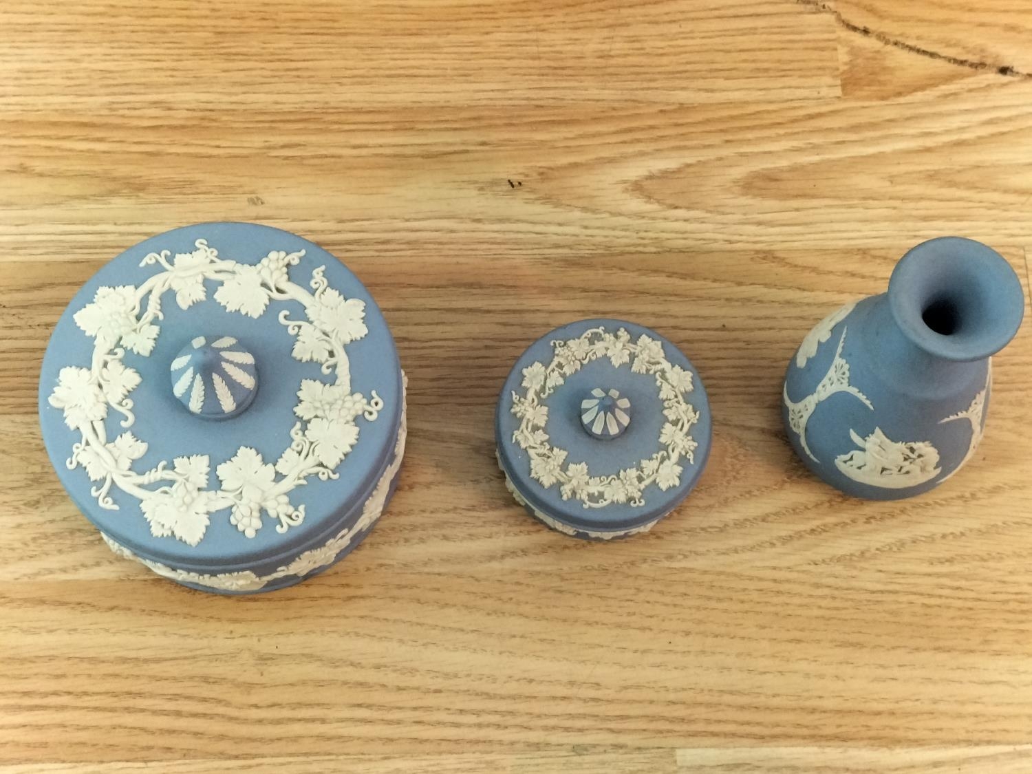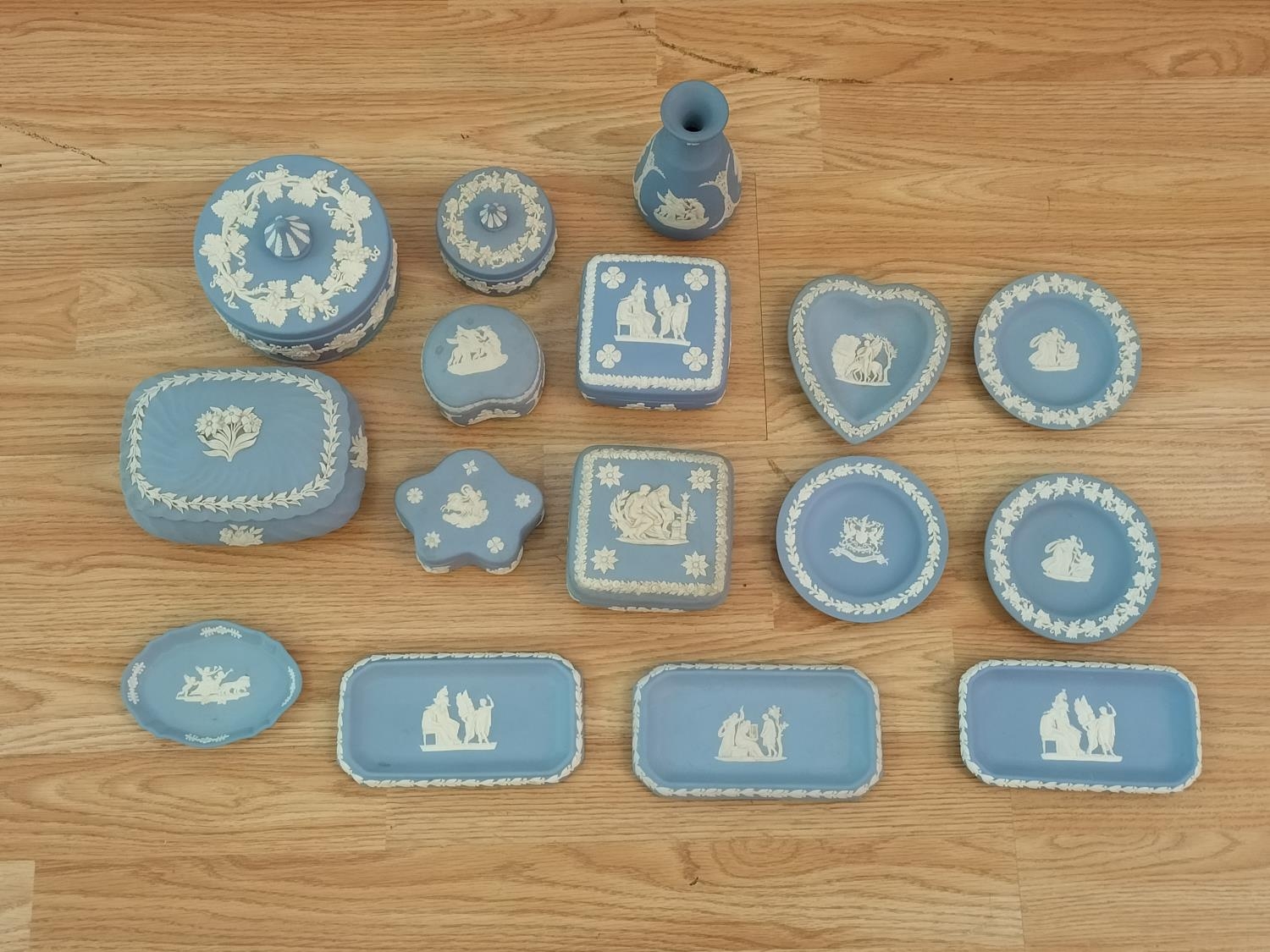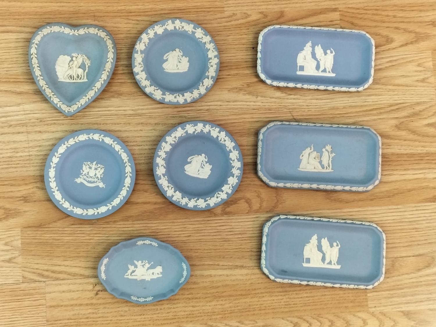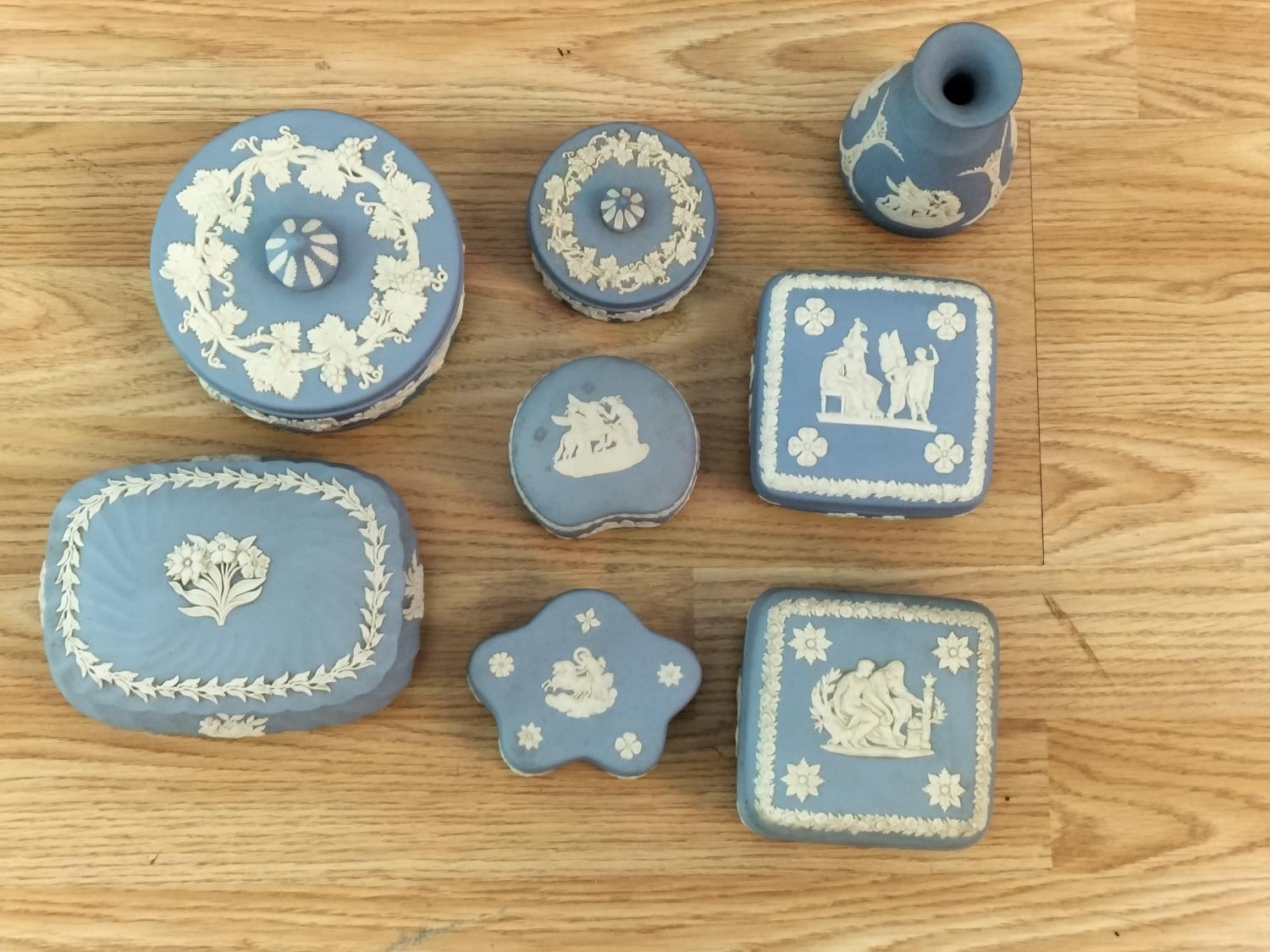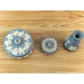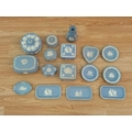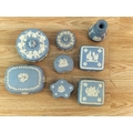 Collection of Wedgwood Blue and White Jasperware. Tallest 12.5cm.