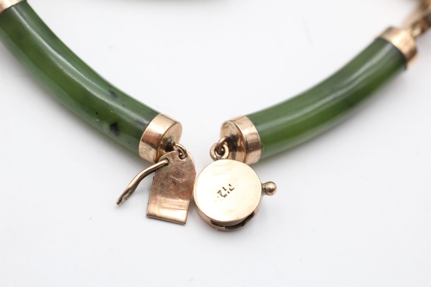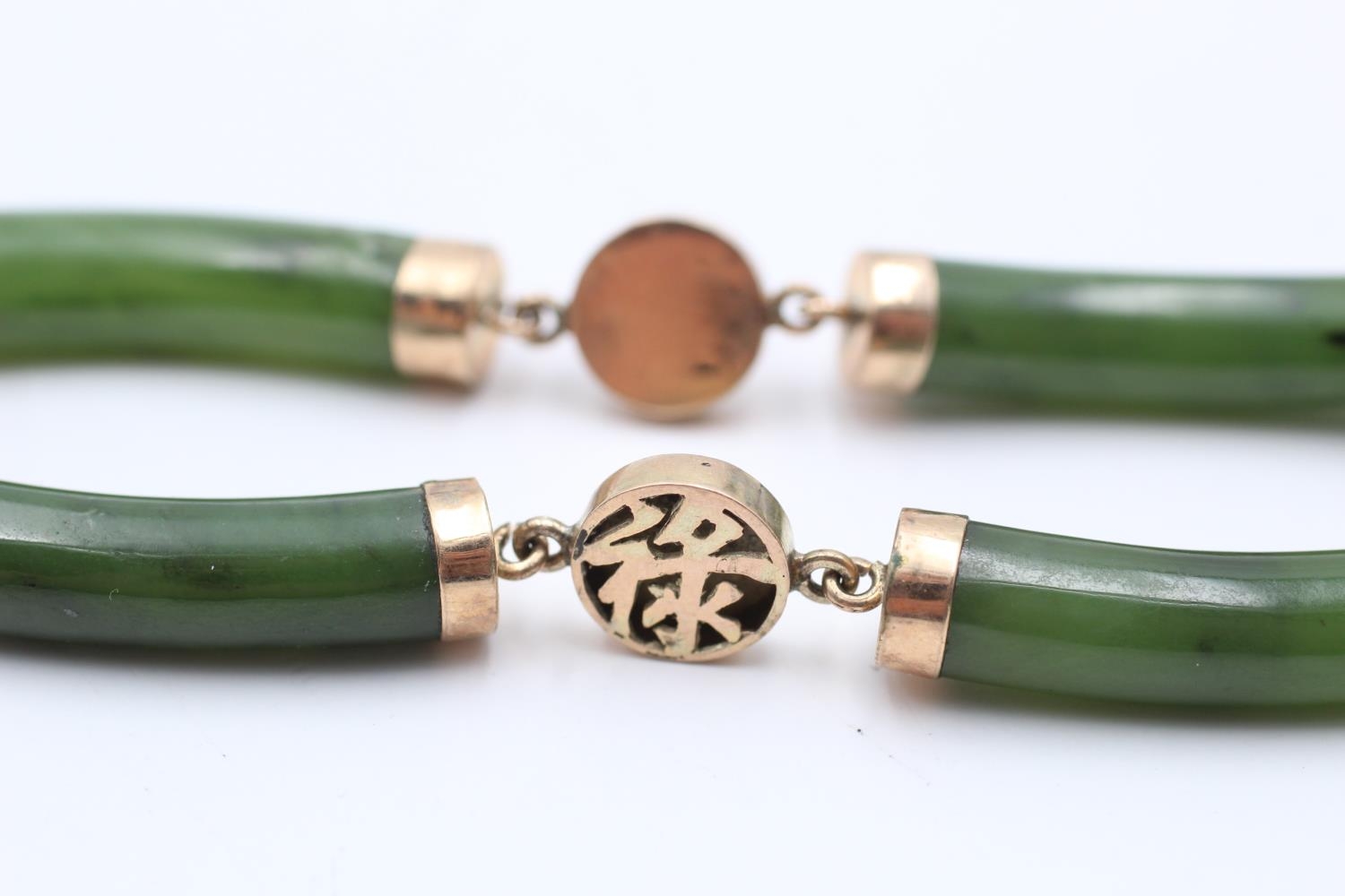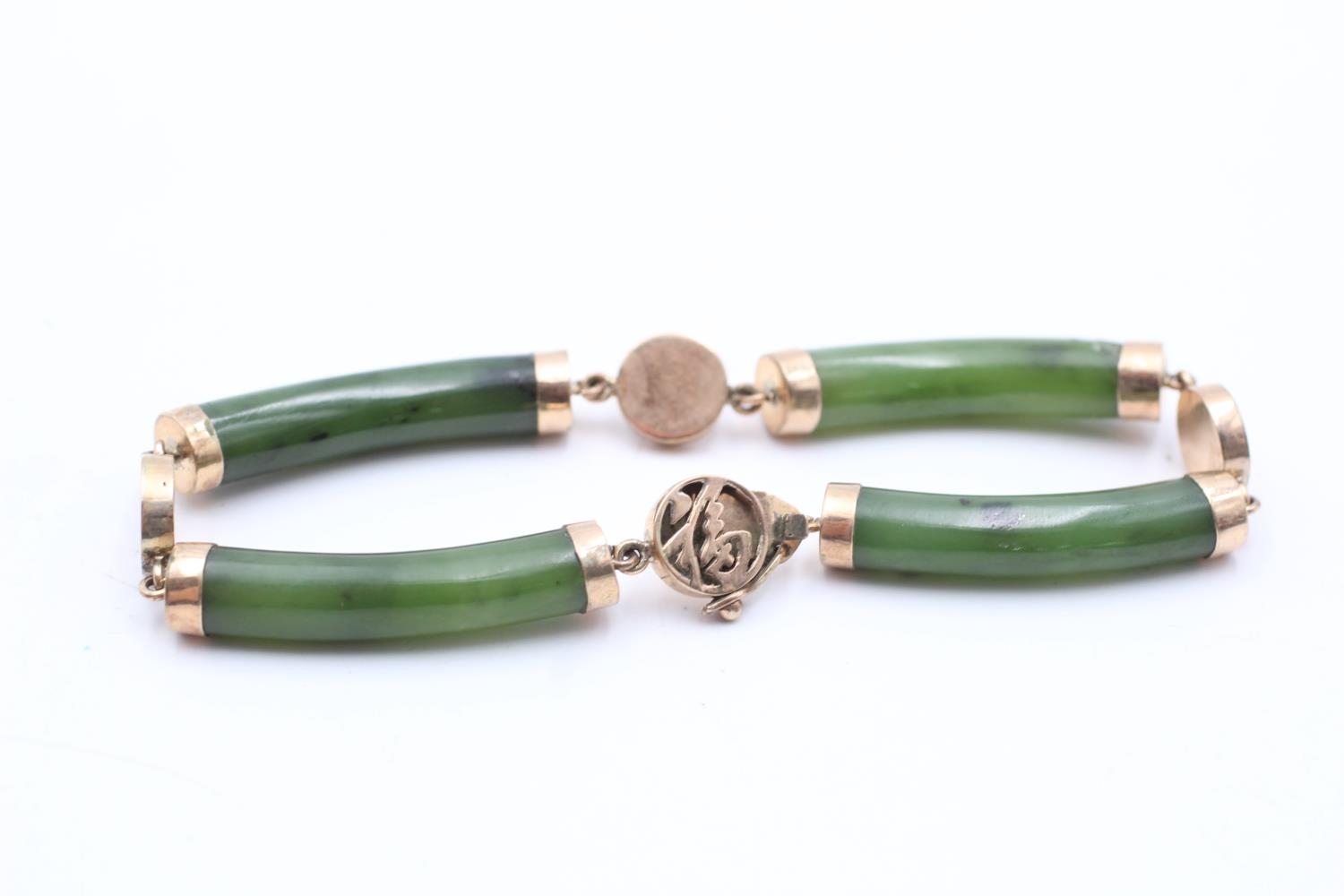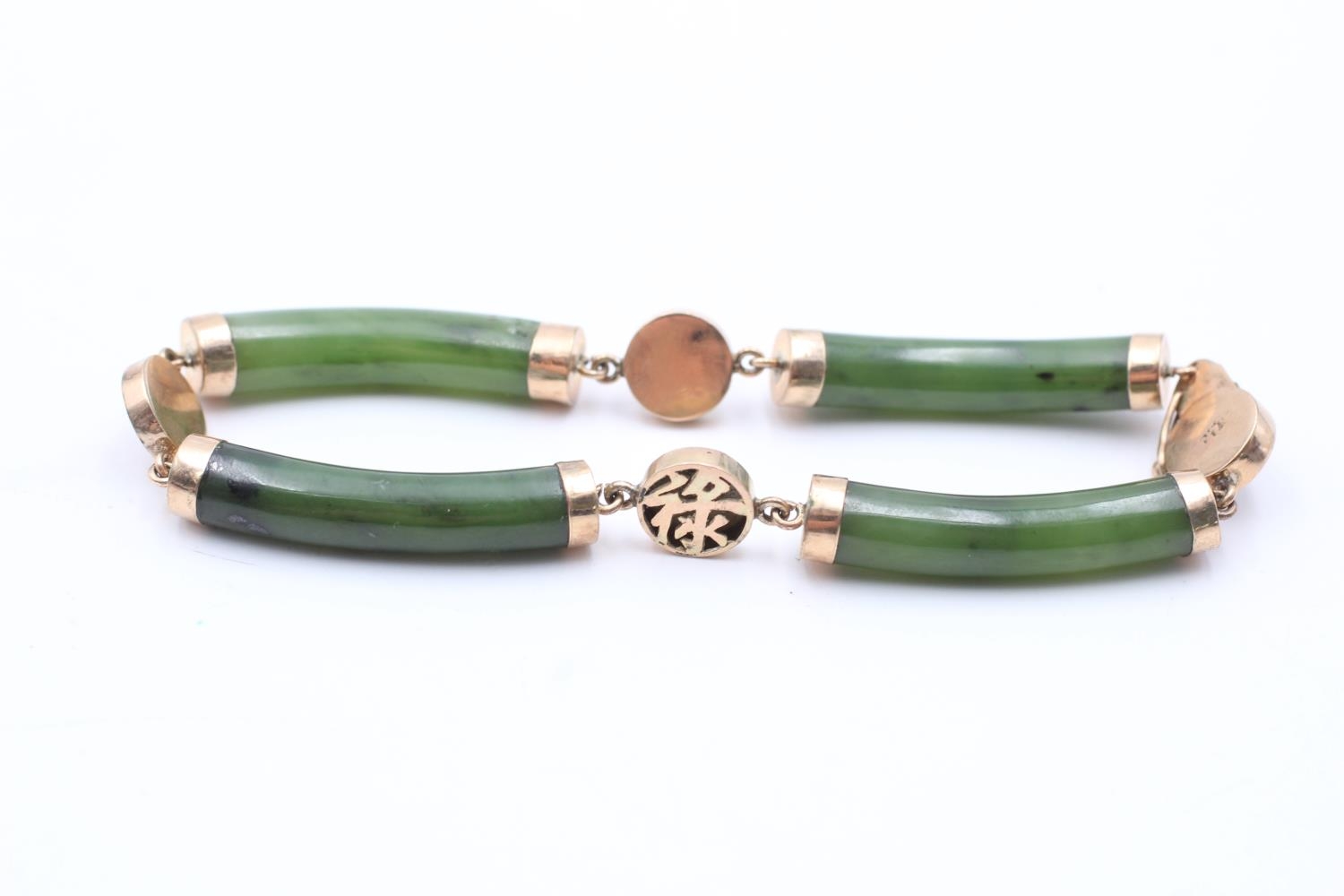 14ct gold vintage nephrite jade oriental panel bracelet (15.9g)