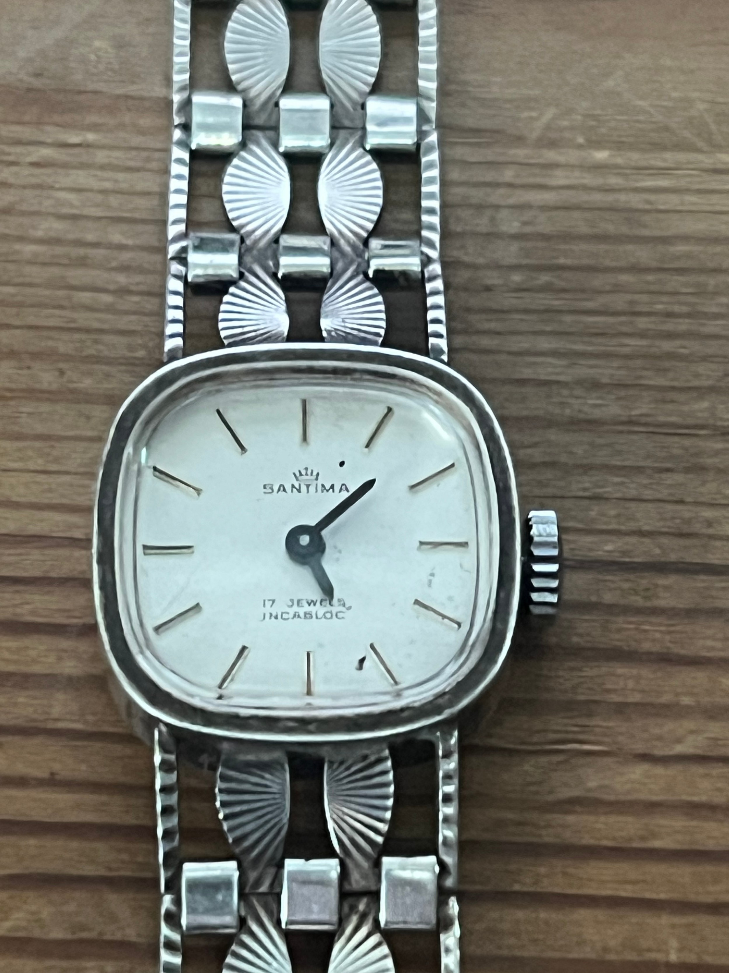 santime solid silver hallmarked ladies watch.