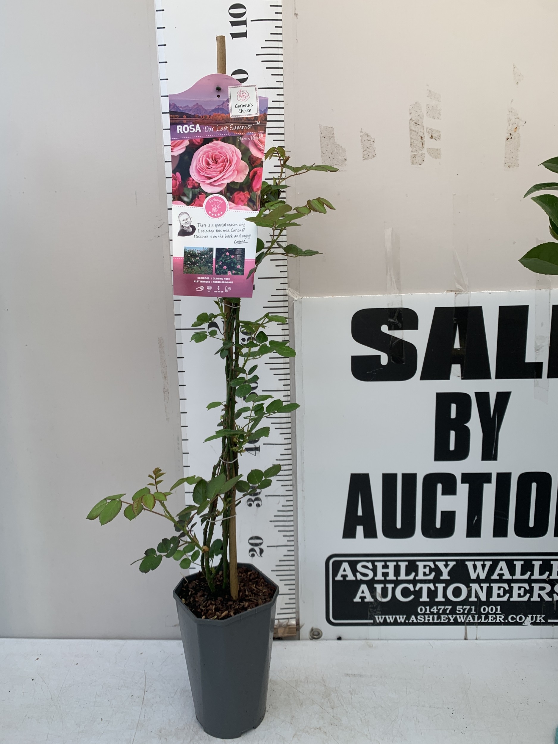 ONE PINK ROSE EXCLUSIVE CLIMBING VARIETY - 'OUR LAST SUMMER' IN A 3 LTR POTS. APPROX 80CM TALL.