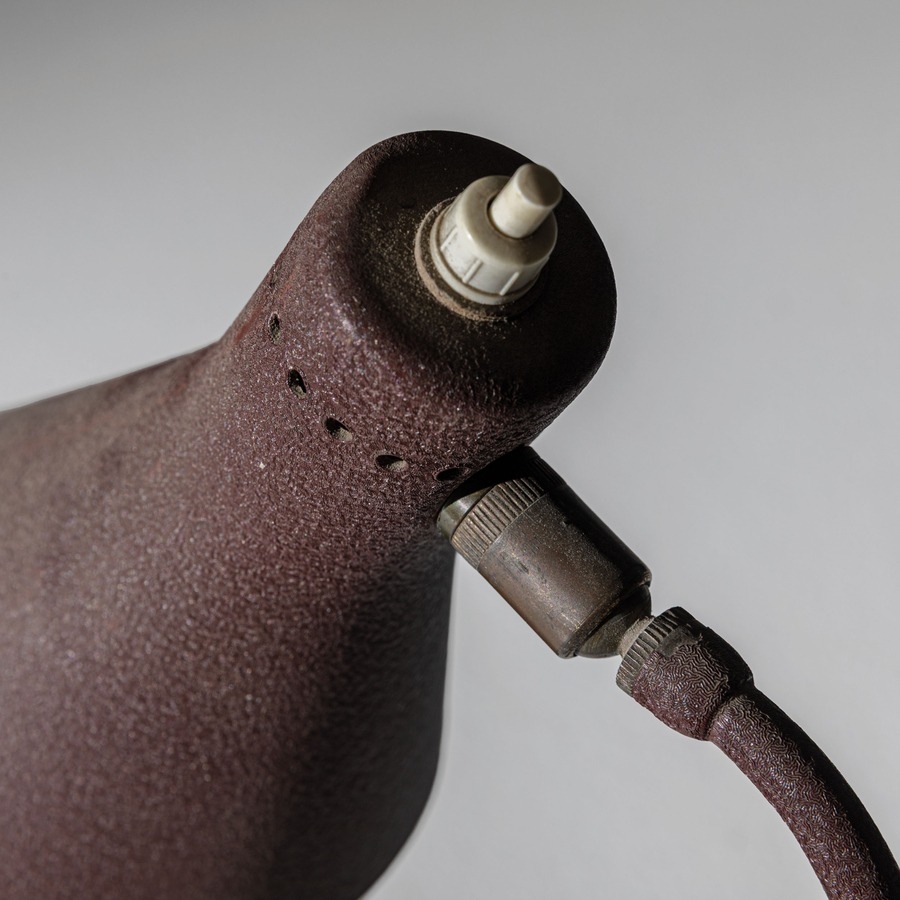Buone condizioni generali. Rghe, graffi, normali segni di usura. Ottone in patina. Lieve ossidazione. Piccole mancanze alle vernice. Assenza di impianto elettrico. Aloni e tracce di sporco.