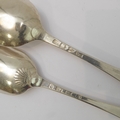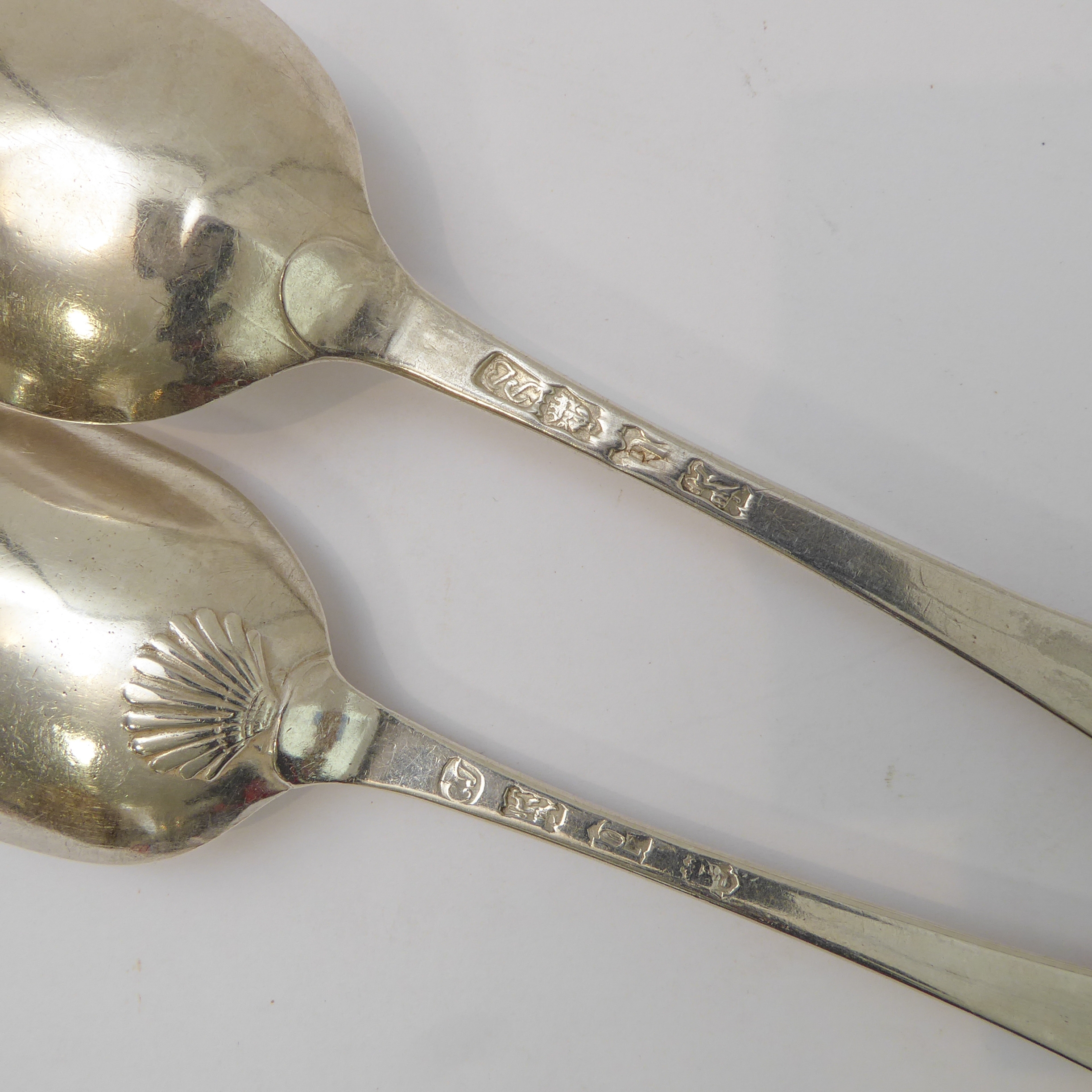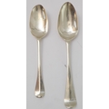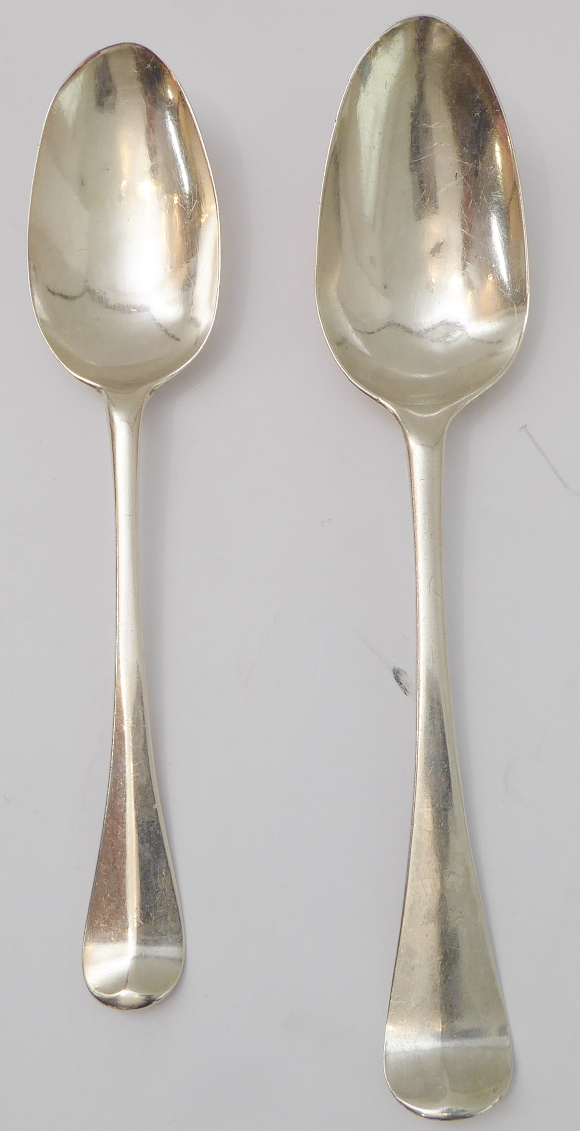 Two similar mid-18th century hallmarked silver tablespoons, one with engraved lettering, London assay marks circa 1755 (total weight approx. 96.9g)