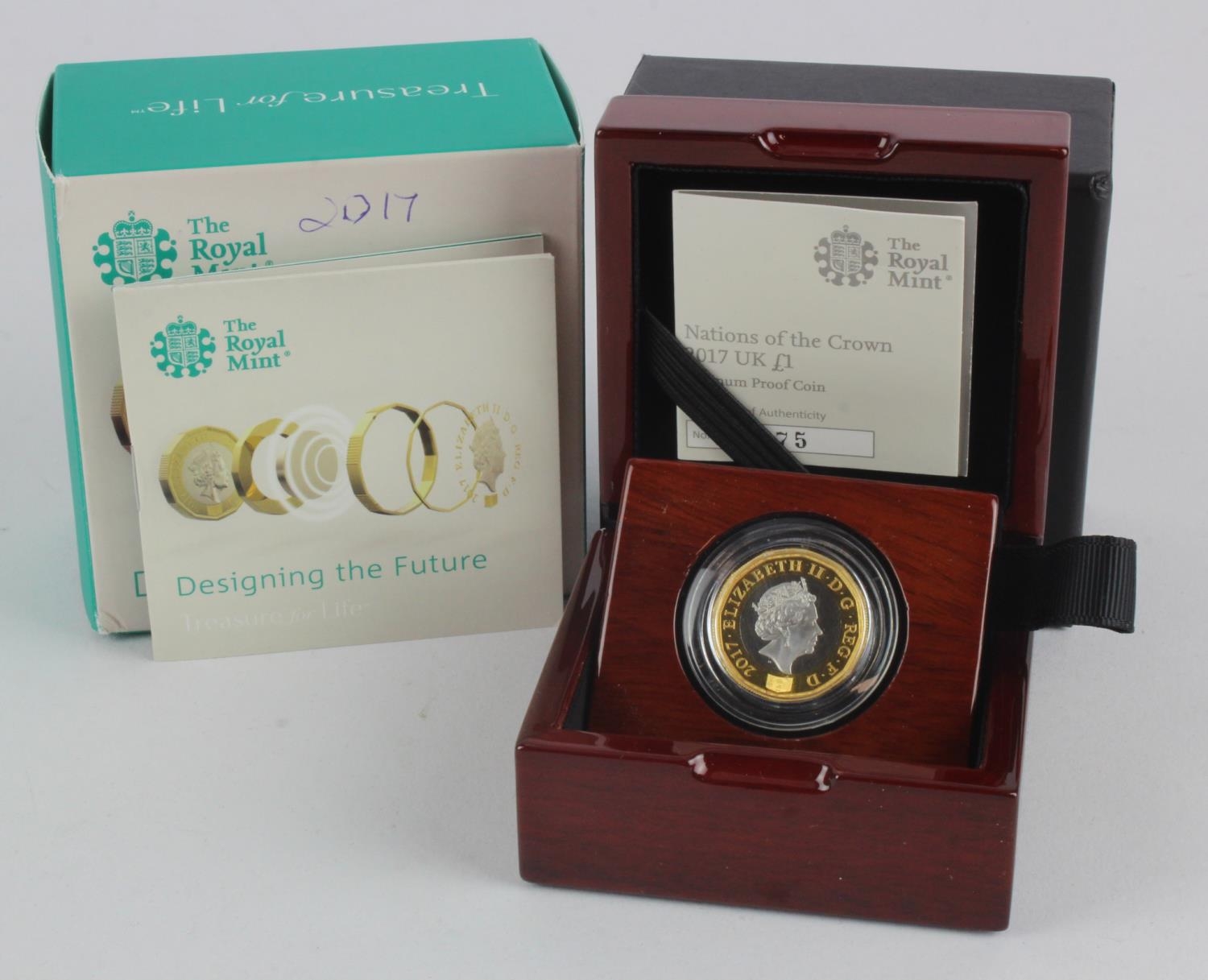 One Pound 2017 Nations of the Crown" struck in Platinum. Proof FDC boxed as issued